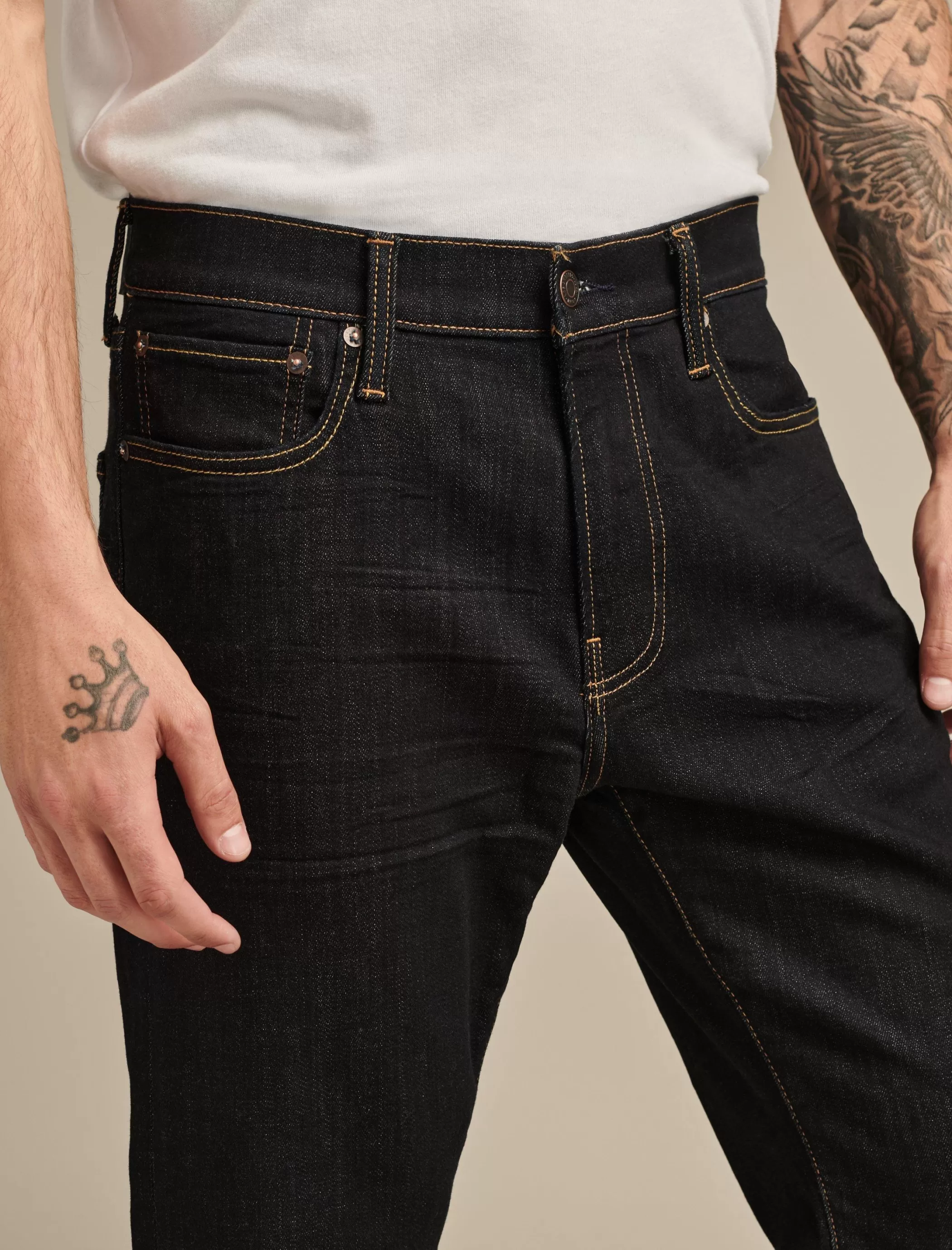 - 5-pocket styling with button-and-zip fly