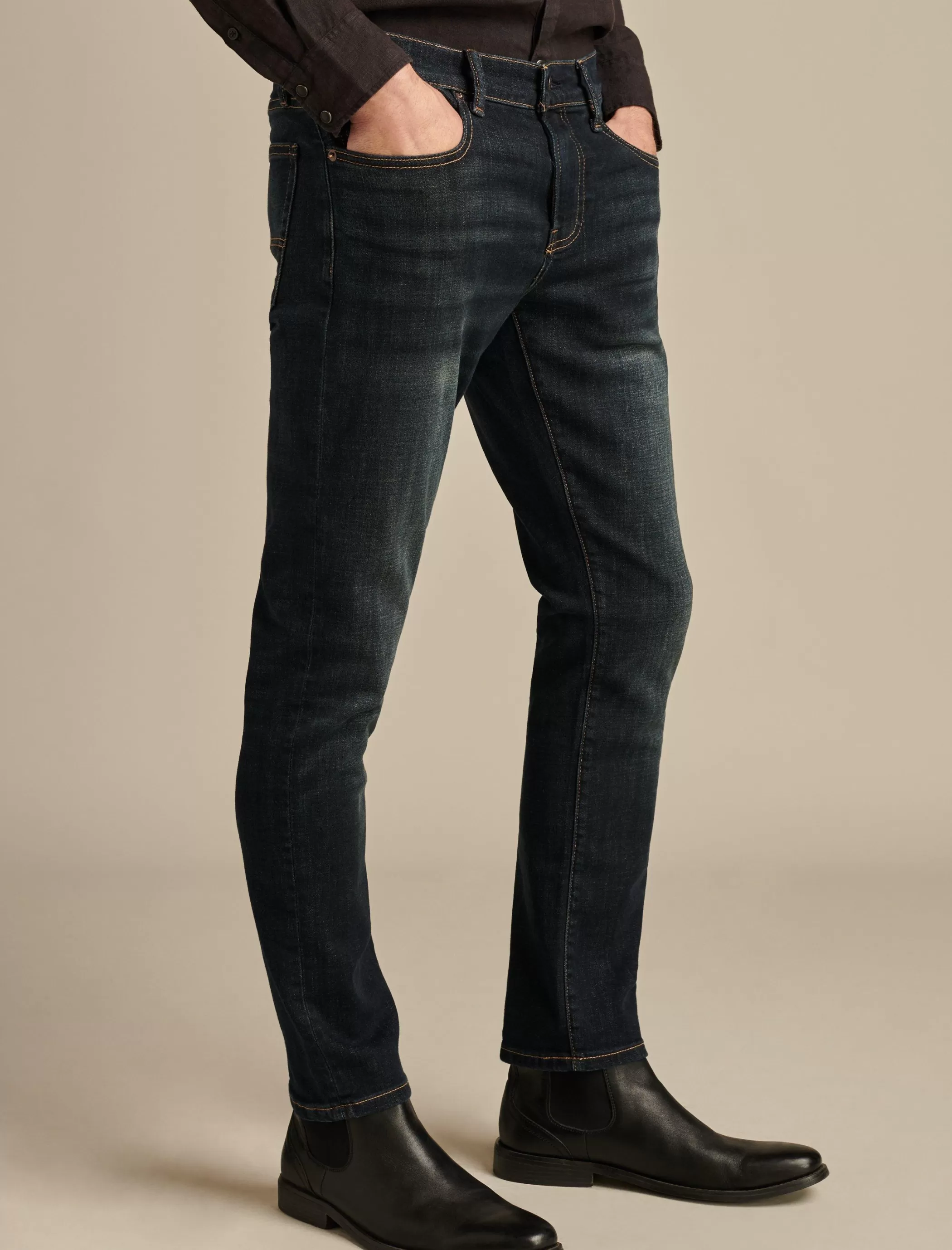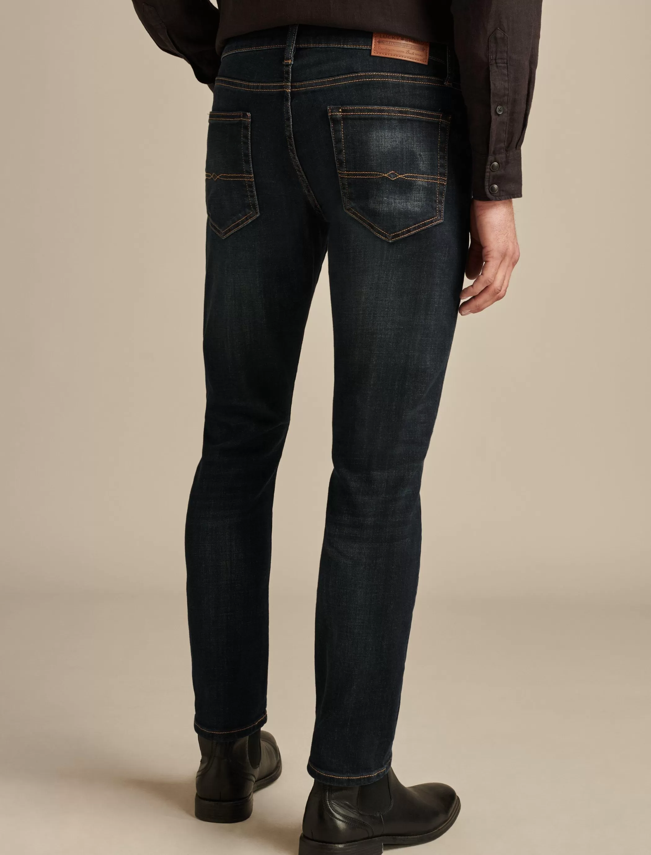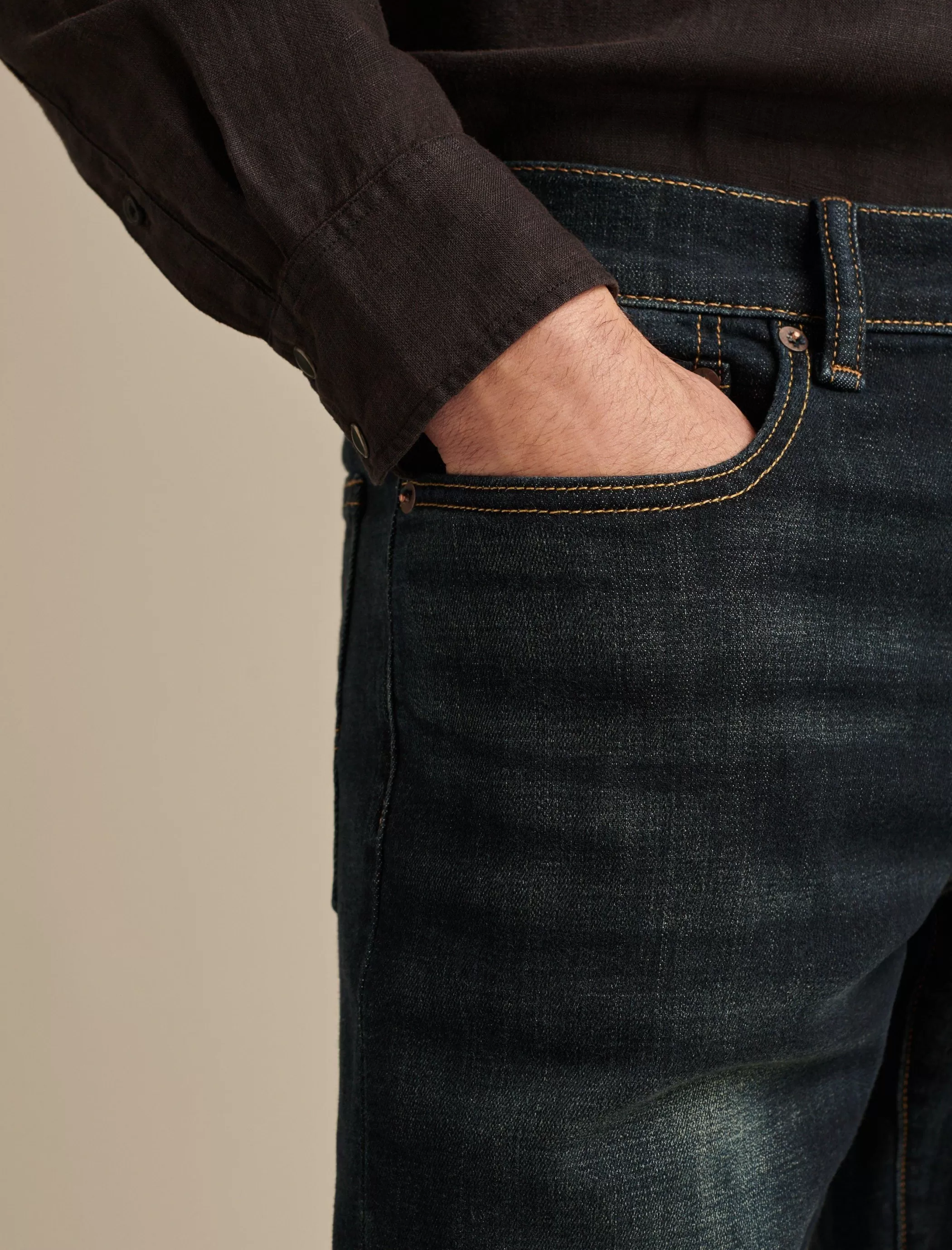 The 110 Slim is our modern slim fit denim that sits low and is cut close to the body for a lean look. This high-stretch pair is cut from soft TENCEL™ fabric and features COOLMAX® technology that helps regulate your temperature.