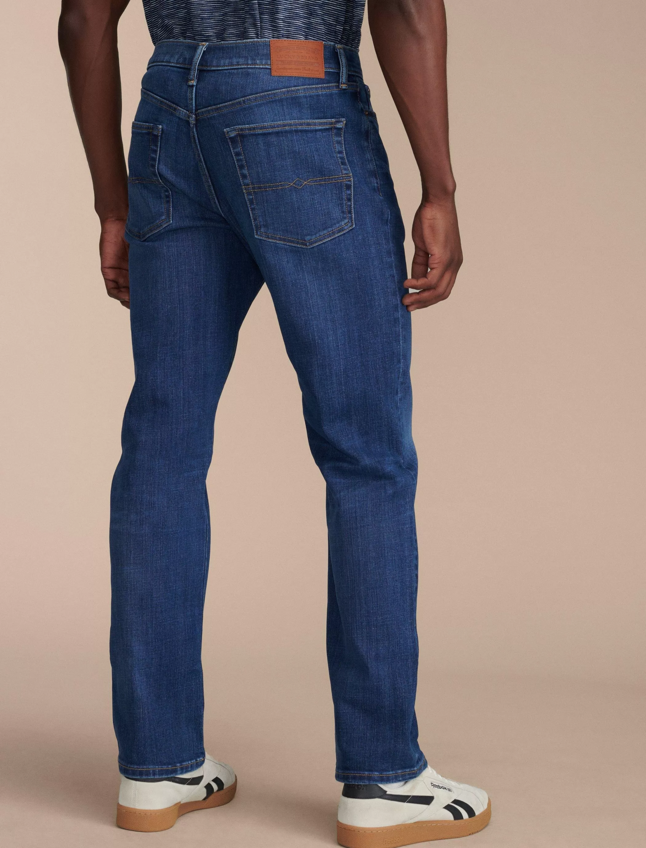 - Mid rise with a relaxed fit and straight leg