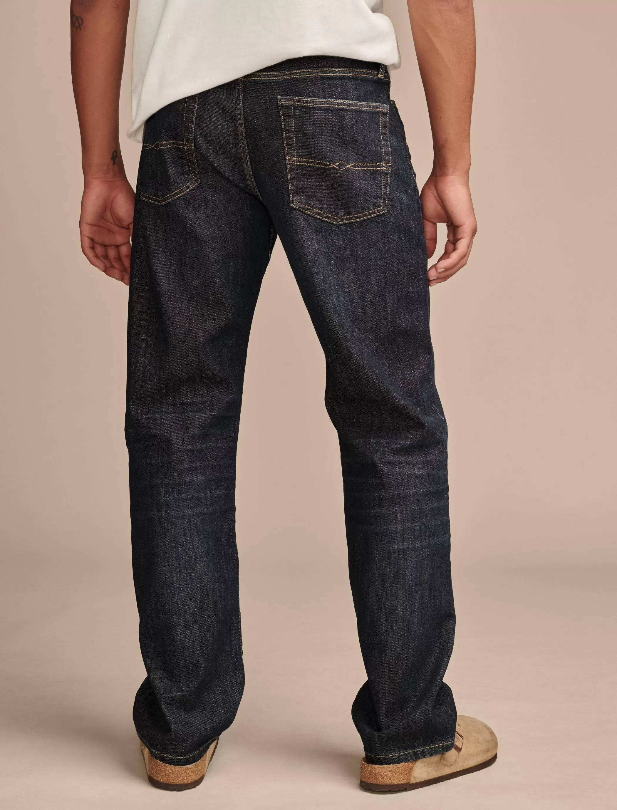 - Mid rise with a relaxed fit and straight leg