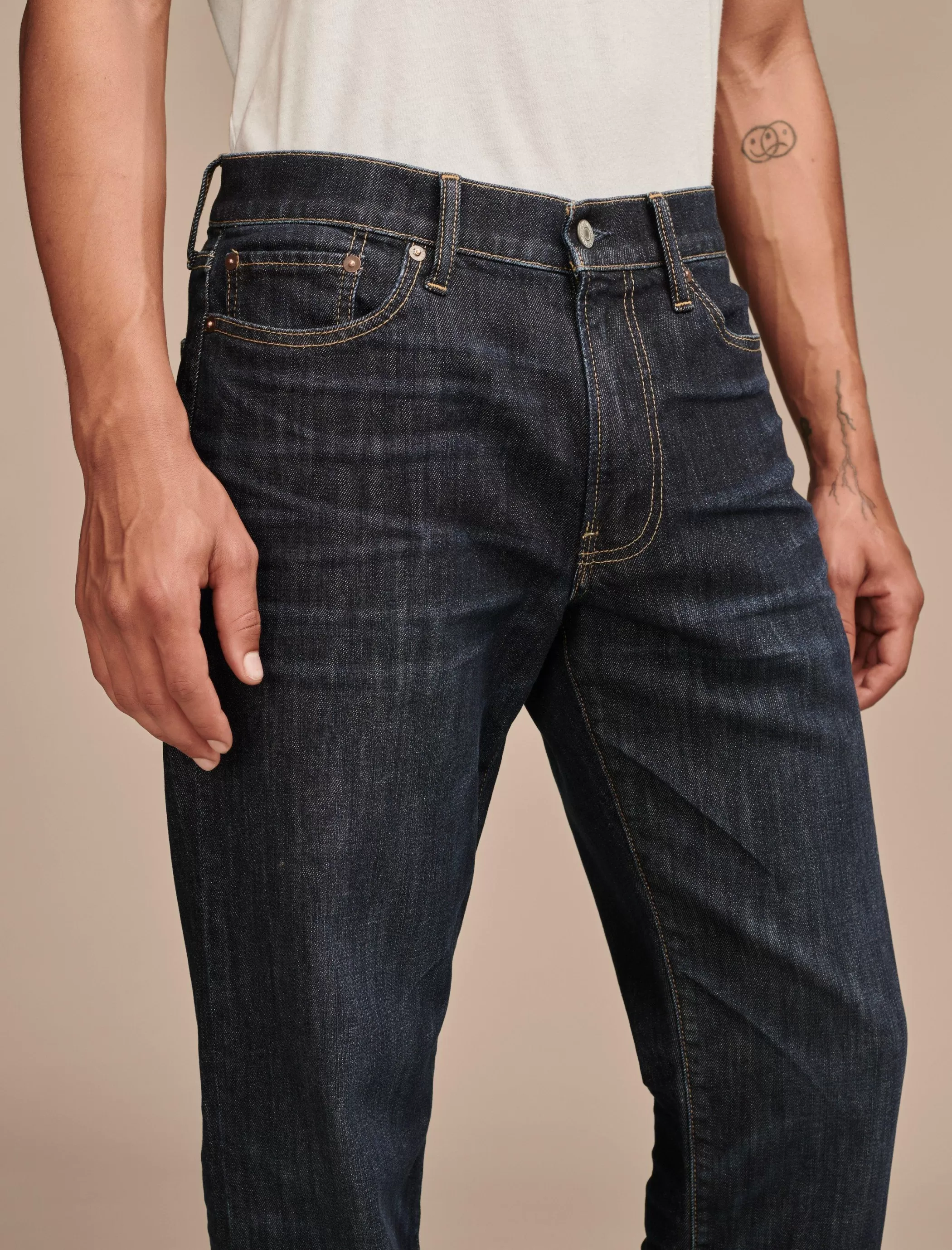 - Dark wash denim