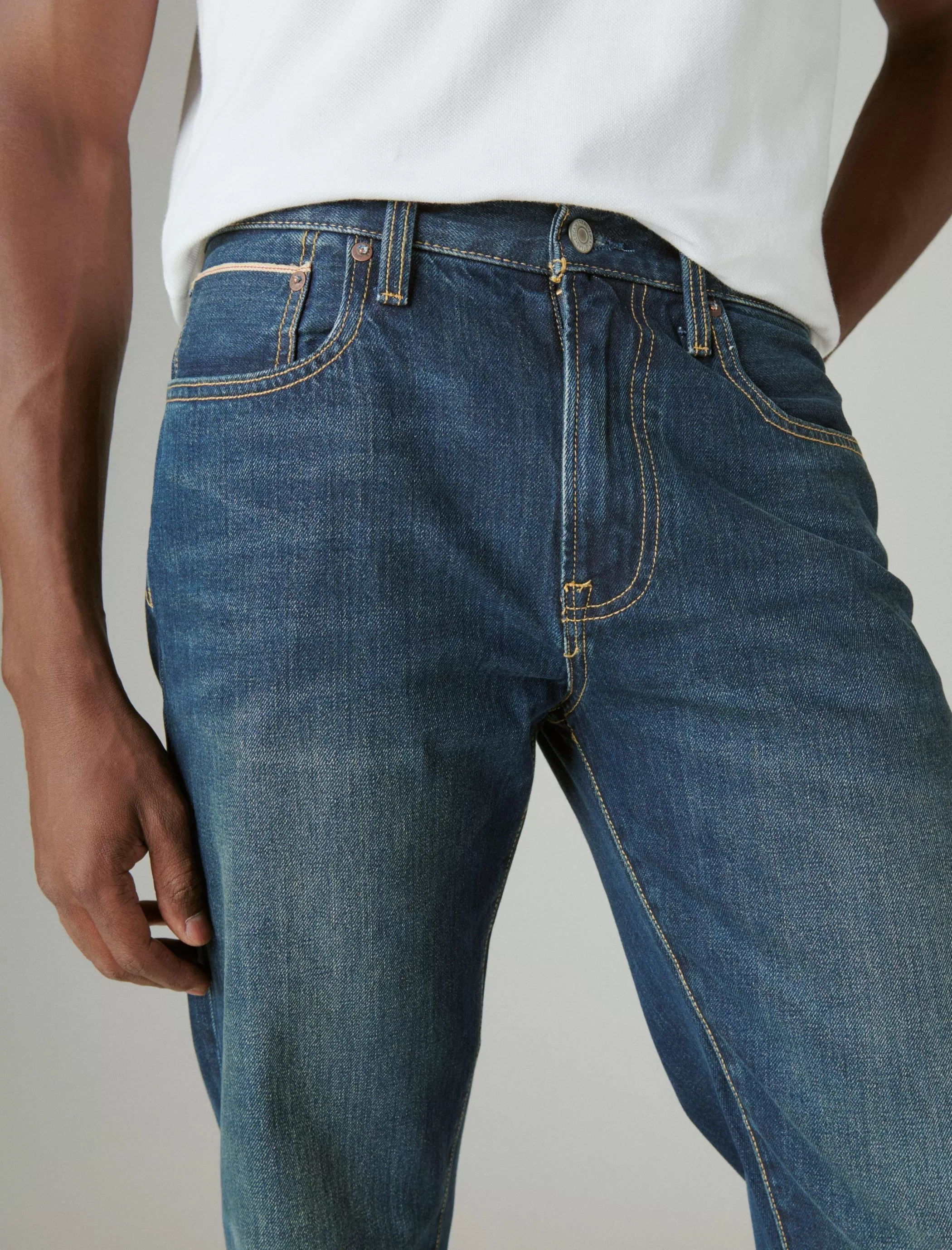 - 5-pocket styling with button-and-zip fly