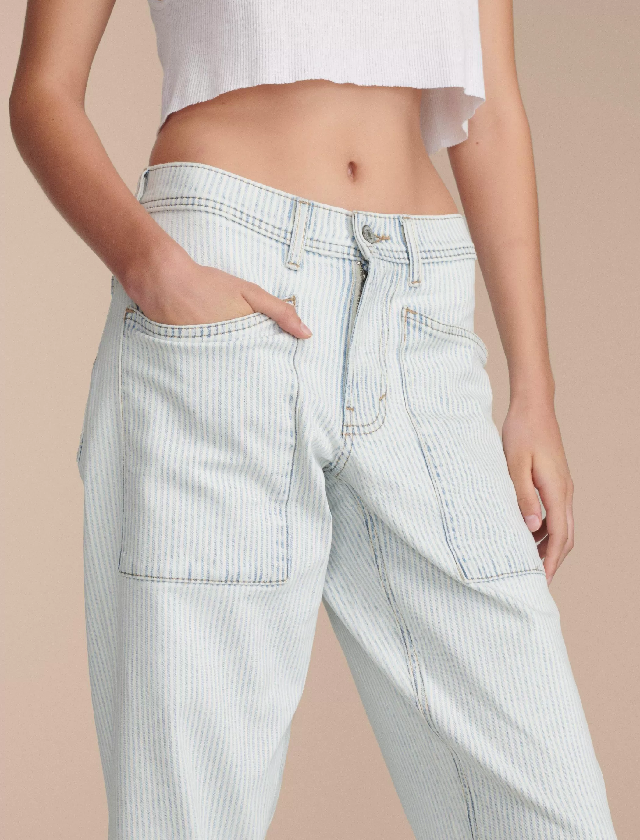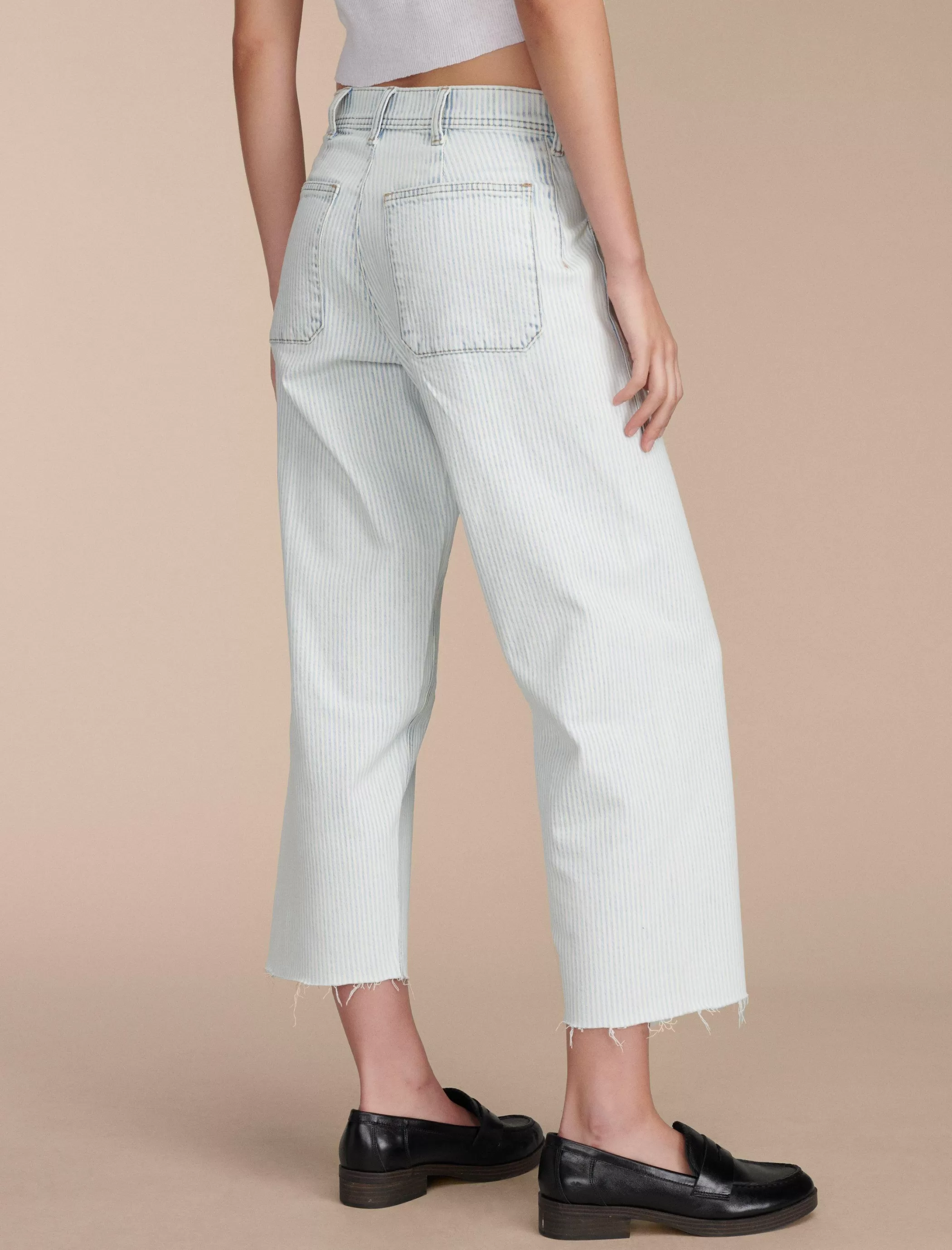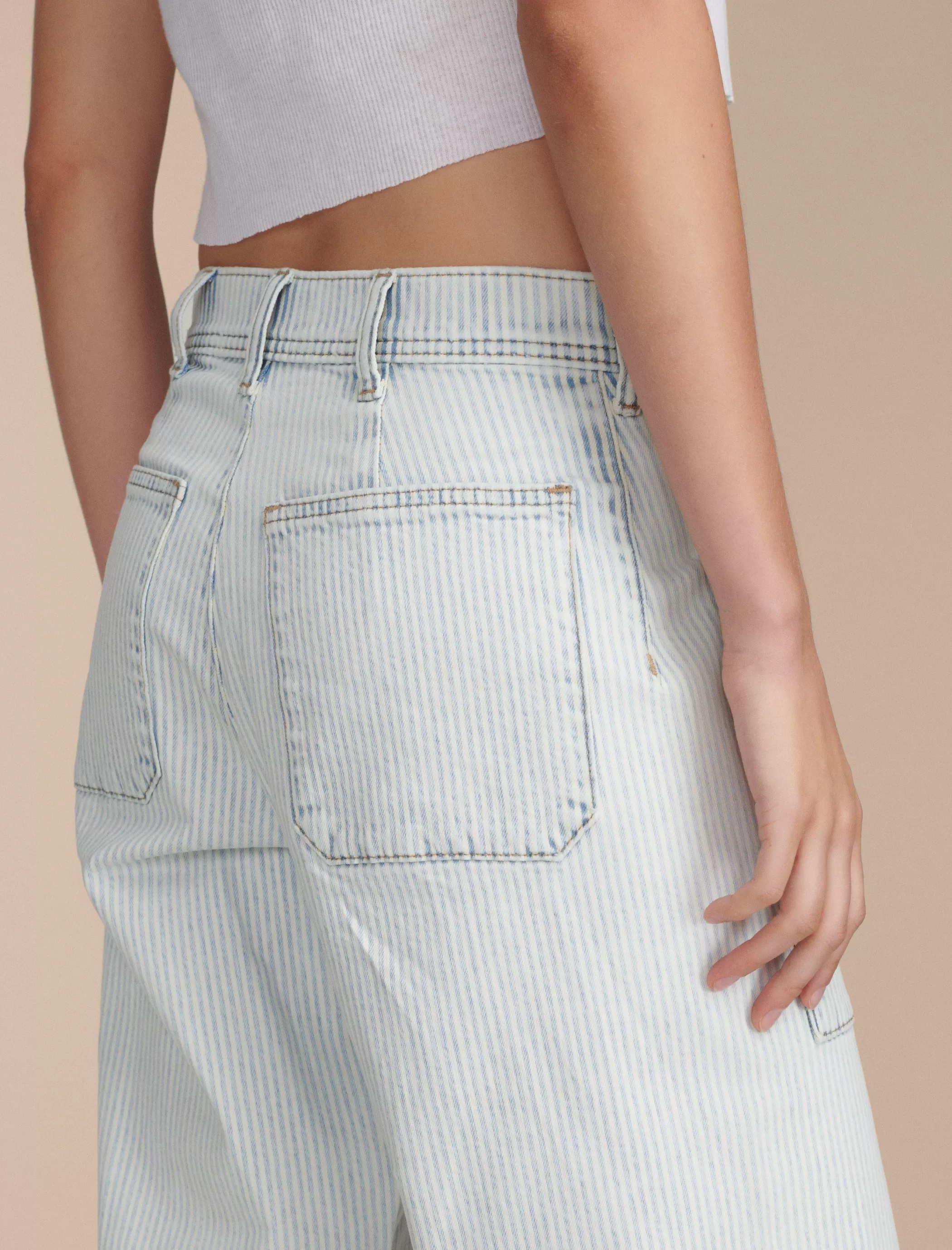 Inspired by vintage styles, our High Rise Wide Leg jean is made to fit easy through the hips and thighs and finish with a cool wide leg. From our limited edition Lucky Legend collection, this pinstripe pair has roomy patch pockets at the front and back.