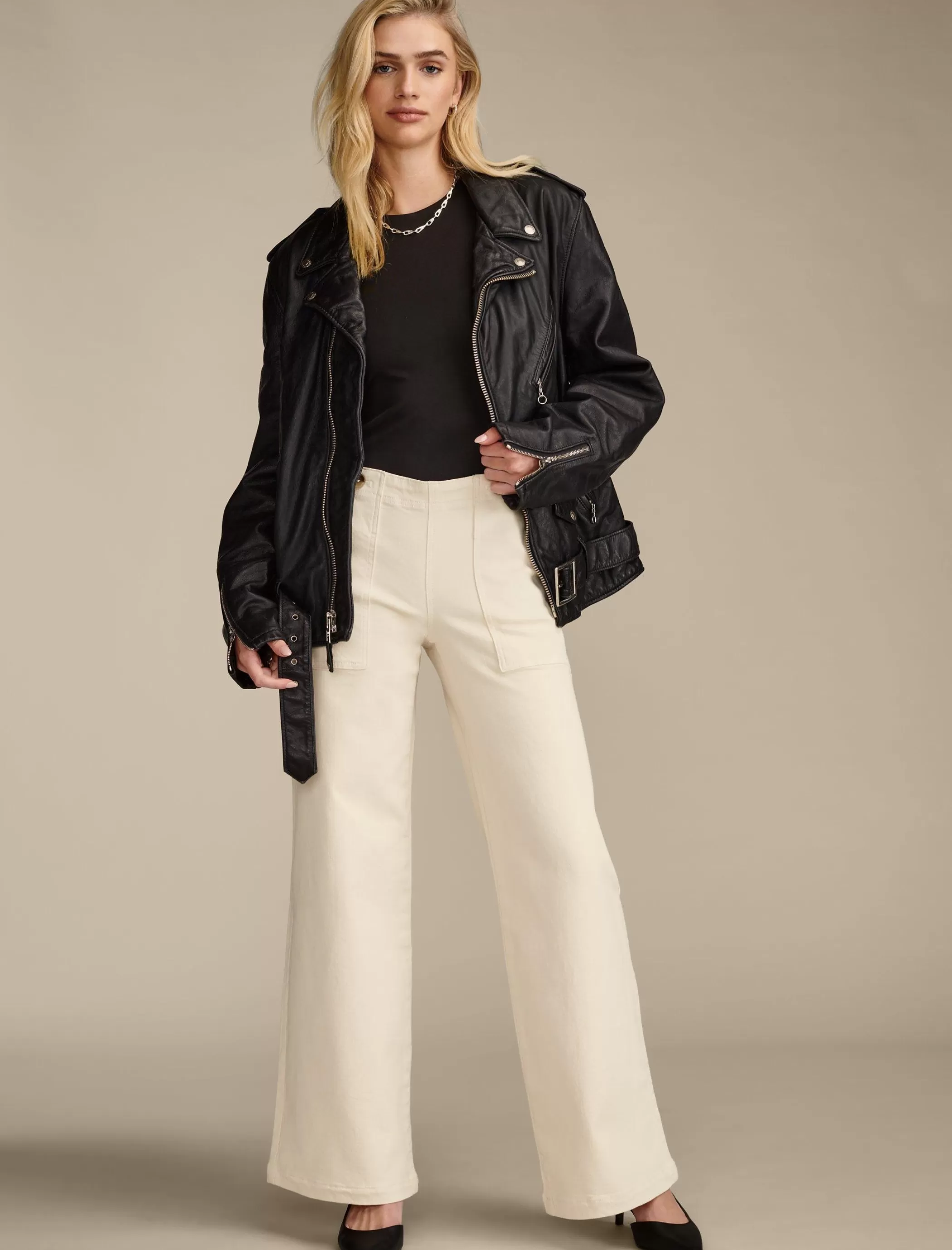 - High rise with a relaxed fit and wide leg