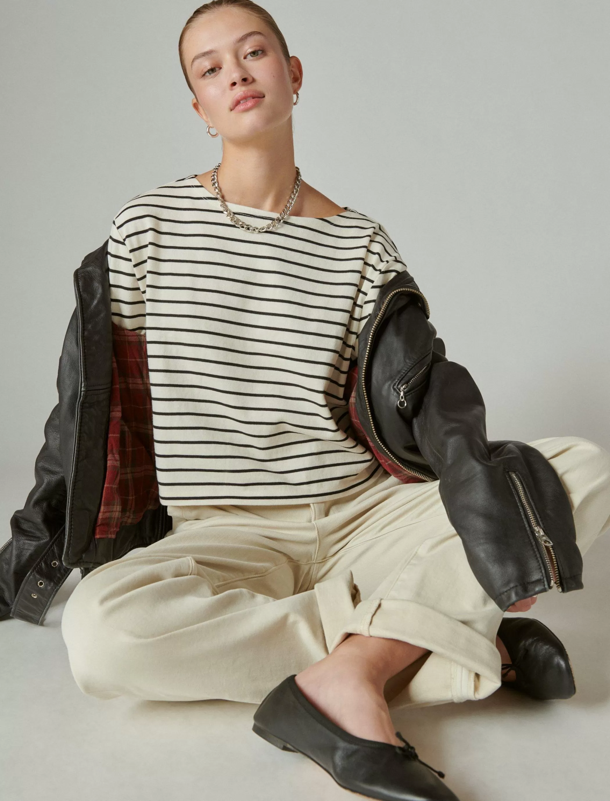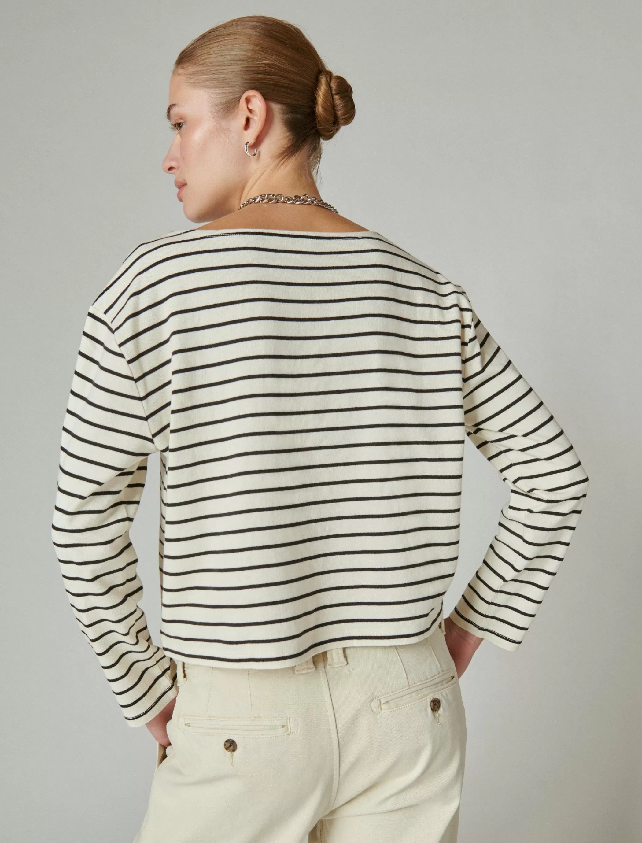 Channel French girl chic with this timeless Breton stripe long sleeve tee. Made of soft cotton-jersey, it can effortlessly be dressed up or down any day of the week.