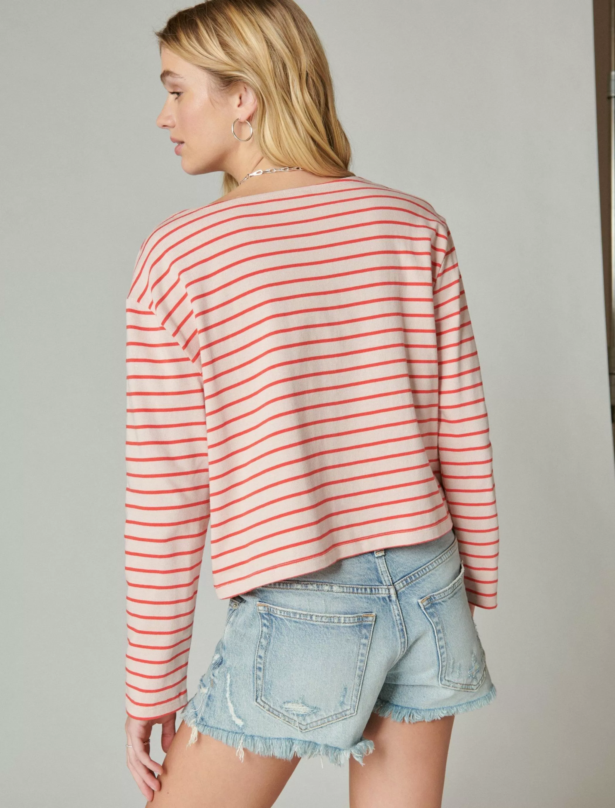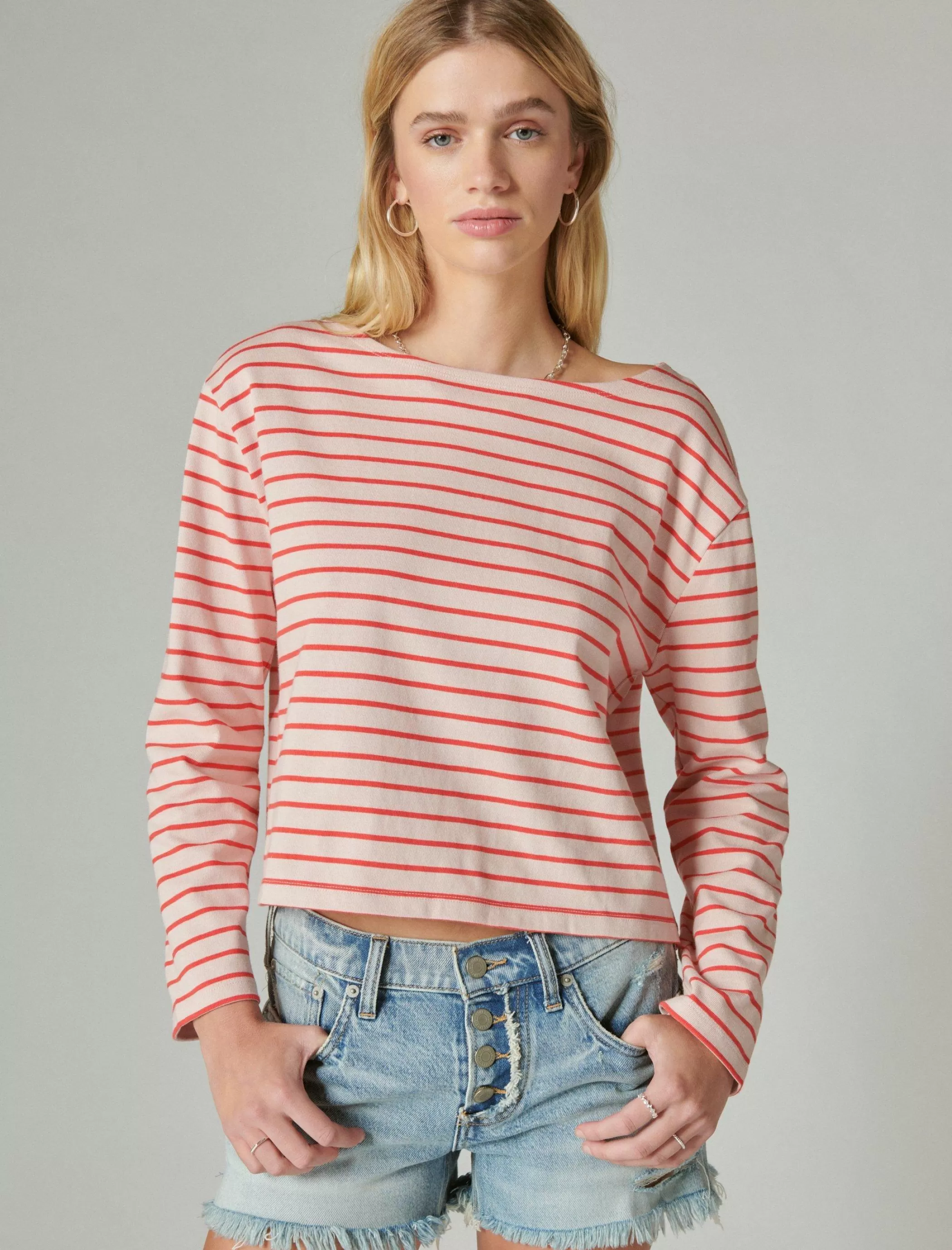 Channel French girl chic with this timeless Breton stripe long sleeve tee. Made of soft cotton-jersey, it can effortlessly be dressed up or down any day of the week.