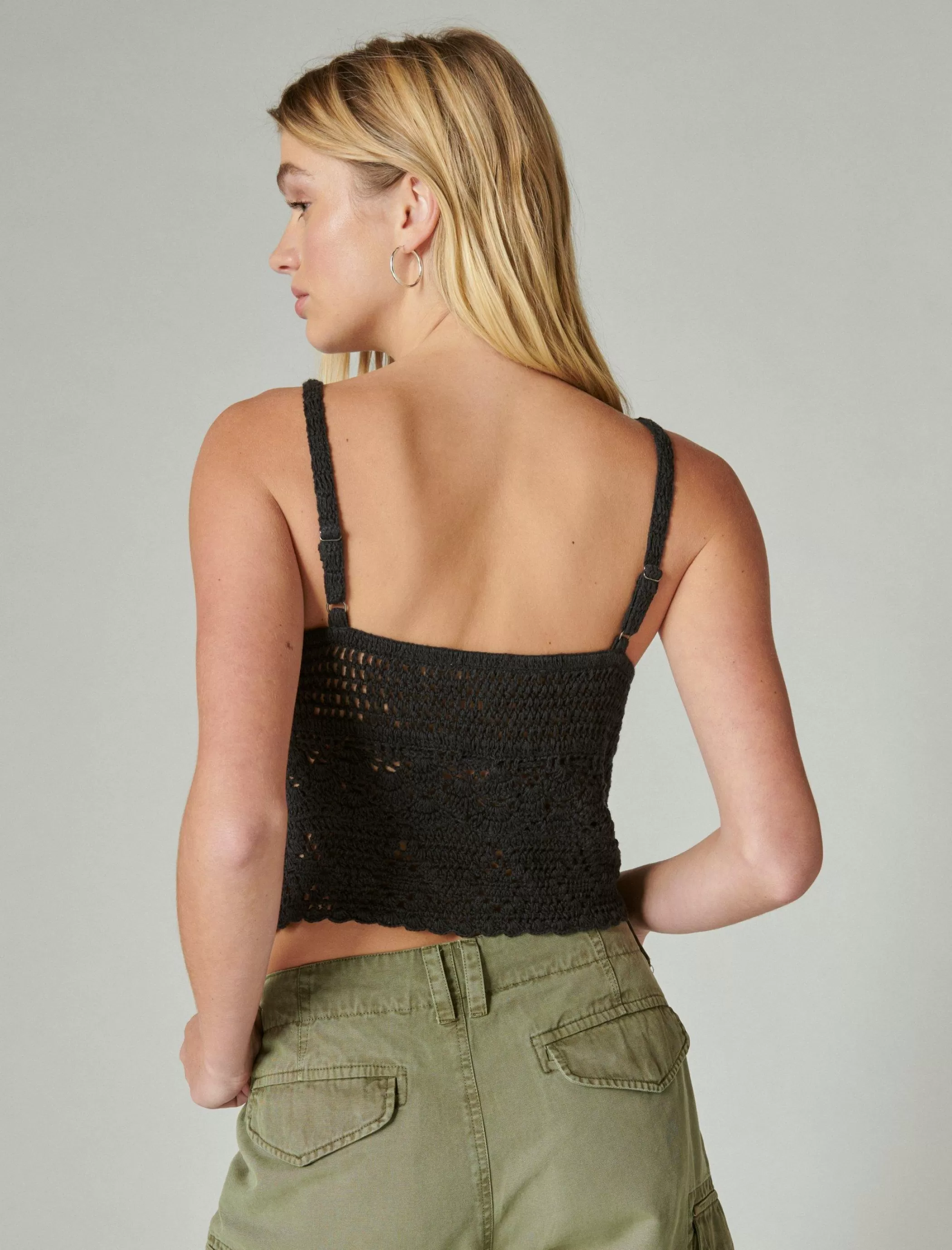 So cute in crochet, this tie front tank has a hem that hits at your natural waist for a flattering, flirty fit.