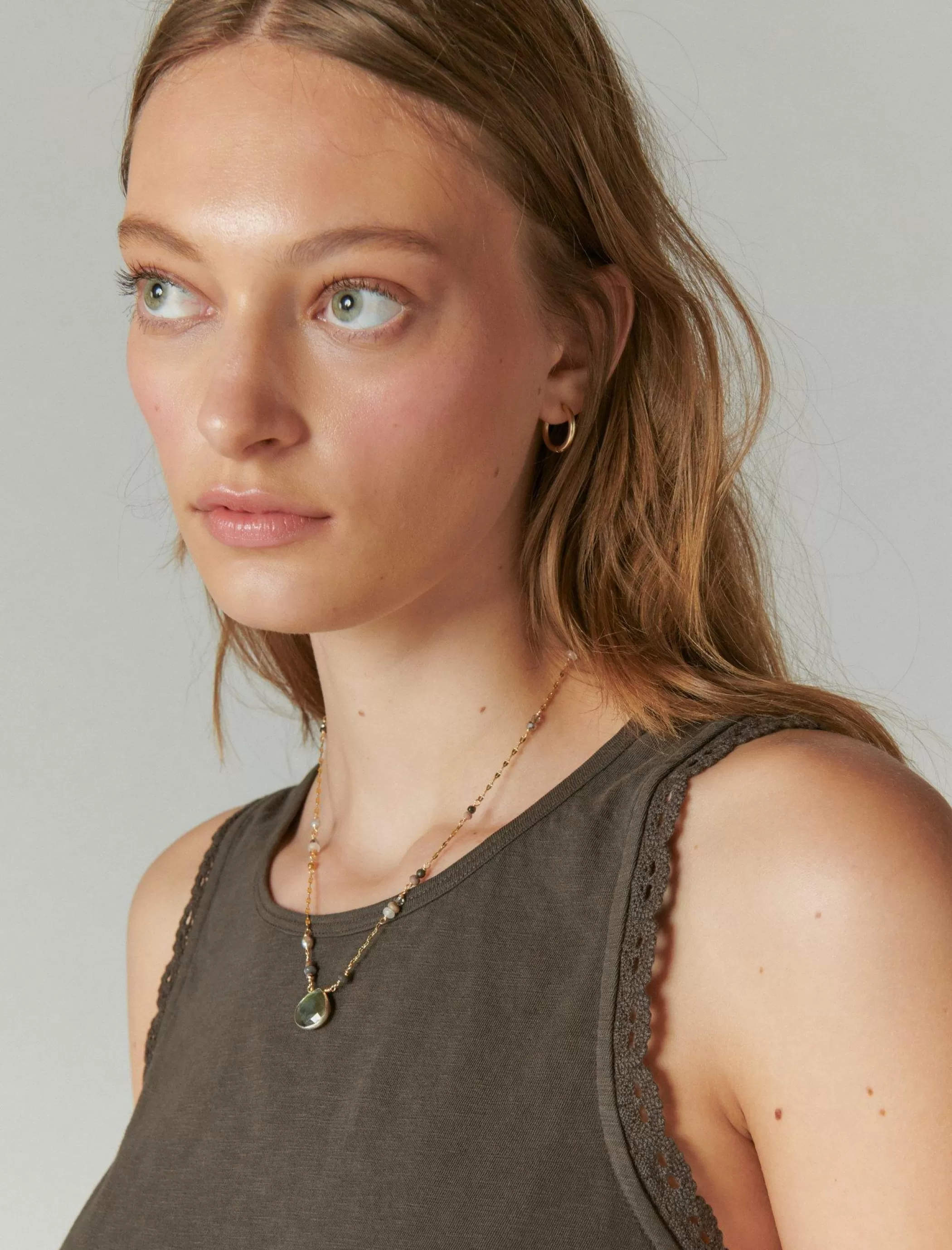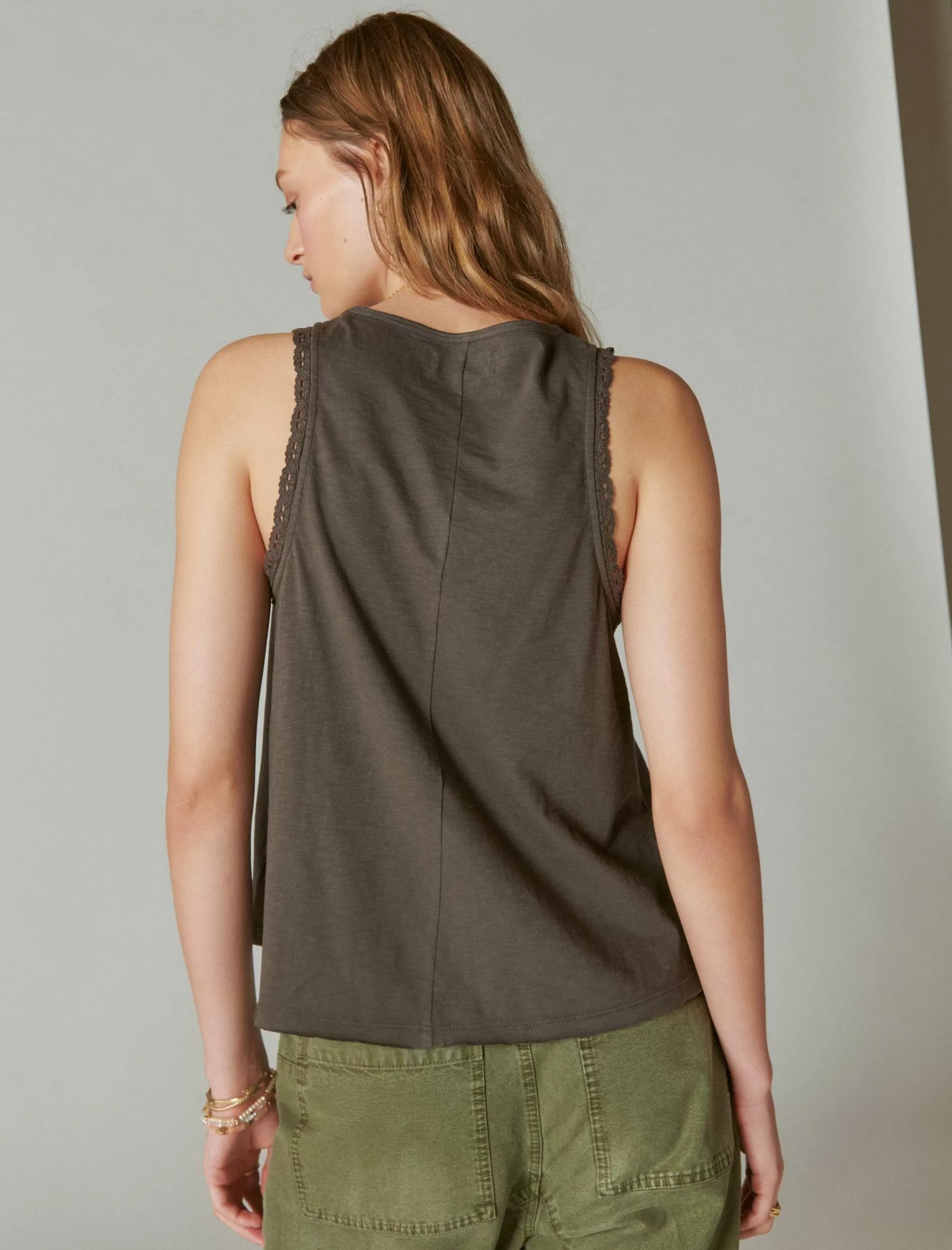 Lucky Brand Knit Tops*lace trim swing tank raven