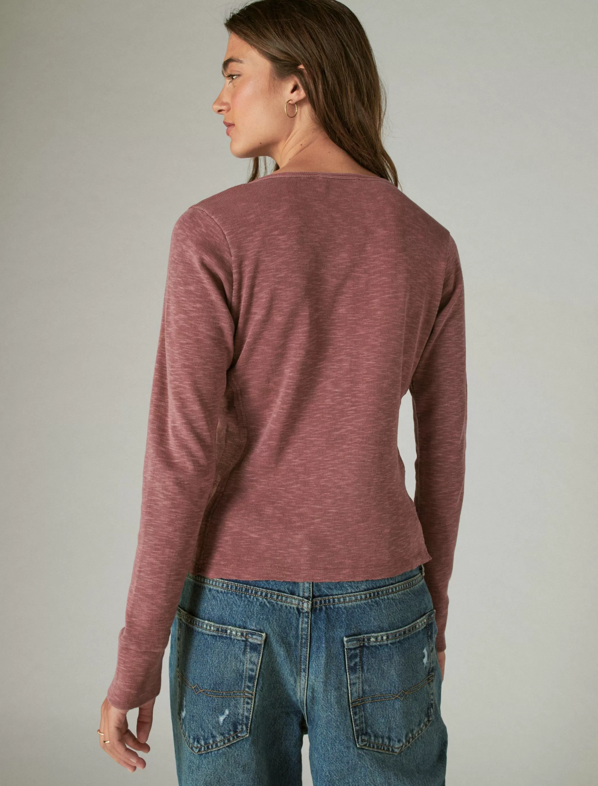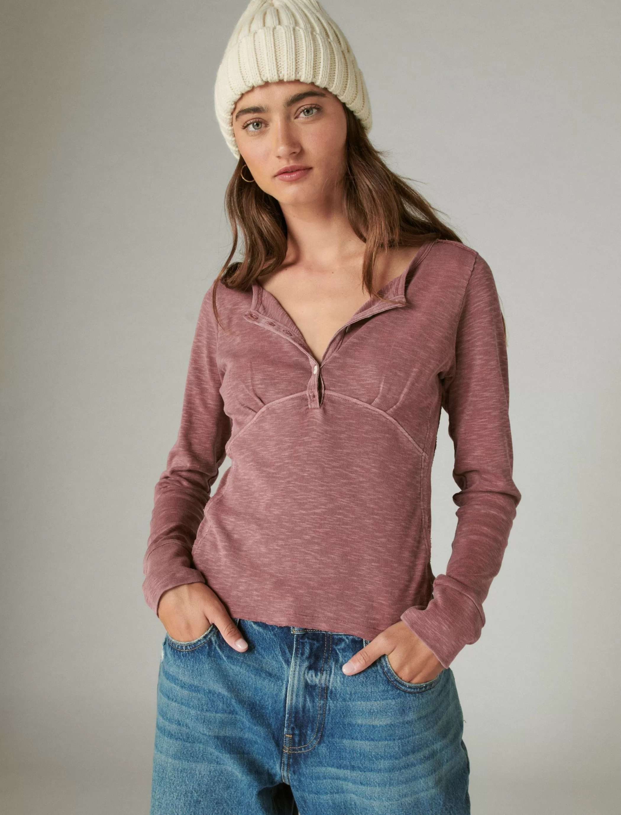 As effortless as it is essential, this long sleeve knit henley is available in a range of fresh, new colors perfect for your cool-weather wardrobe and beyond.