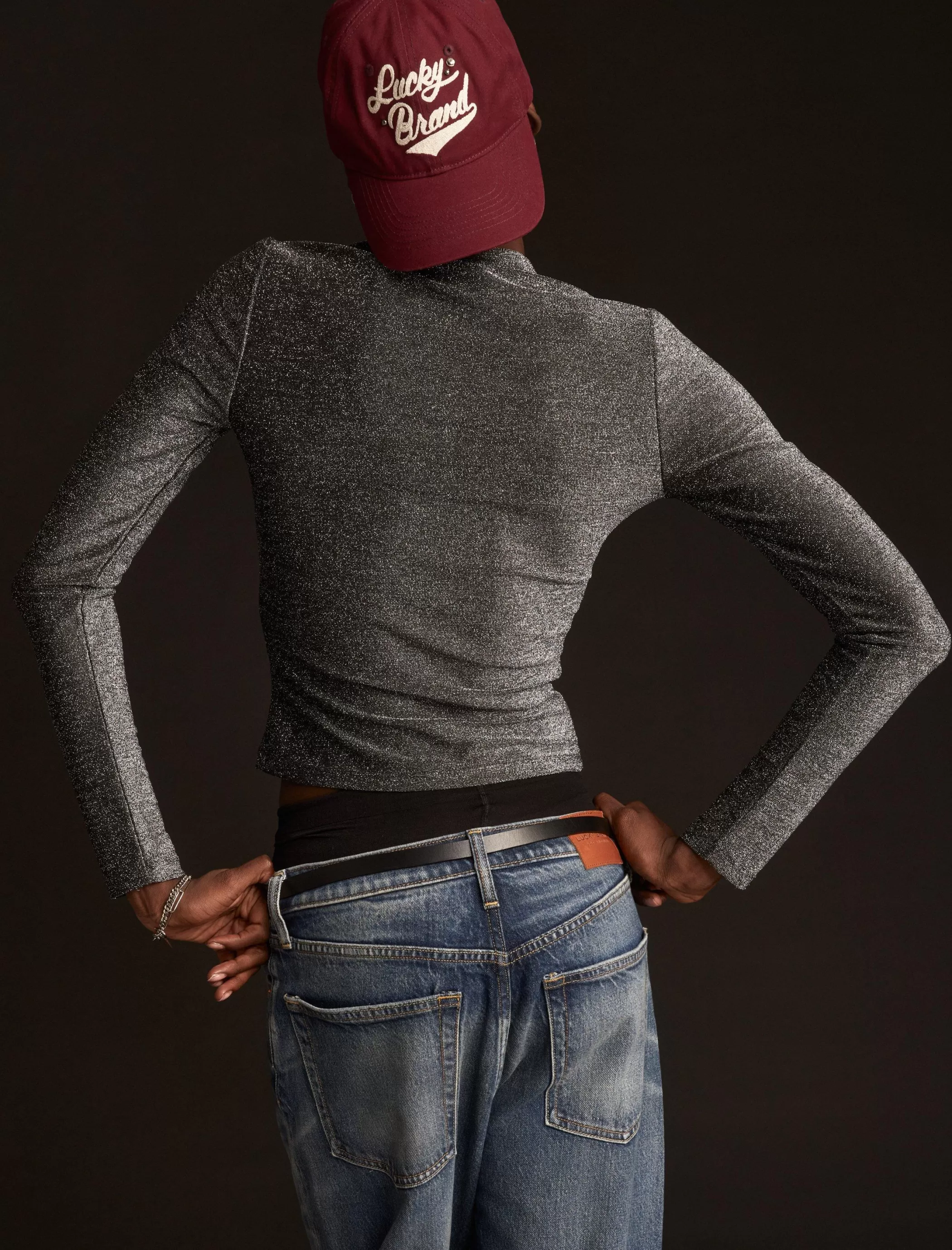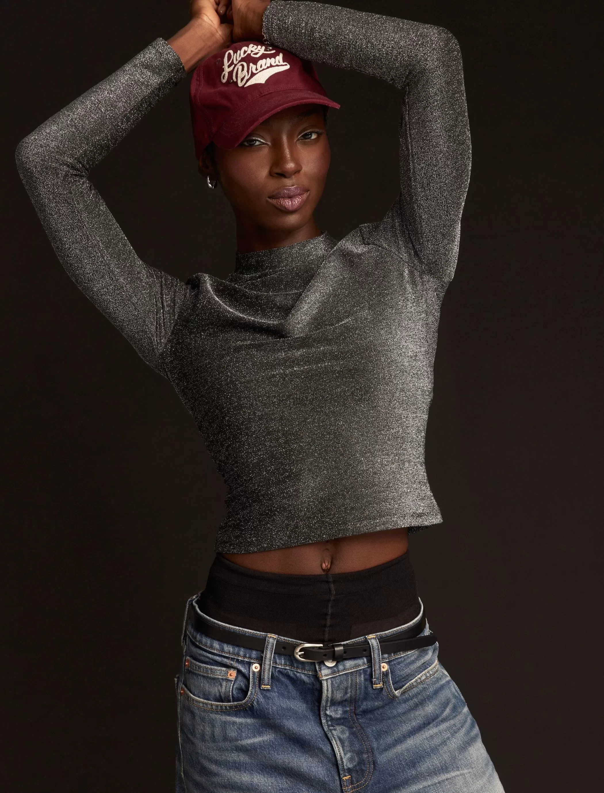 Cut for a cropped fit, this metallic lurex top shimmers and shines as you go. From holiday parties to date nights, this long sleeve top is a must-have addition to your wardrobe.
