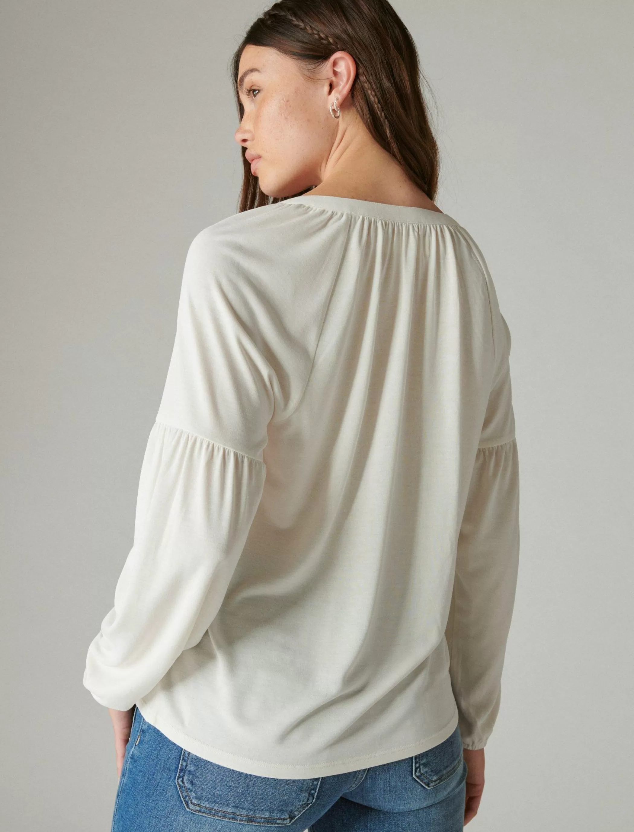 Spun from our super soft and stretchy sandwash fabric, this top has a notch neckline and long raglan-like sleeves in ran…
