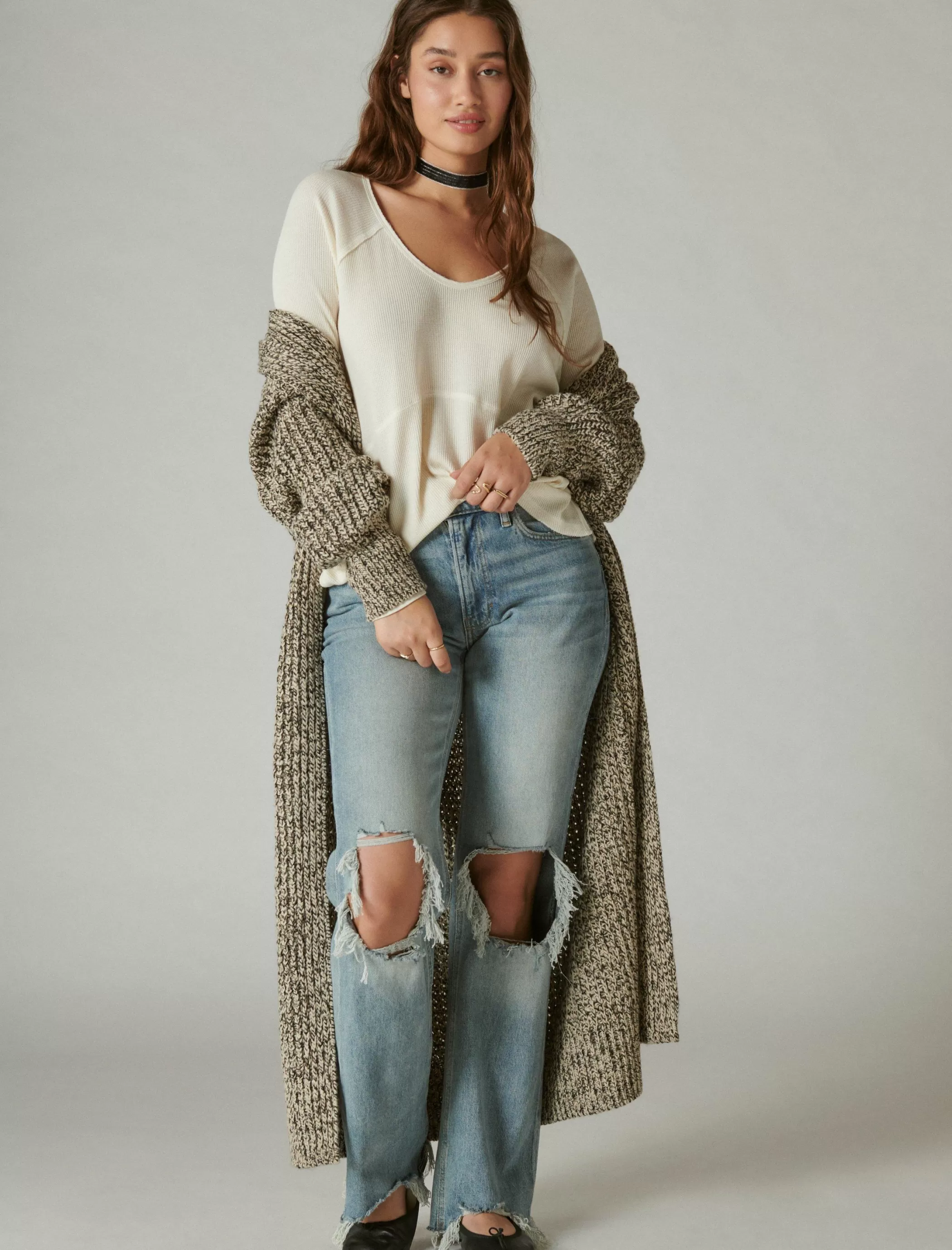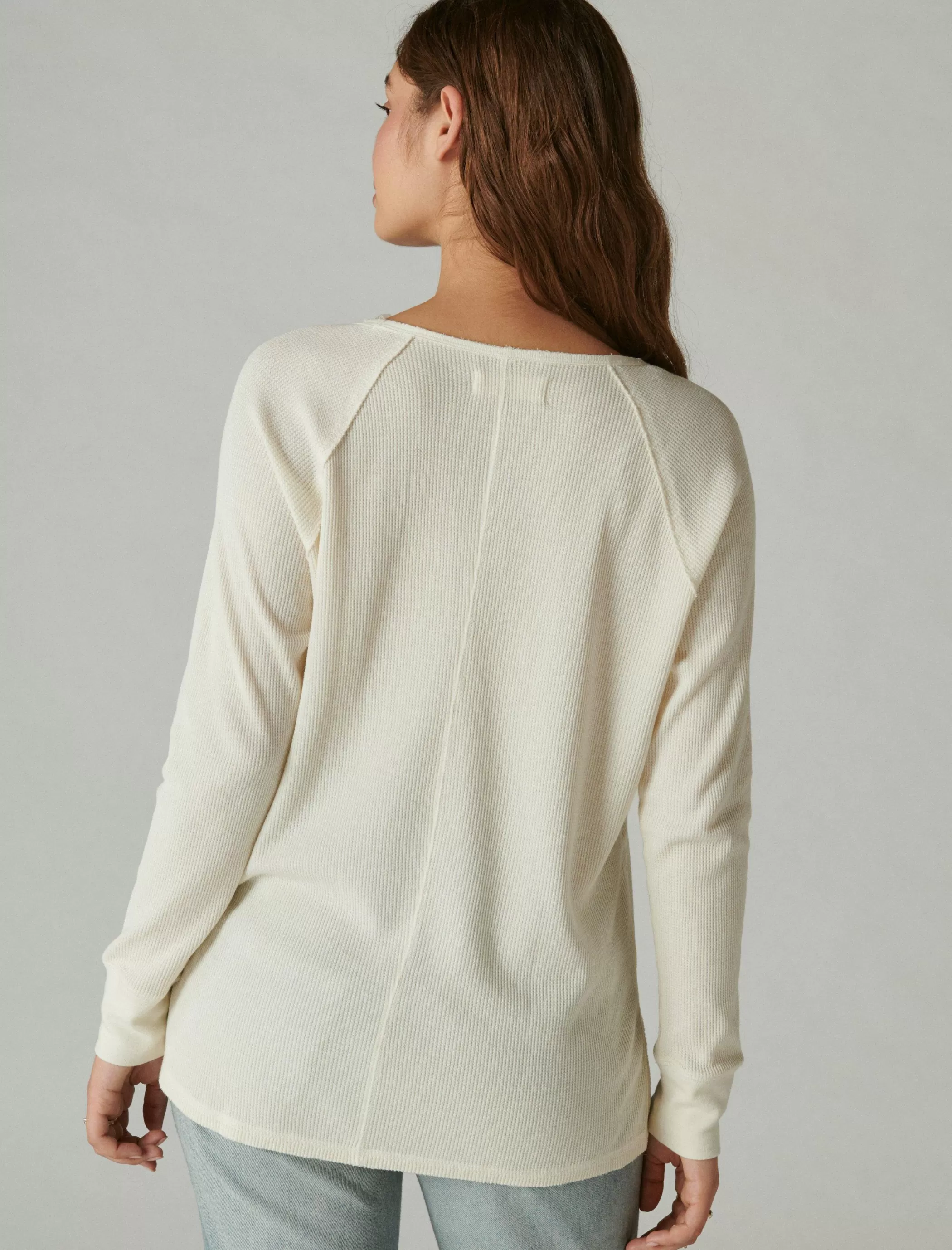Cut for a roomy, oversized fit, this waffle-knit thermal goes with just about everything in your wardrobe.Rounded V-neck…