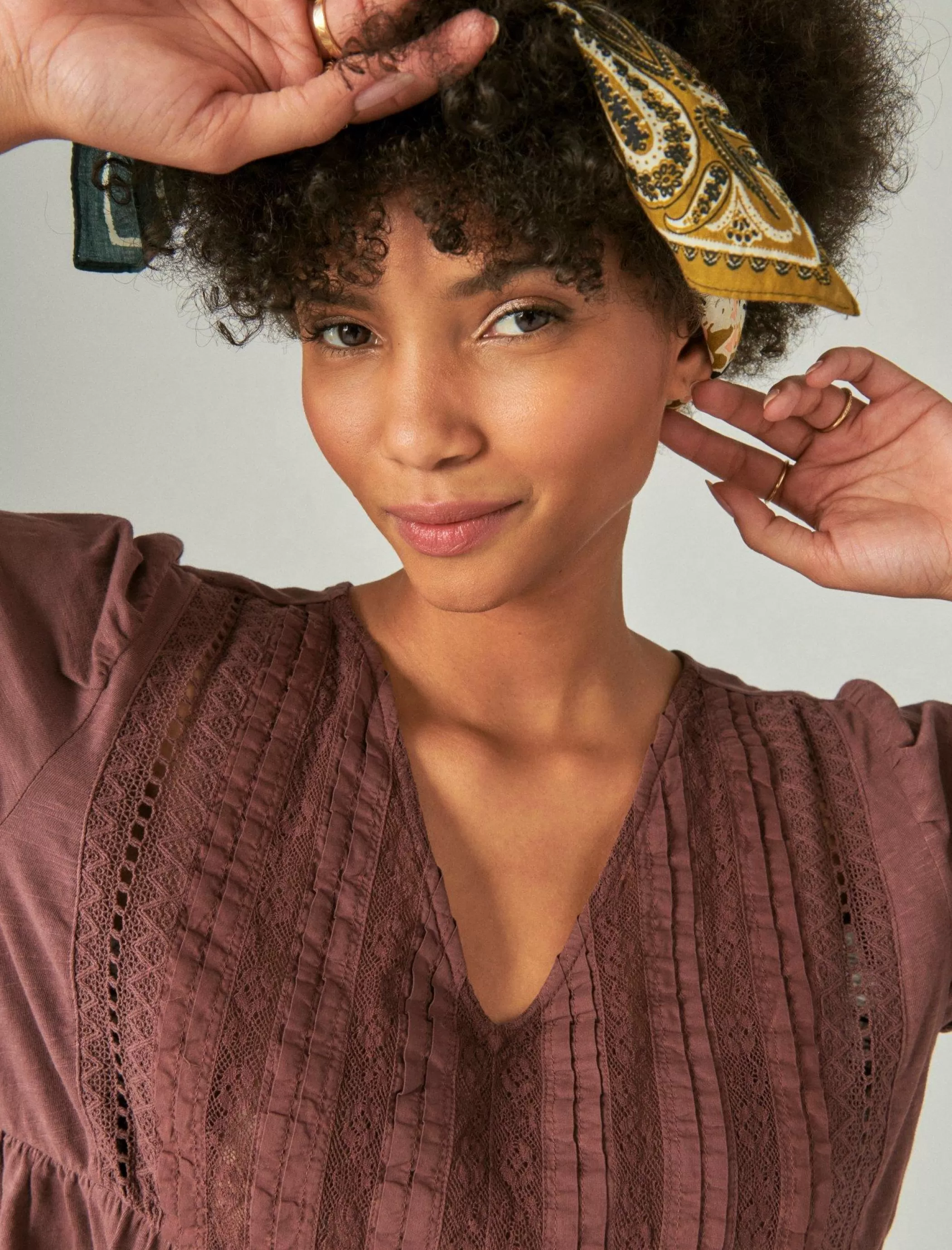 Style an endless amount of looks with this long sleeve top featuring a pintuck front, a flattering V-neck and lace details.