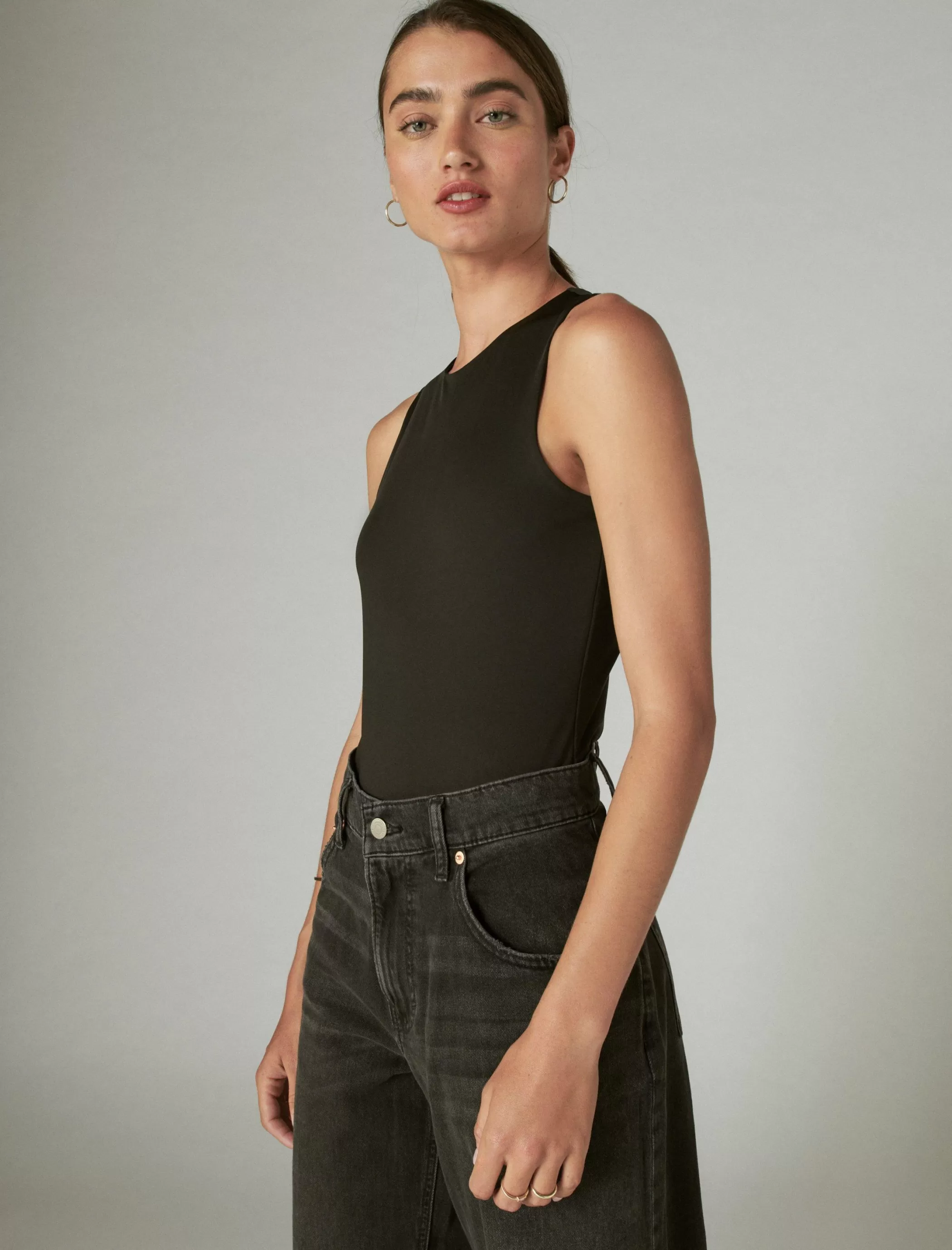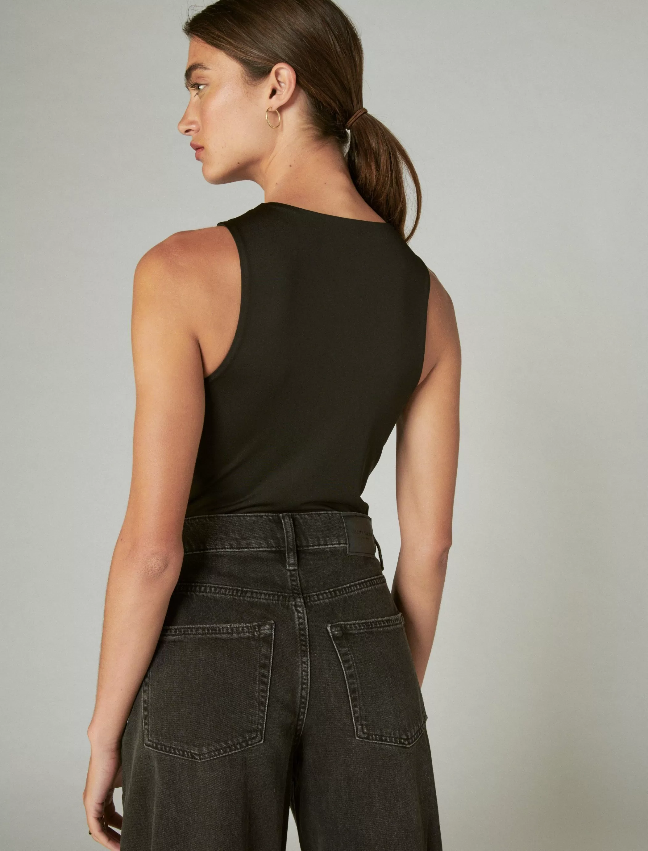Made from soft stretchy fabric, this racer tank bodysuit looks good worn on its own with jeans or layered under an oversized blazer or jacket.