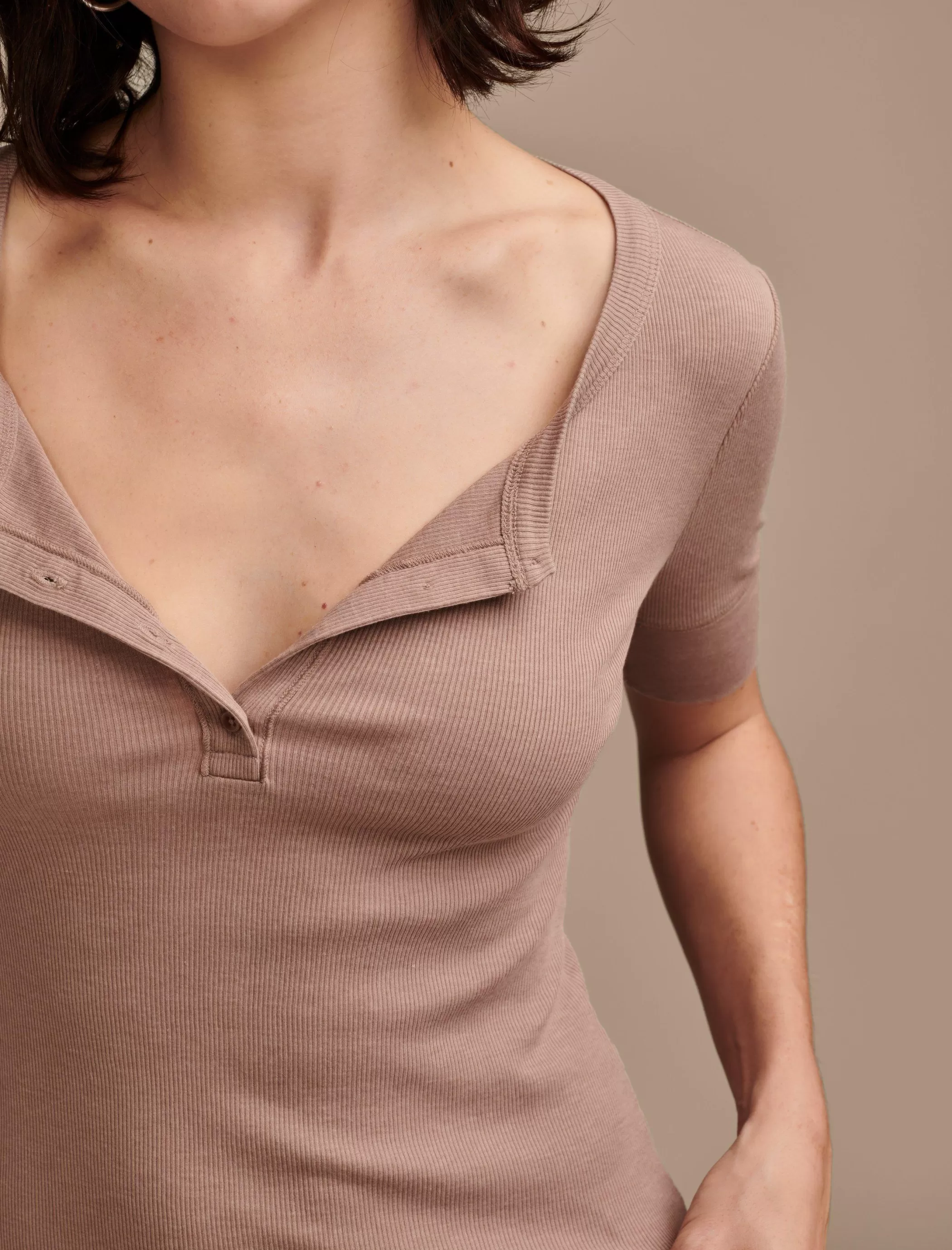 Made of super soft cotton-jersey, this ribbed henley is the perfect style for dressing up or dressing down any ‘fit.