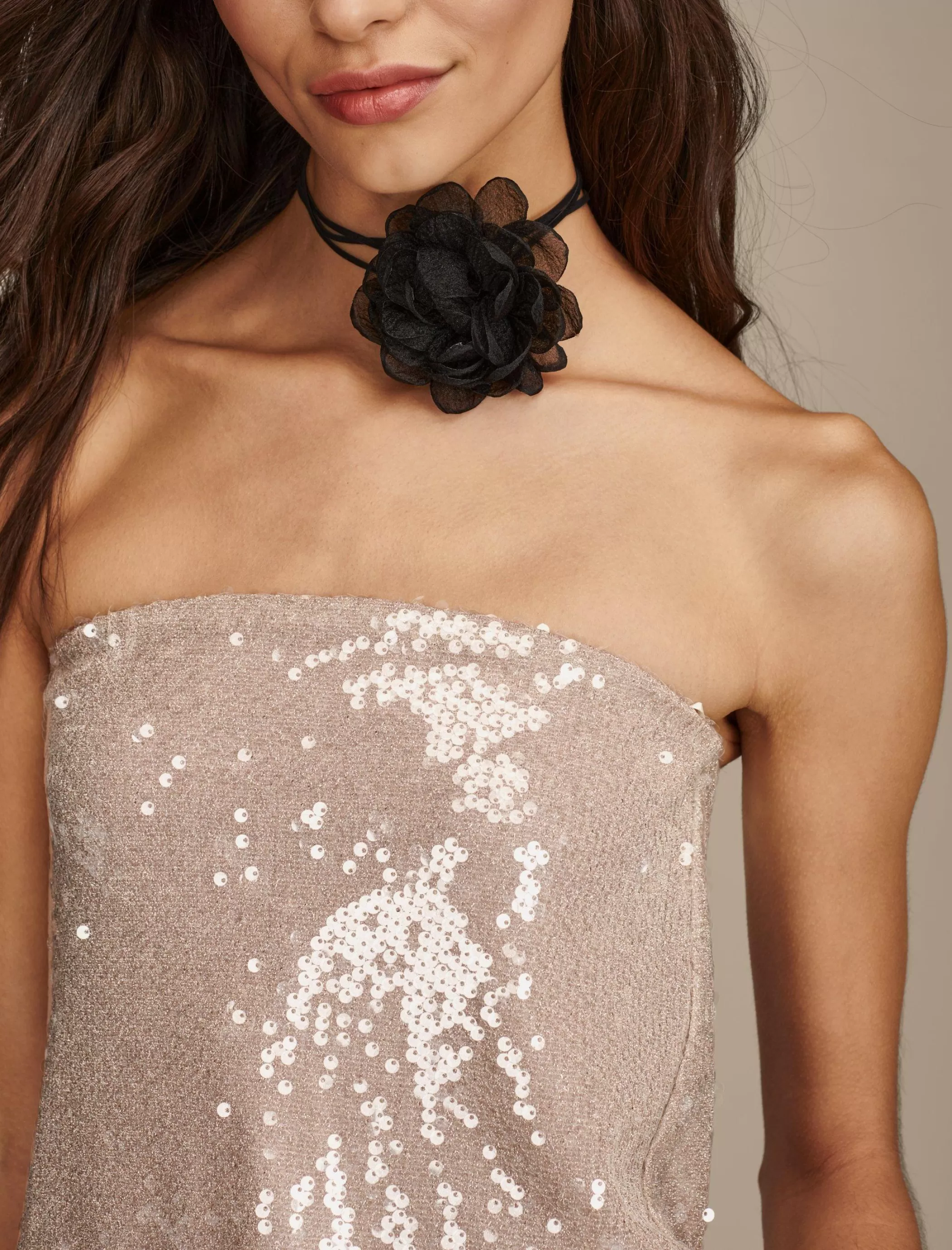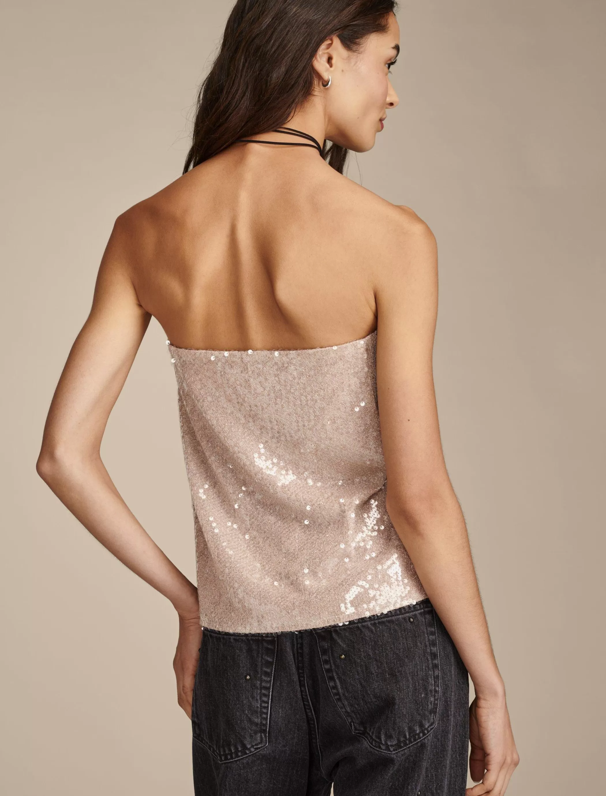Make a major style statement wearing this tube top showcasing so stunning sequins that effortlessly shine and shimmer as you go.