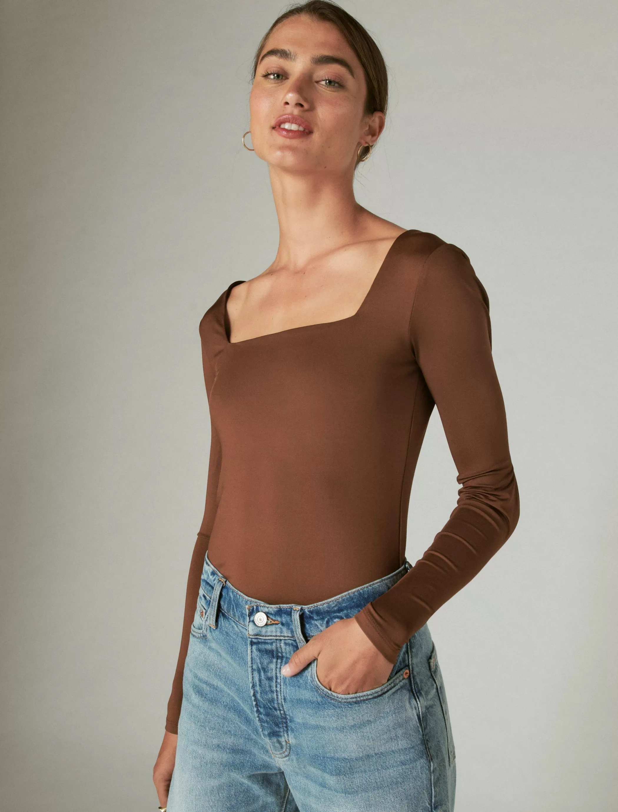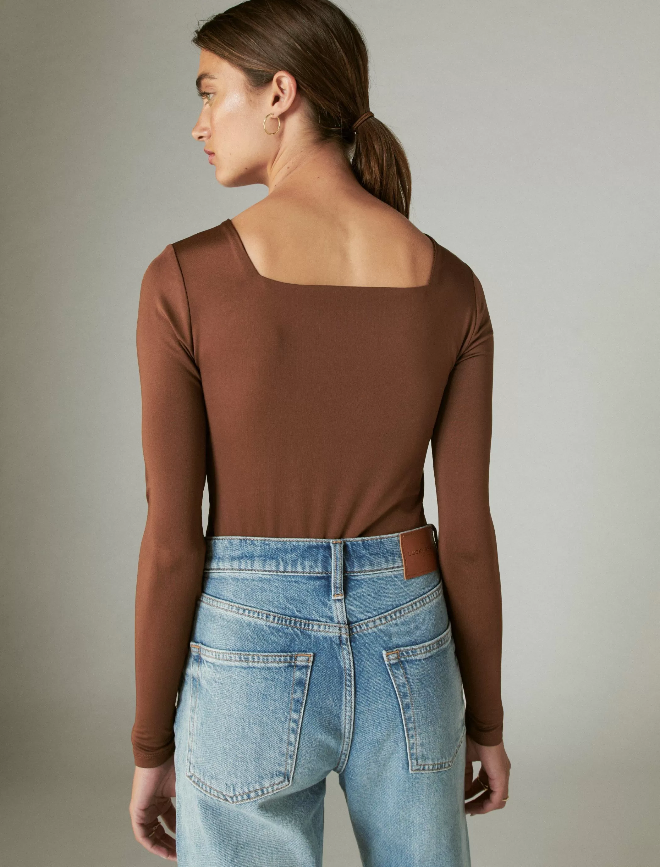 Designed with a flattering square neckline, this soft, stretchy bodysuit looks good worn on its own with jeans or layered under an oversized blazer or jacket.