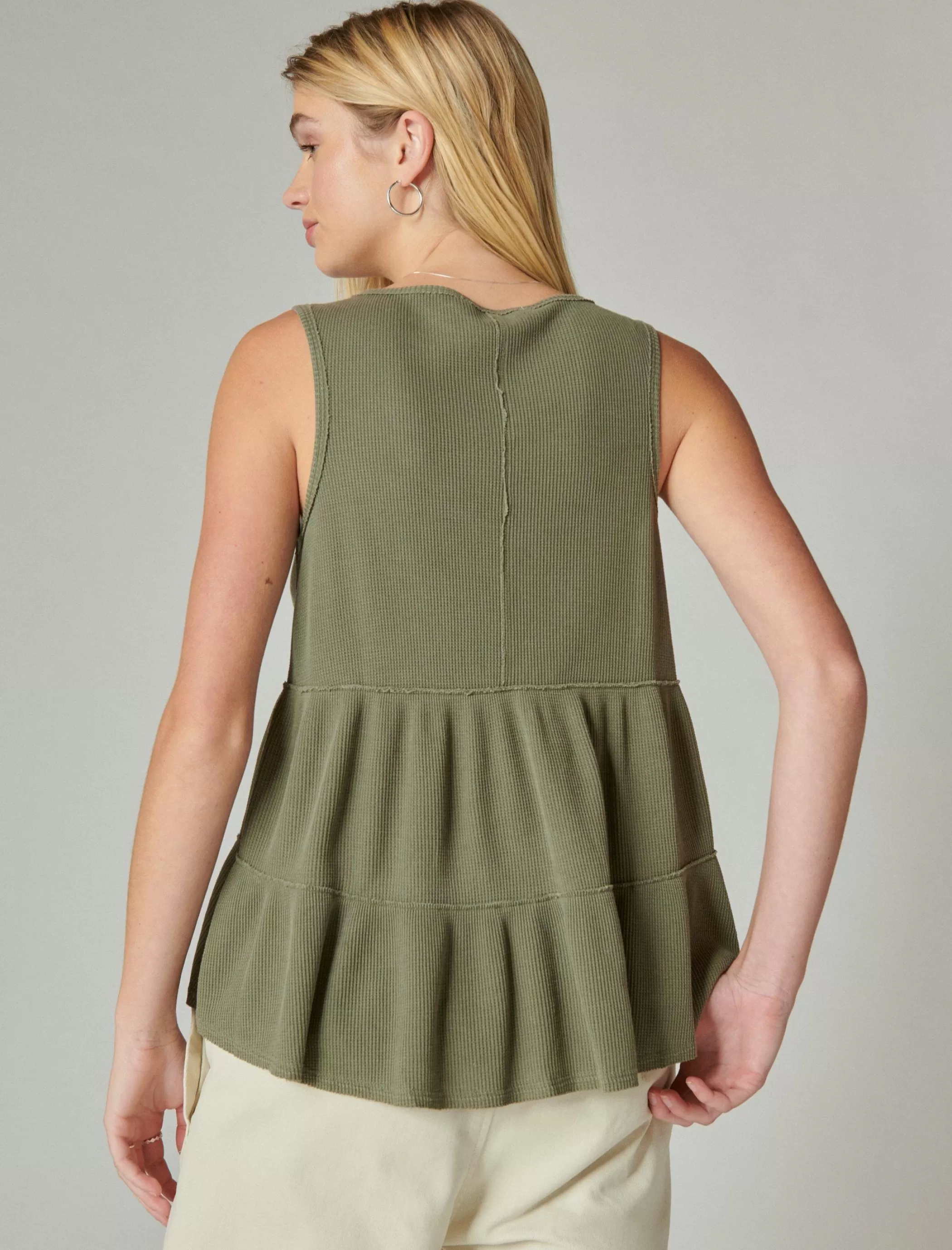 The soft waffle-knit fabric and loose, flowy fit make this tunic tank a must-have for your everyday wardrobe.