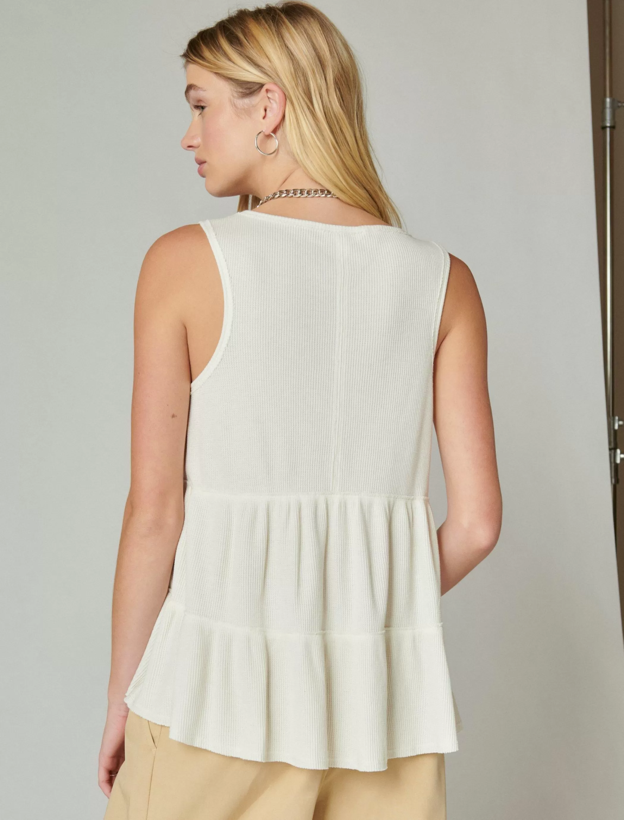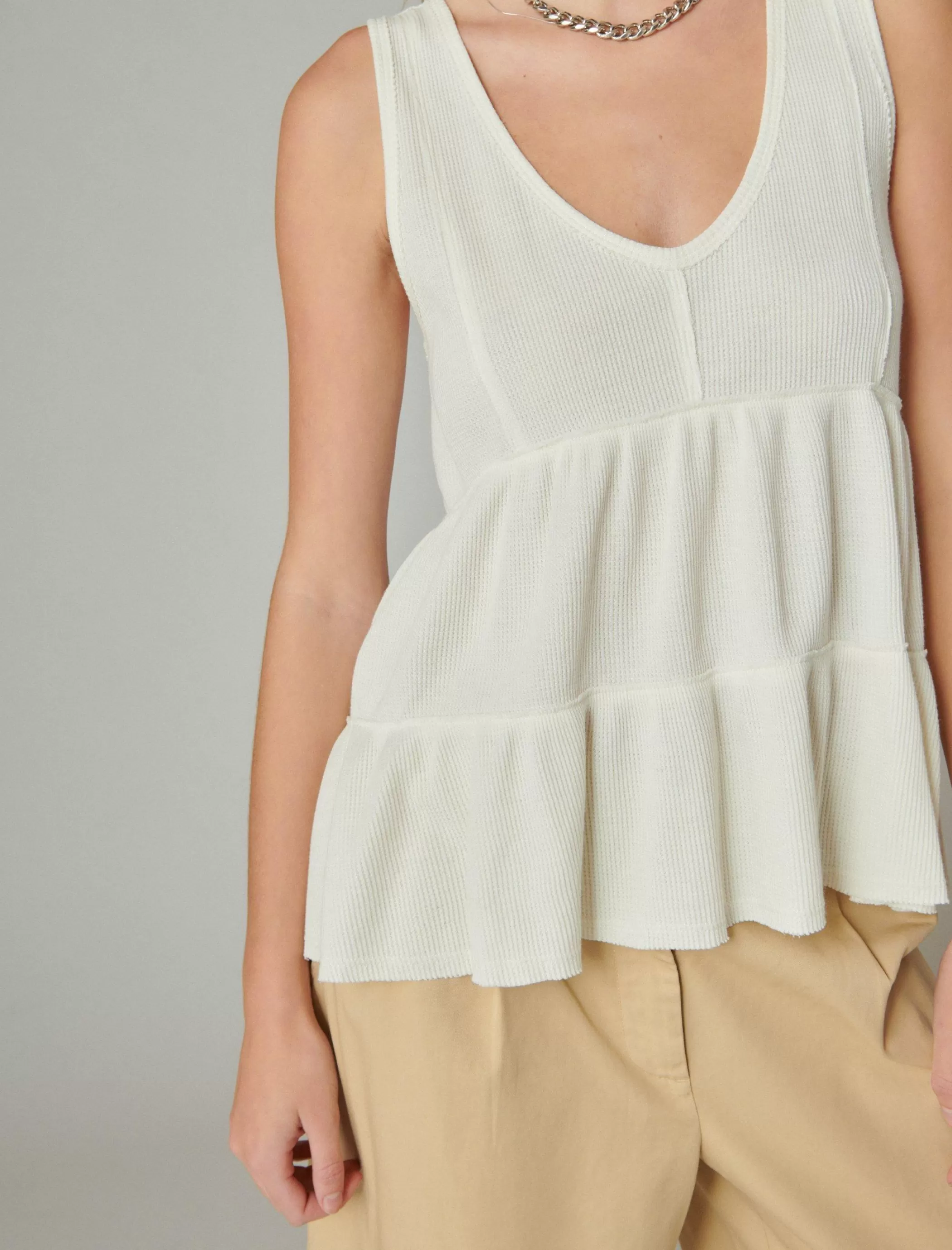 The soft waffle-knit fabric and loose, flowy fit make this tunic tank a must-have for your everyday wardrobe.