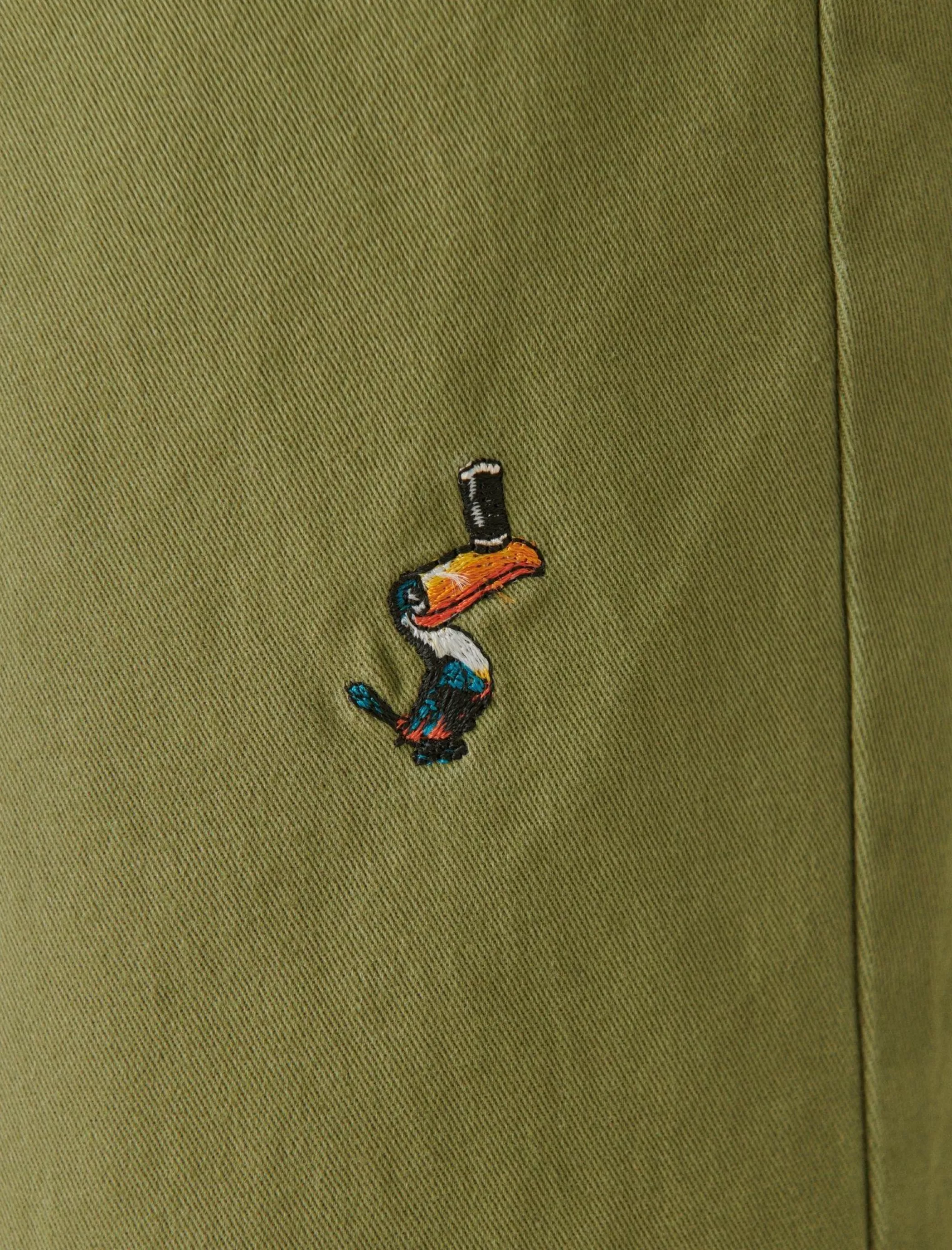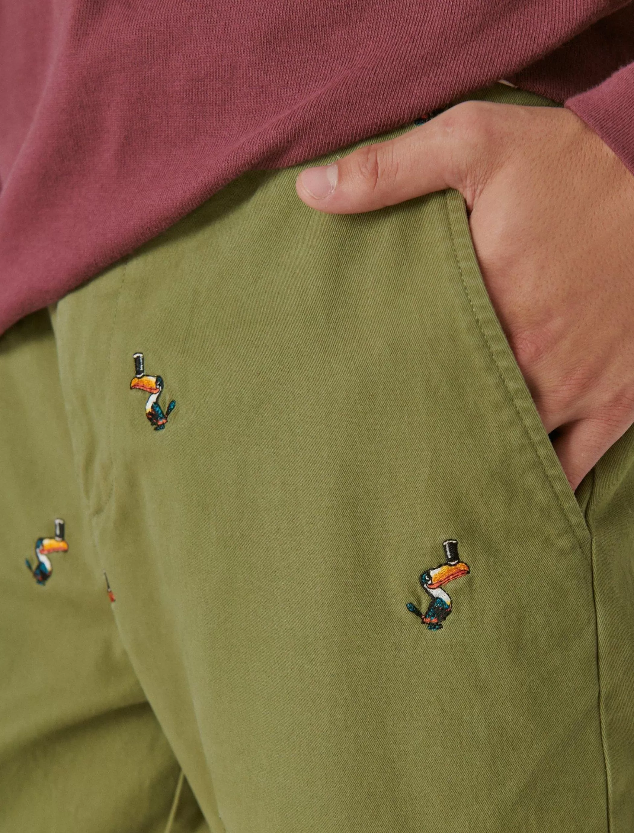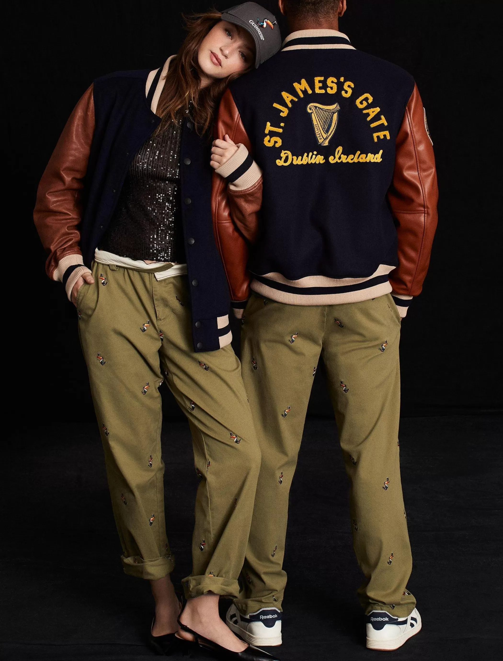 An infusion of classic prep and court core, this limited edition Guinness x Lucky Brand pant shows off an all-over embroidered design of the Irish stout brand’s iconic toucan. It’s a little bit playful, a little bit whimsical, and totally Lucky Brand.