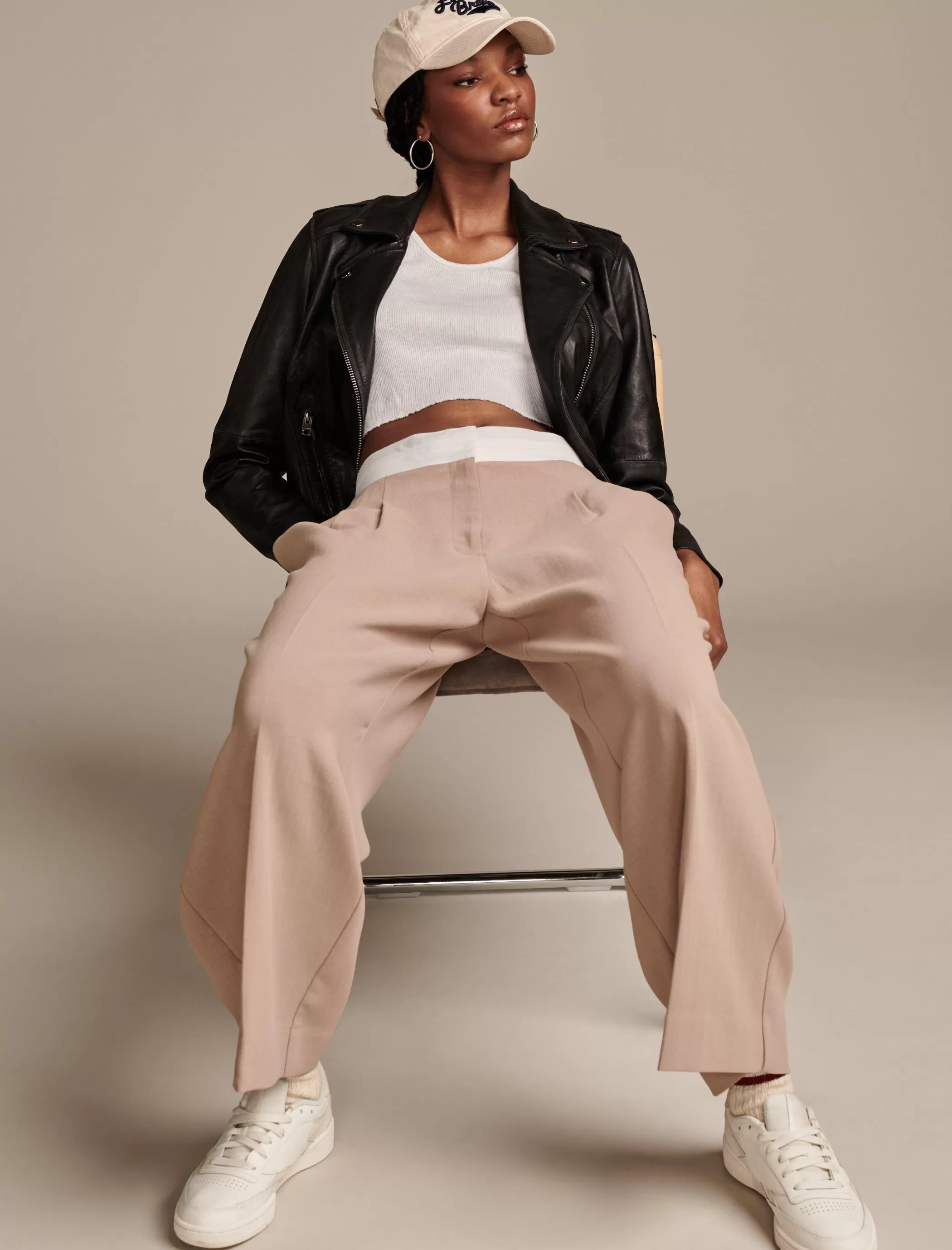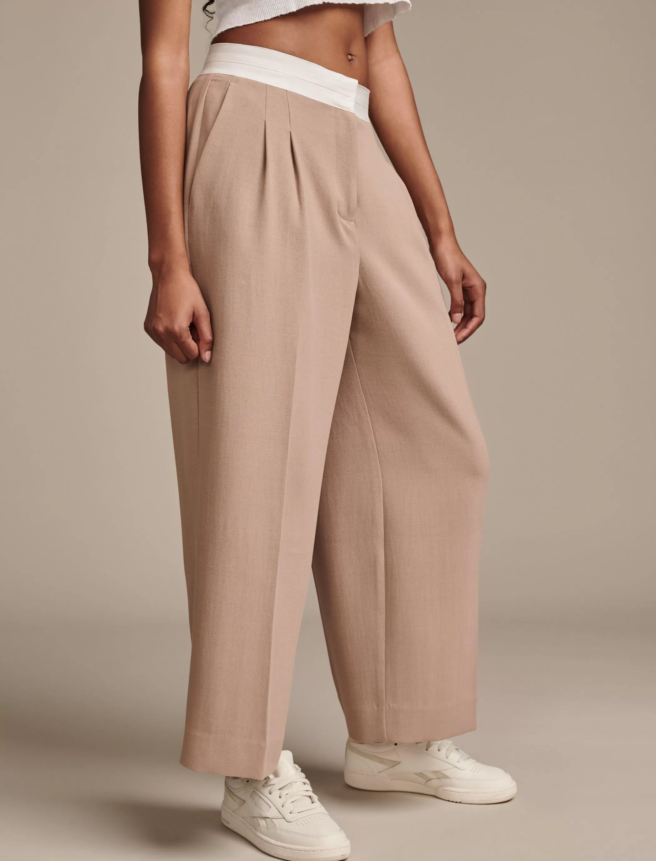 Pull off a polished, yet laid back look with this menswear-inspired pant. With pretty pleats down the front and back, this pair is finished with a contrast color waist and side pockets for your on-the-go essentials.