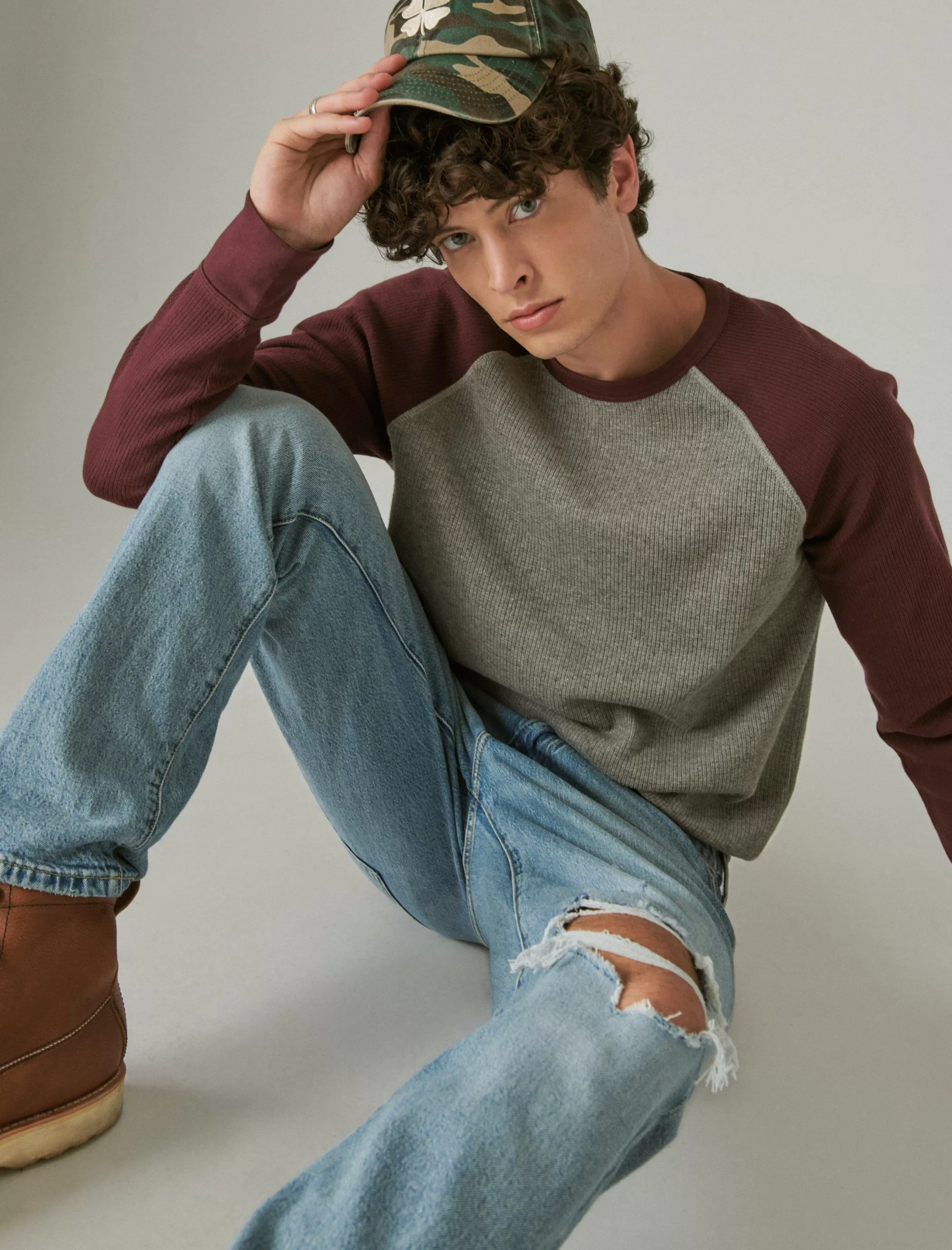Cut from French terry cotton, this long sleeve crewneck shows off a cool colorblock design and rib-knit details.