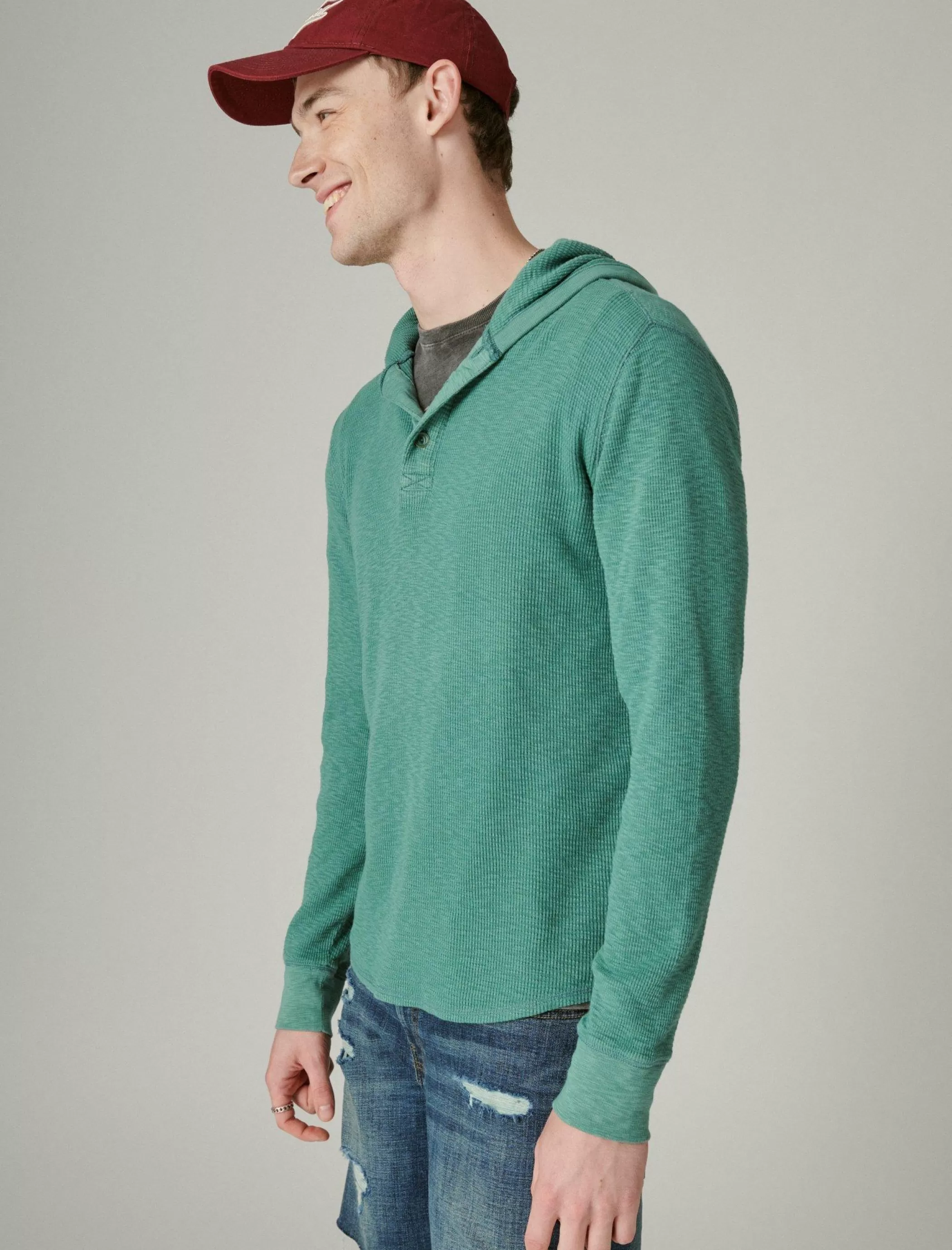 Equal parts hoodie and henley, this thermal hoodley is perfect for laid back days and beyond.