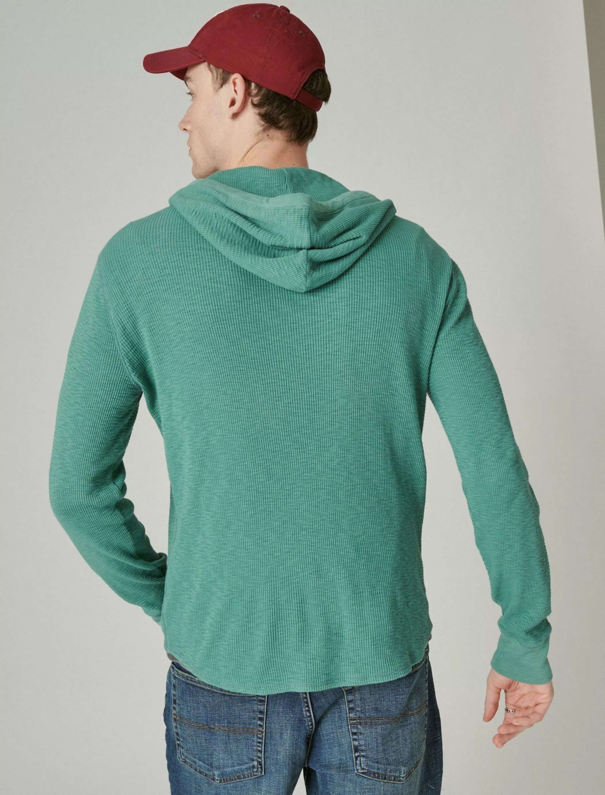 Equal parts hoodie and henley, this thermal hoodley is perfect for laid back days and beyond.HoodThree-button placketLon…