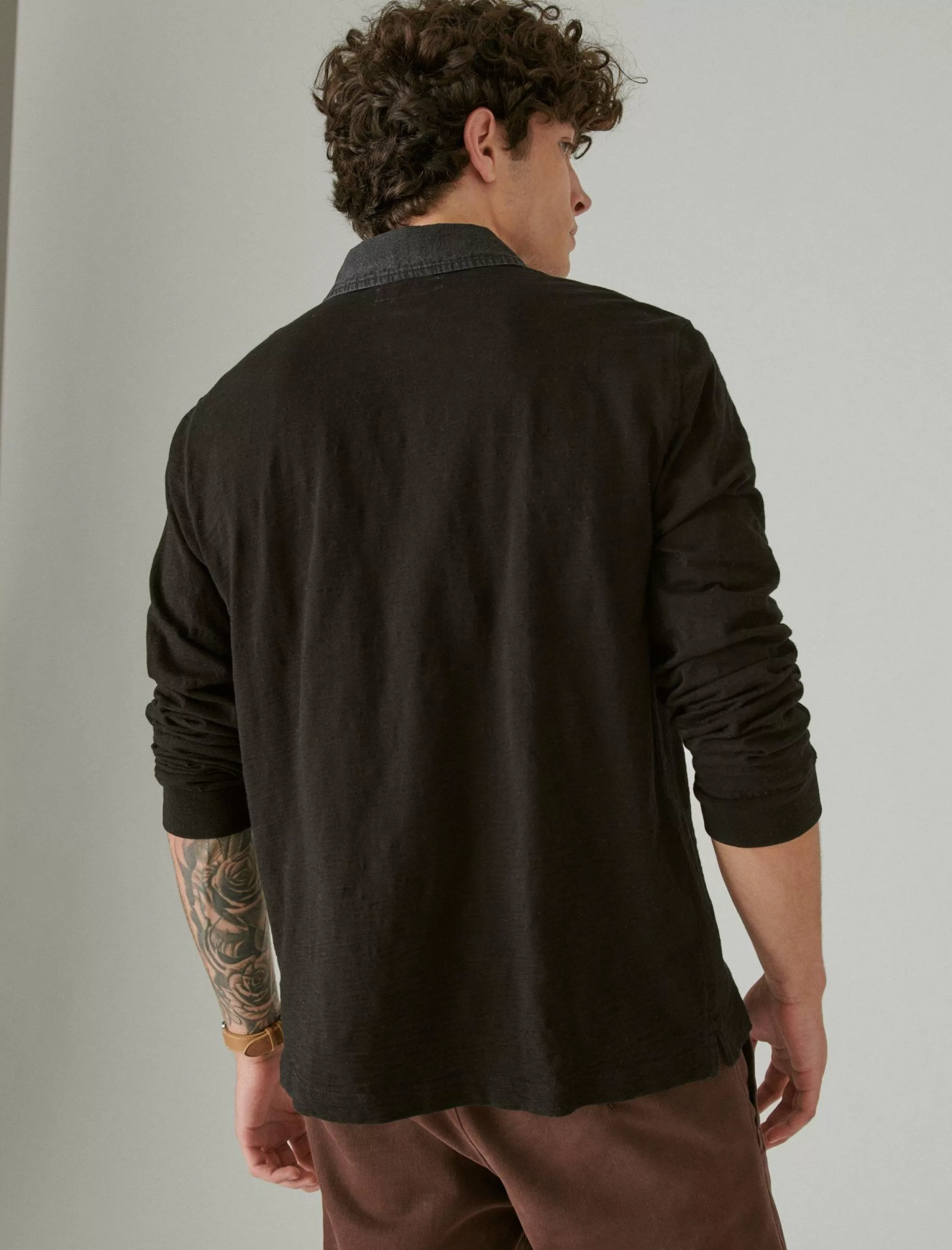 Dyed with indigo for a one-of-a-kind appearance, this rugby-style shirt can be worn any day of the week for an athletic-…