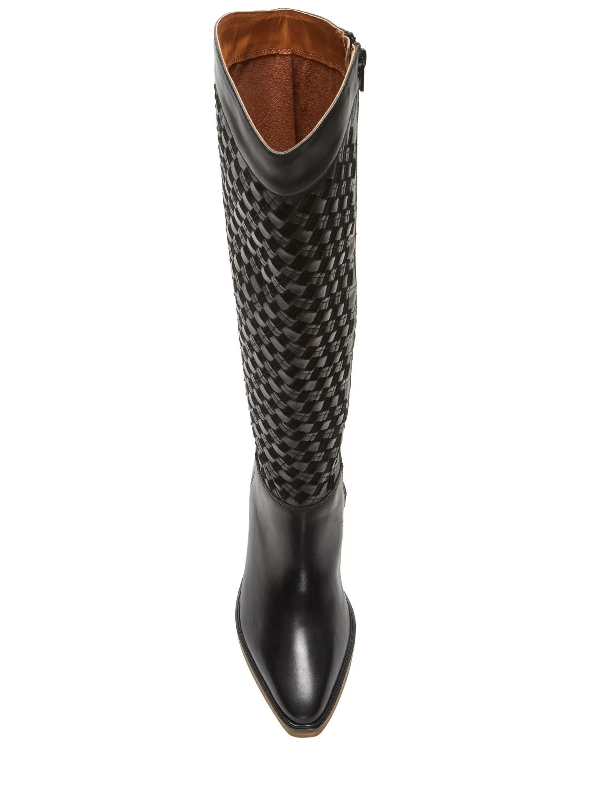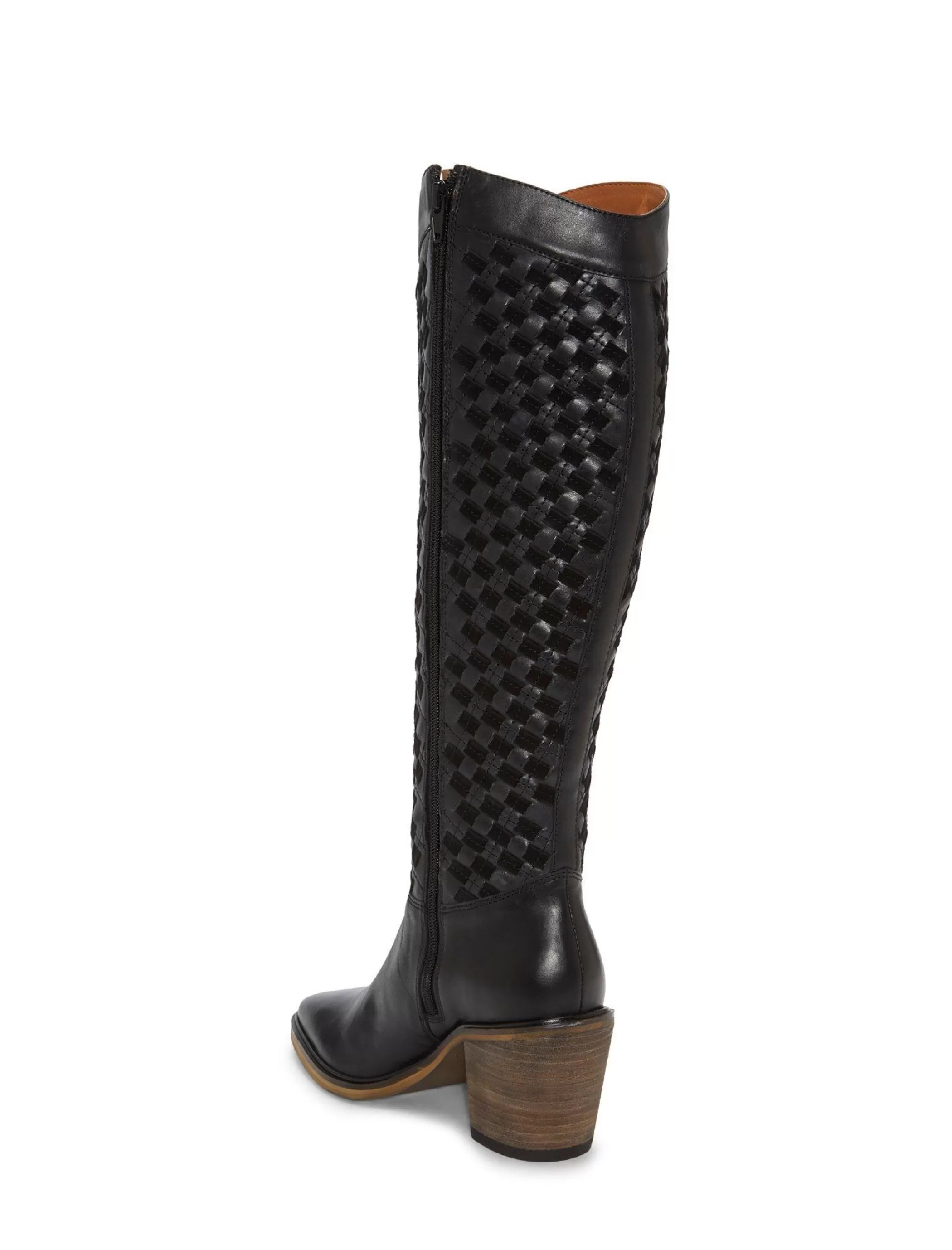 Make a major style statement with the Abeny boot. Crafted of premium leather, this knee-high boot shows off a so stunning woven design, secure side zip closure and lifted block heel.