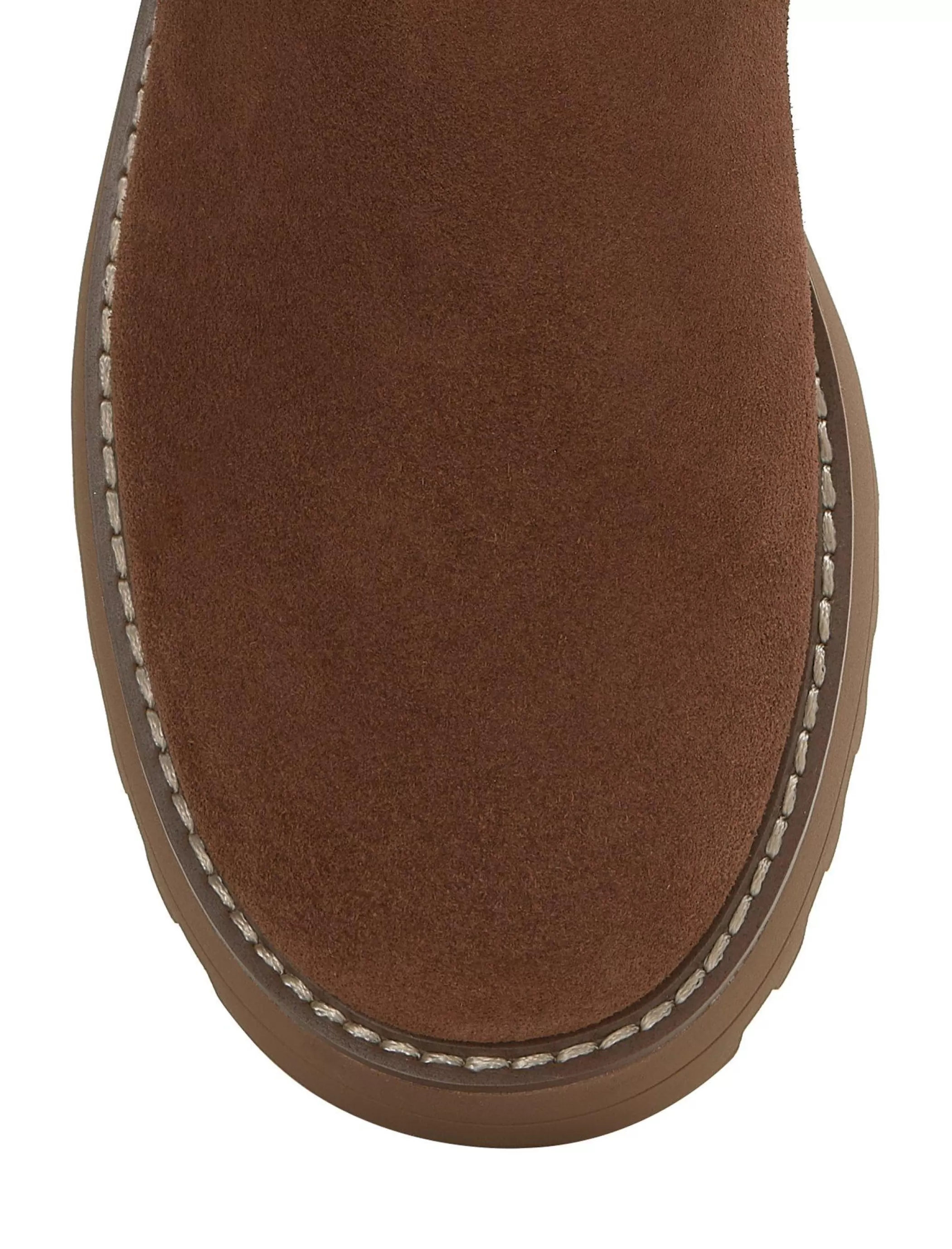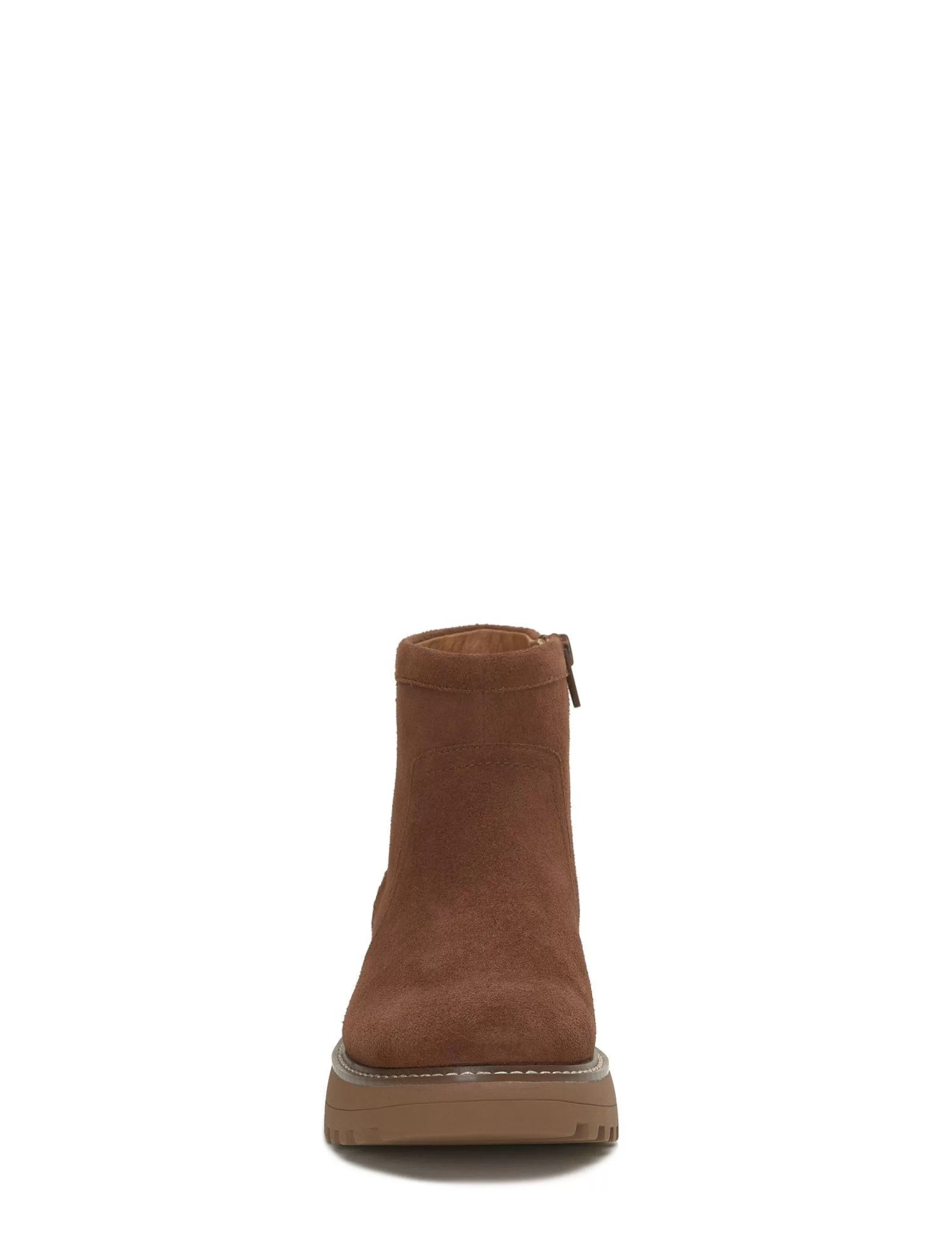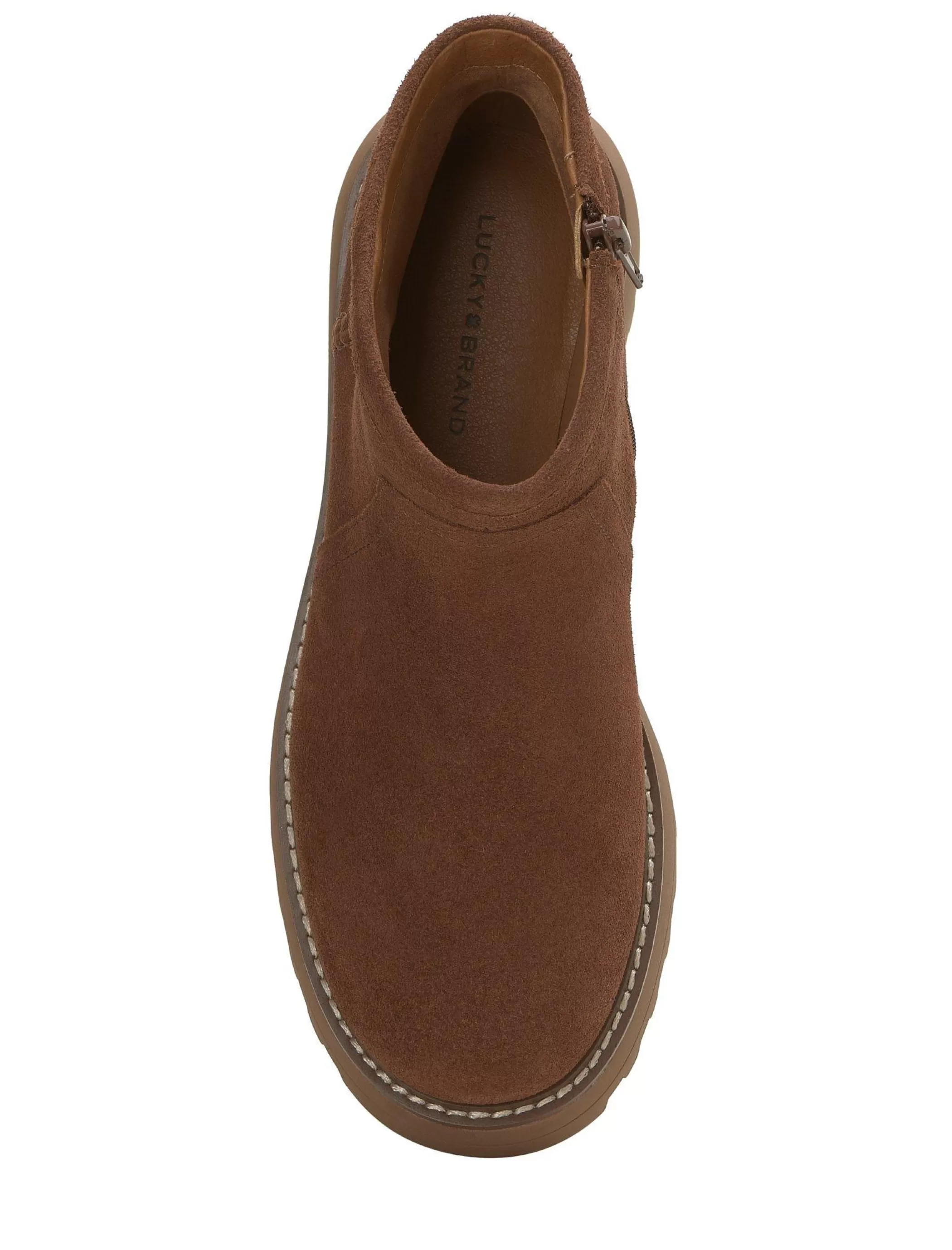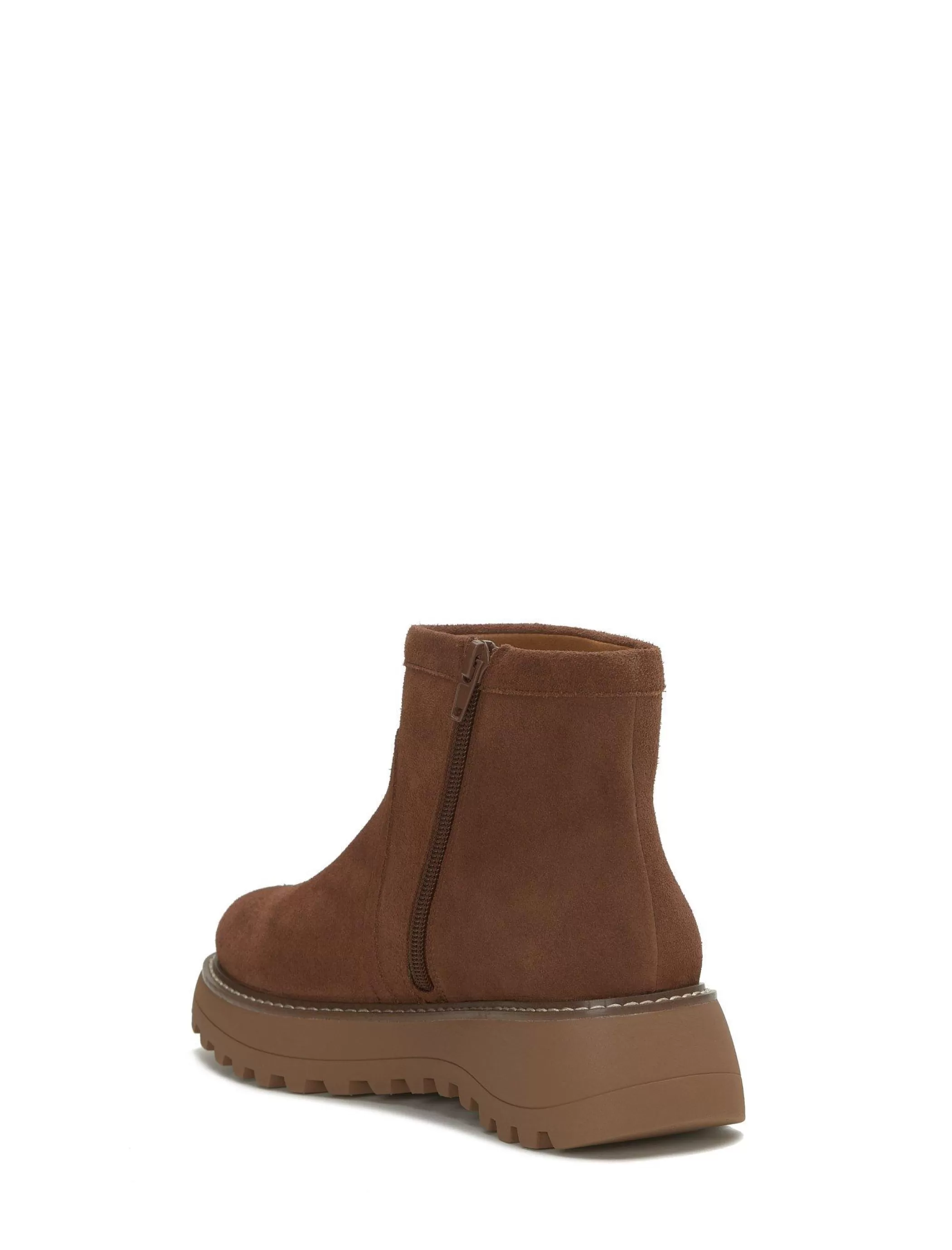 Cute and comfy, the Chameli lug bootie features a suede upper, side zip closure and contrast stitching with a thick EVA sole for reliability.