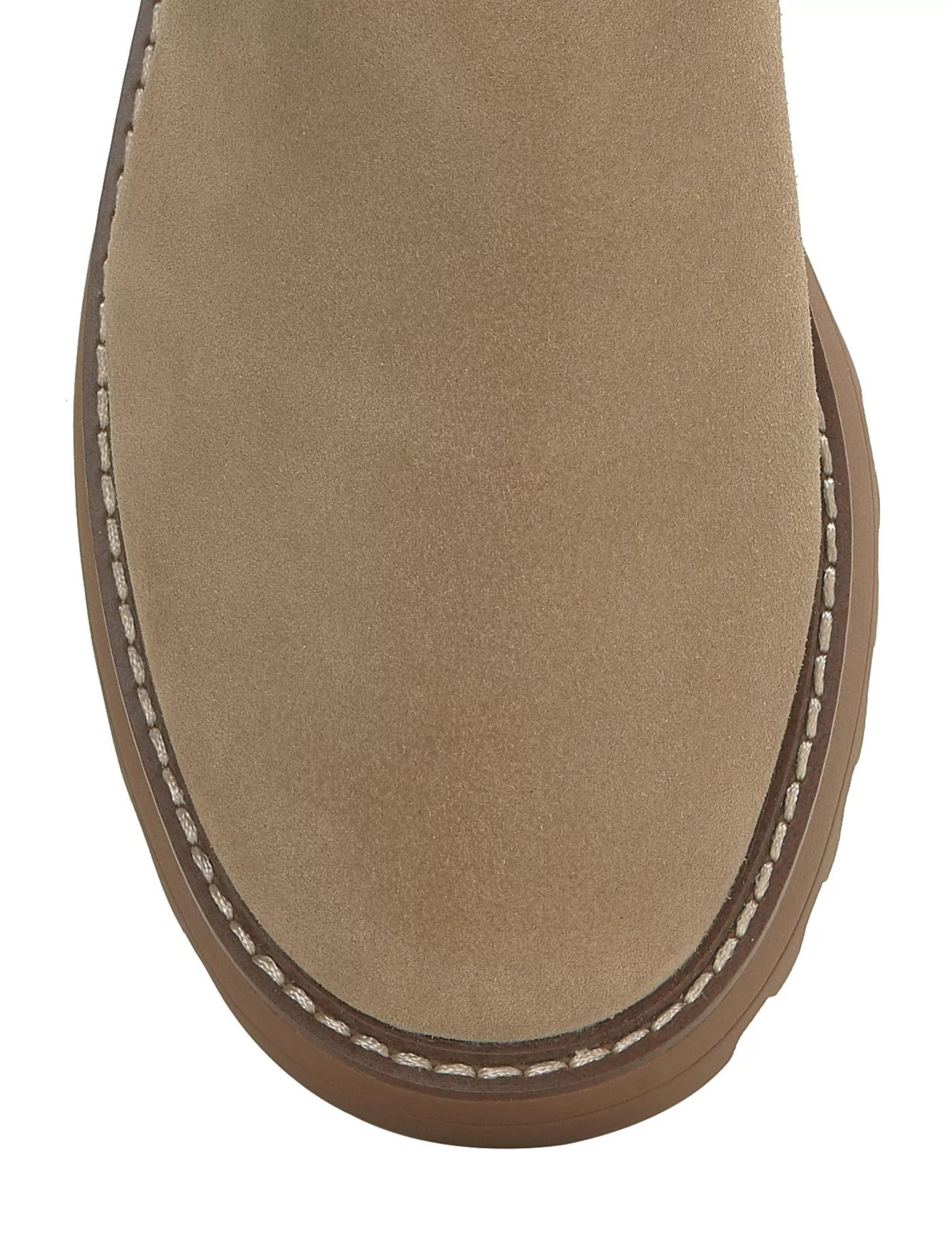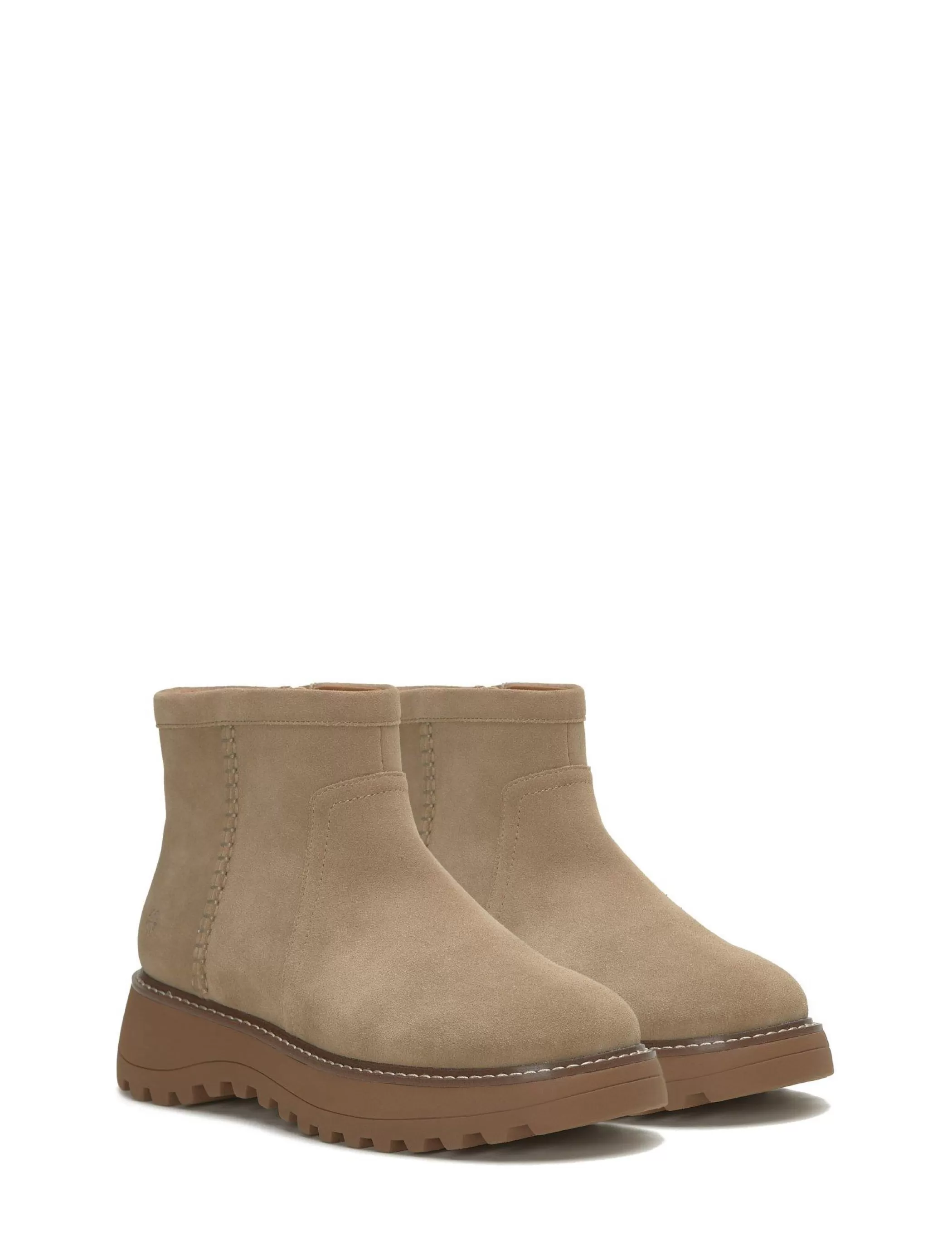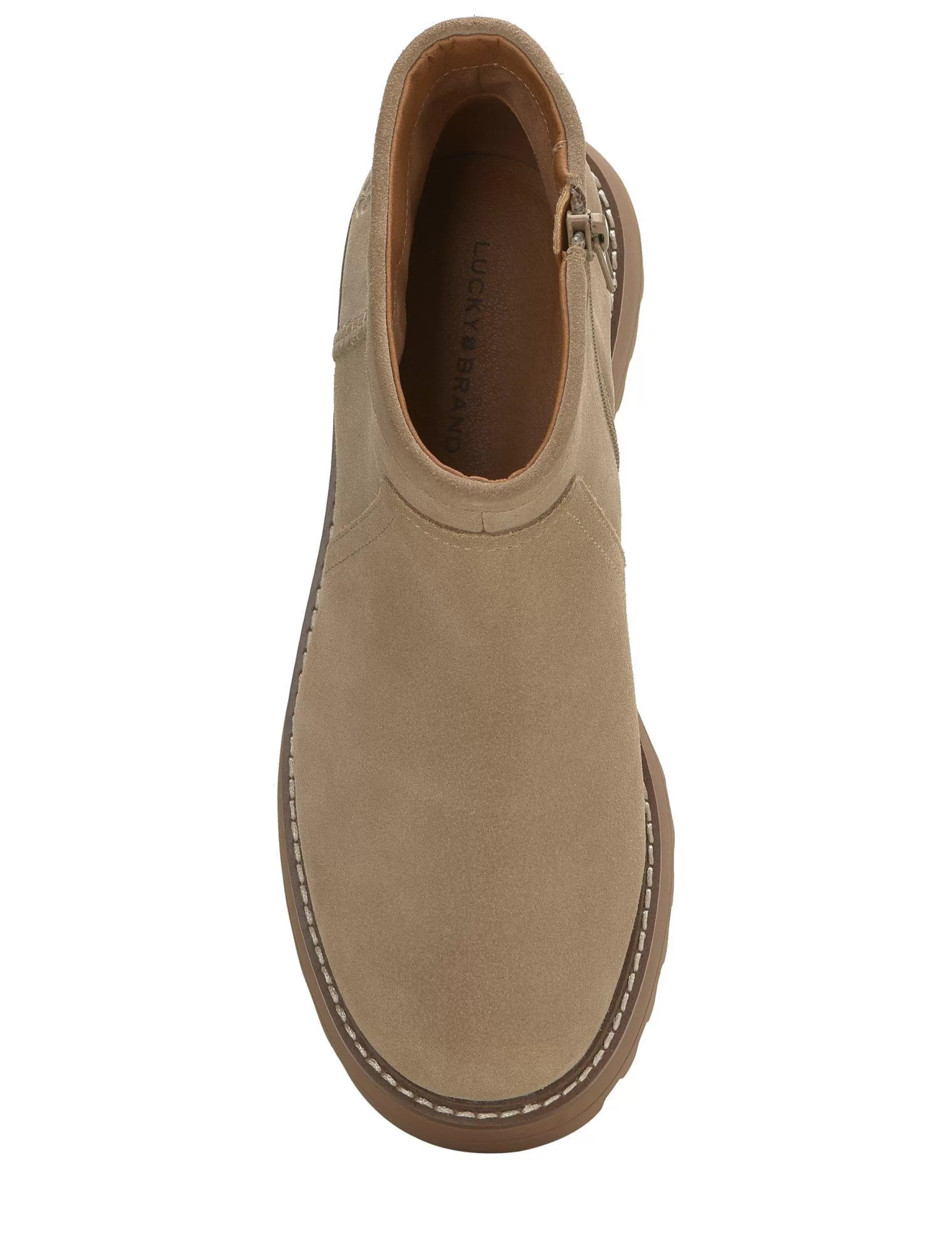 Cute and comfy, the Chameli lug bootie features a suede upper, side zip closure and contrast stitching with a thick EVA sole for reliability.