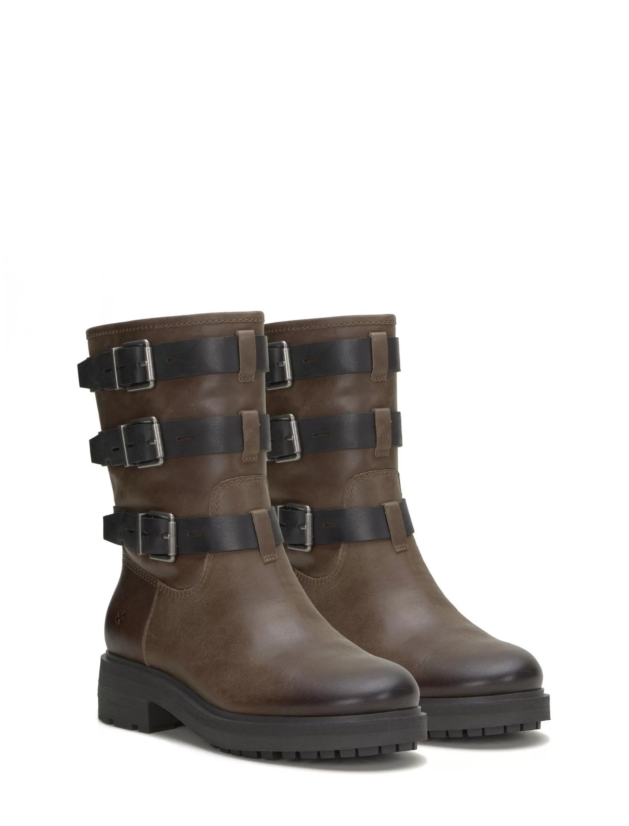 Biker babe, but make it cute. Featuring a leather upper, the Cheviss bootie brings major moto vibes with triple buckle straps, a high-ankle silhouette and reliable rubber sole.