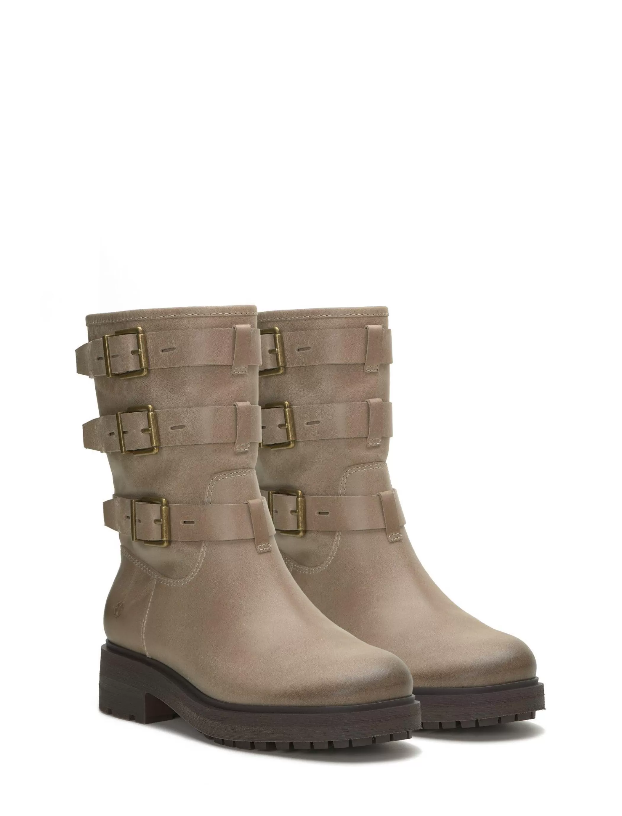 Biker babe, but make it cute. Featuring a leather upper, the Cheviss bootie brings major moto vibes with triple buckle straps, a high-ankle silhouette and reliable rubber sole.