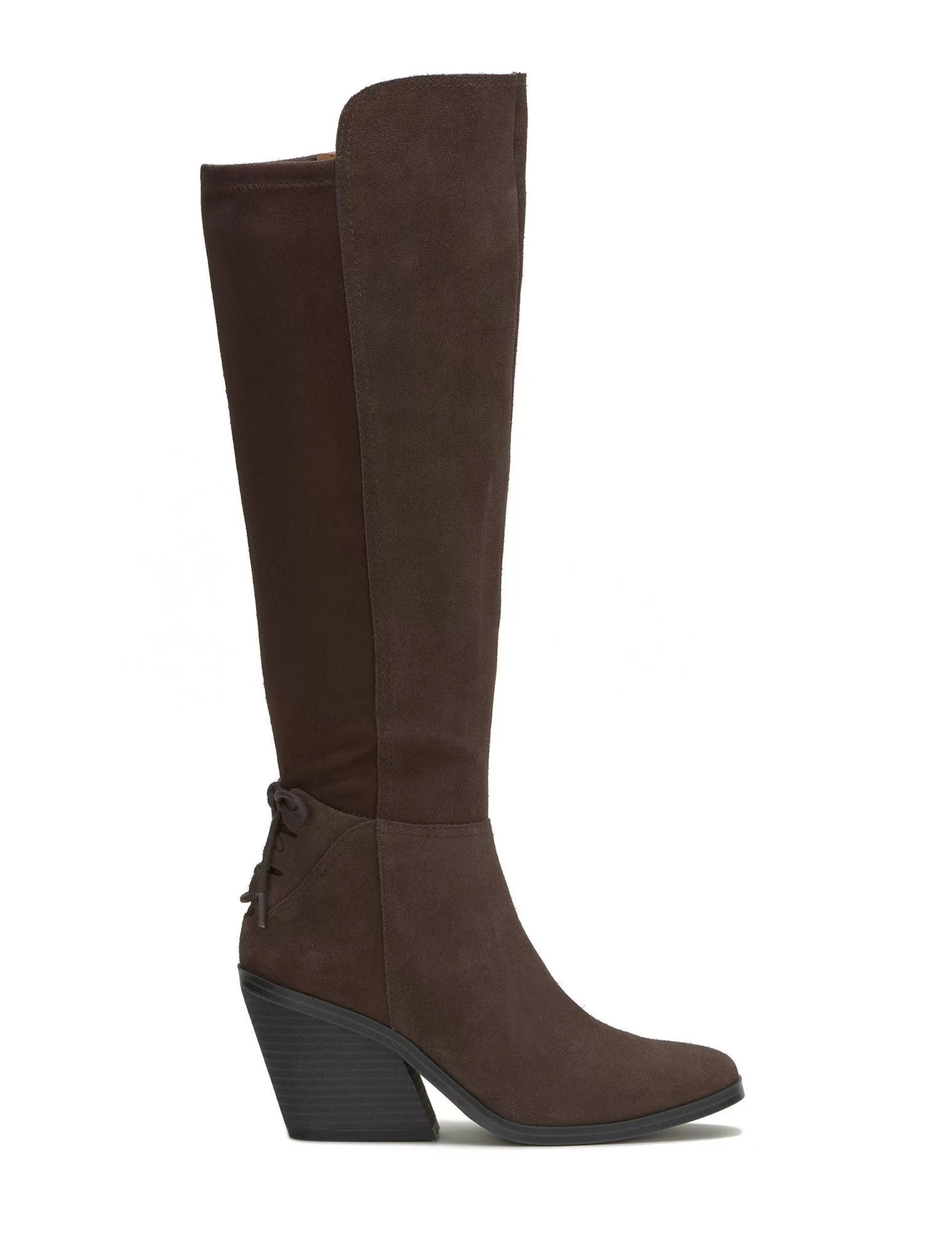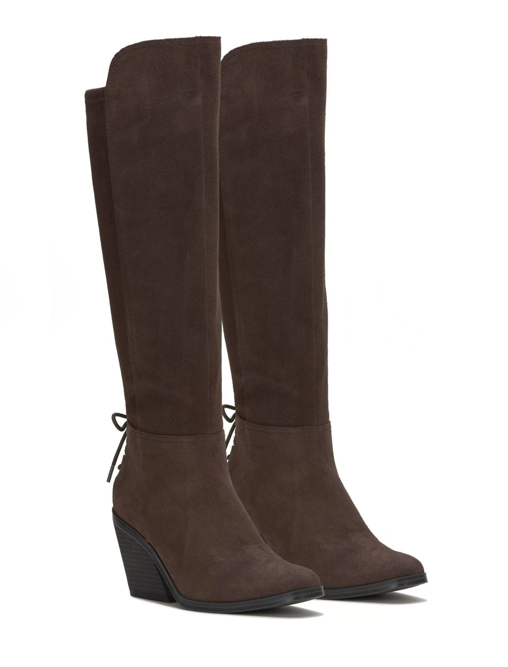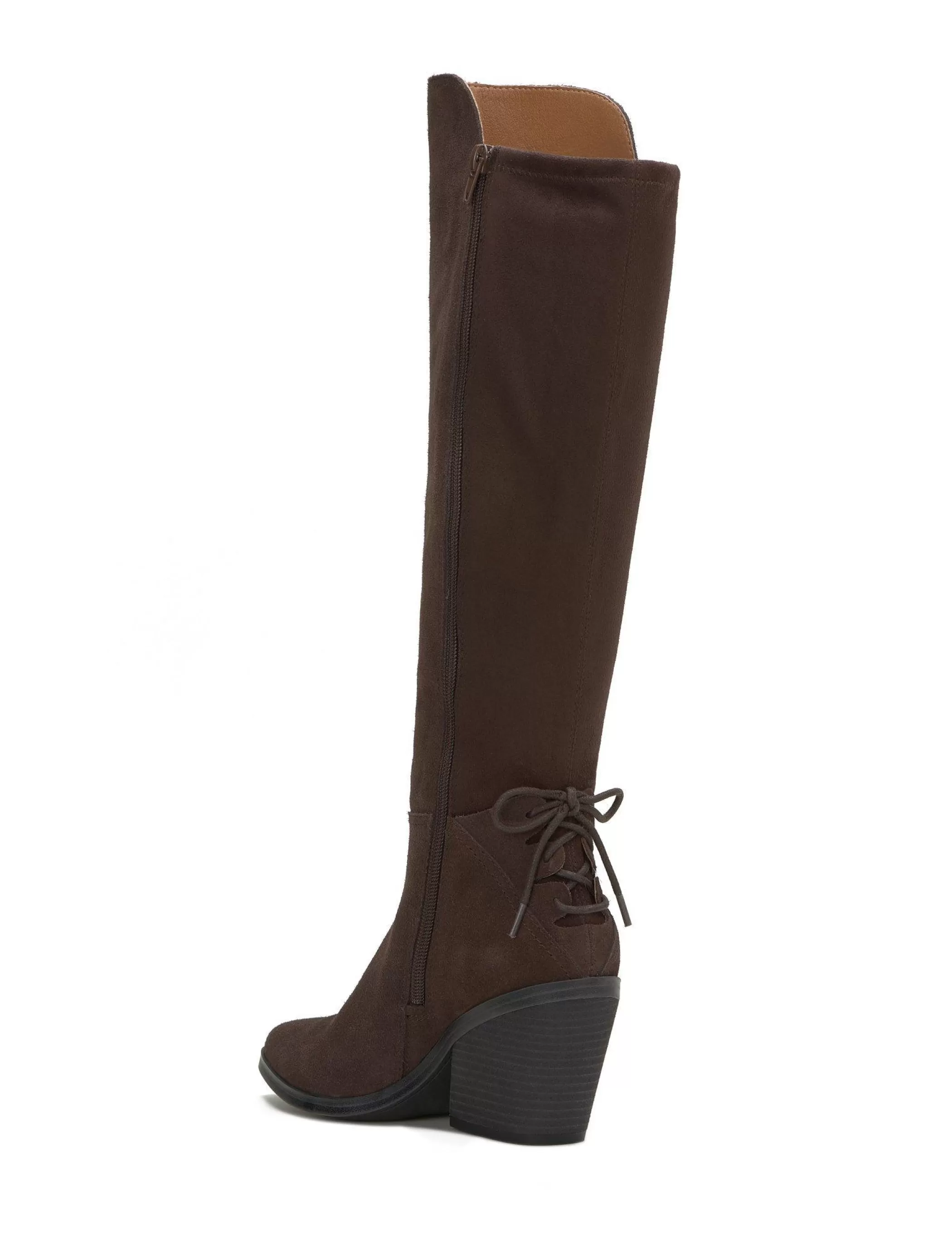Bring a bold finishing touch to any look with the Mekinna boot. Featured in soft suede leather, this zip-up boot has corset-style lace-up detail at the slanted heel and a padded footbed for all-day comfort.