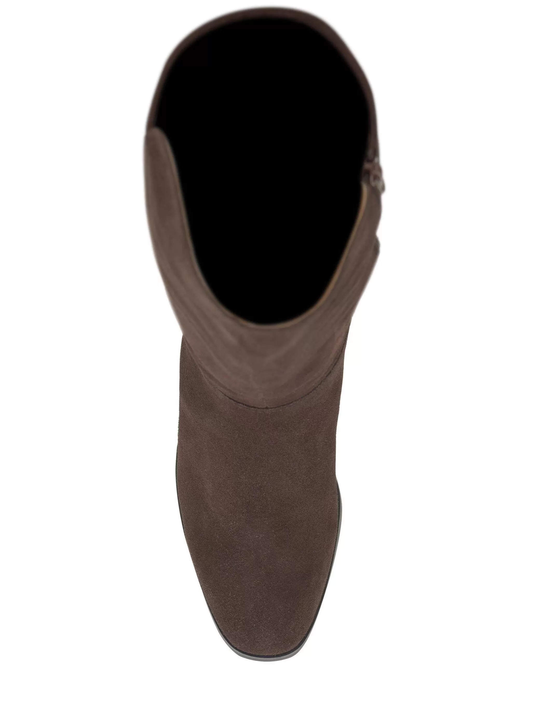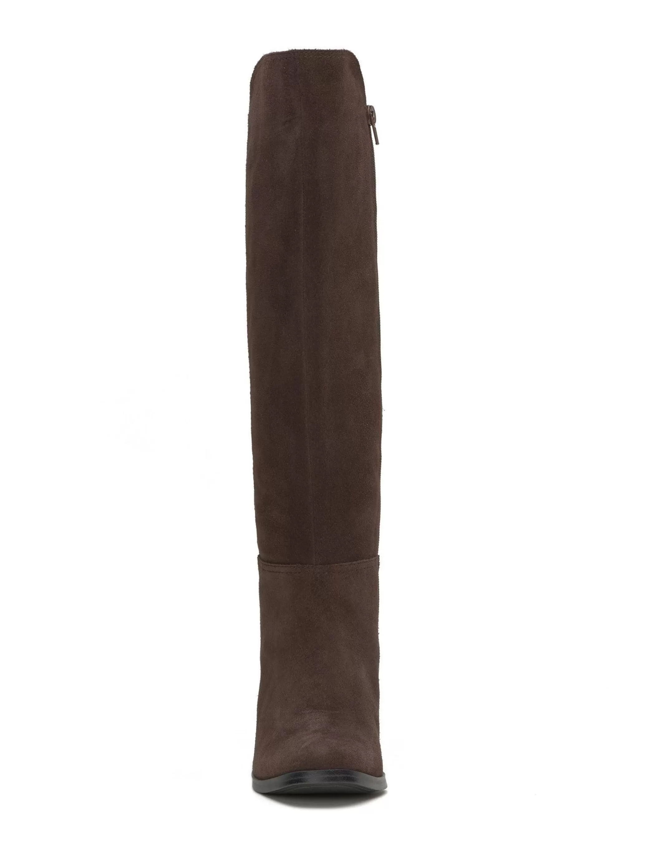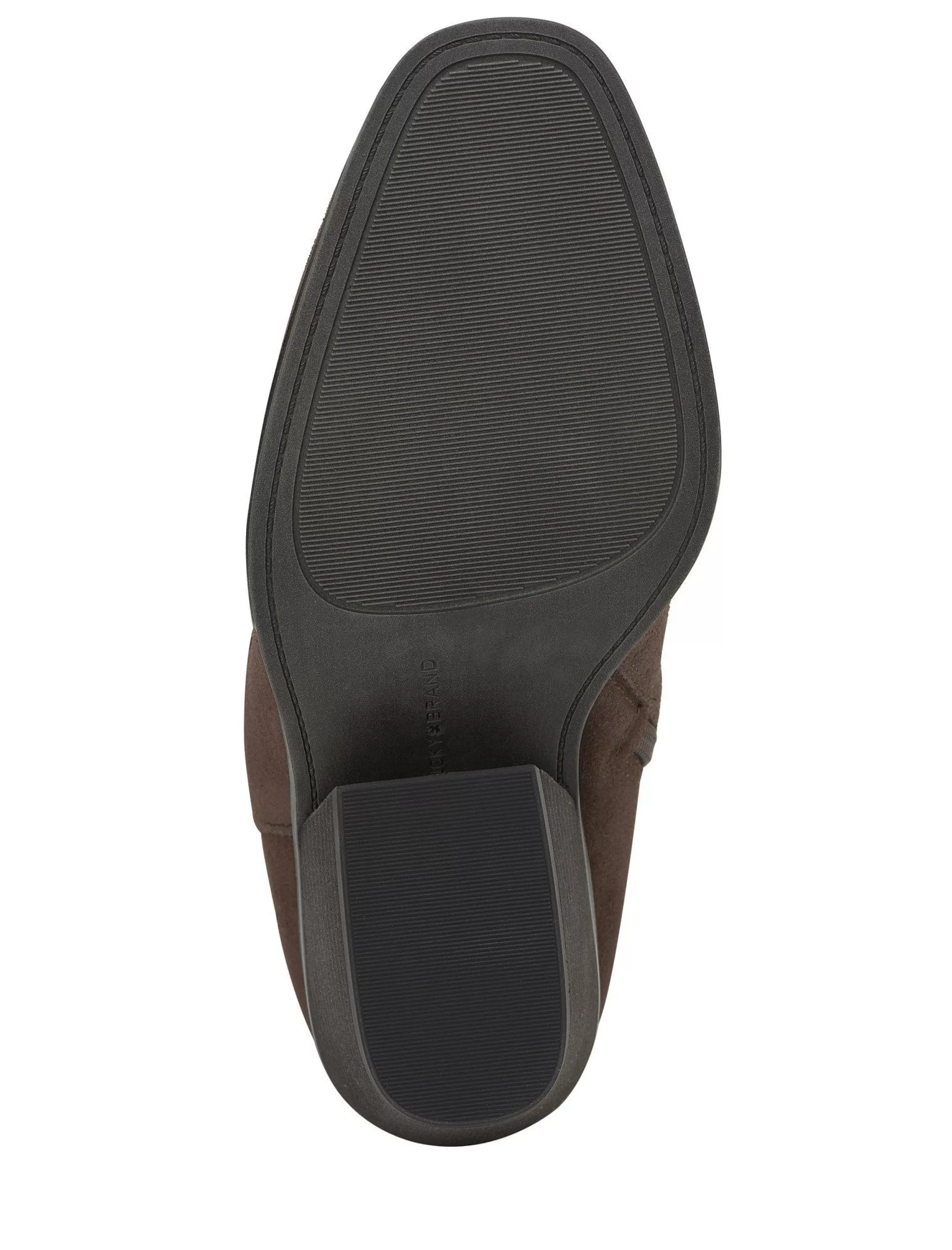 Bring a bold finishing touch to any look with the Mekinna boot. Featured in soft suede leather, this zip-up boot has corset-style lace-up detail at the slanted heel and a padded footbed for all-day comfort.