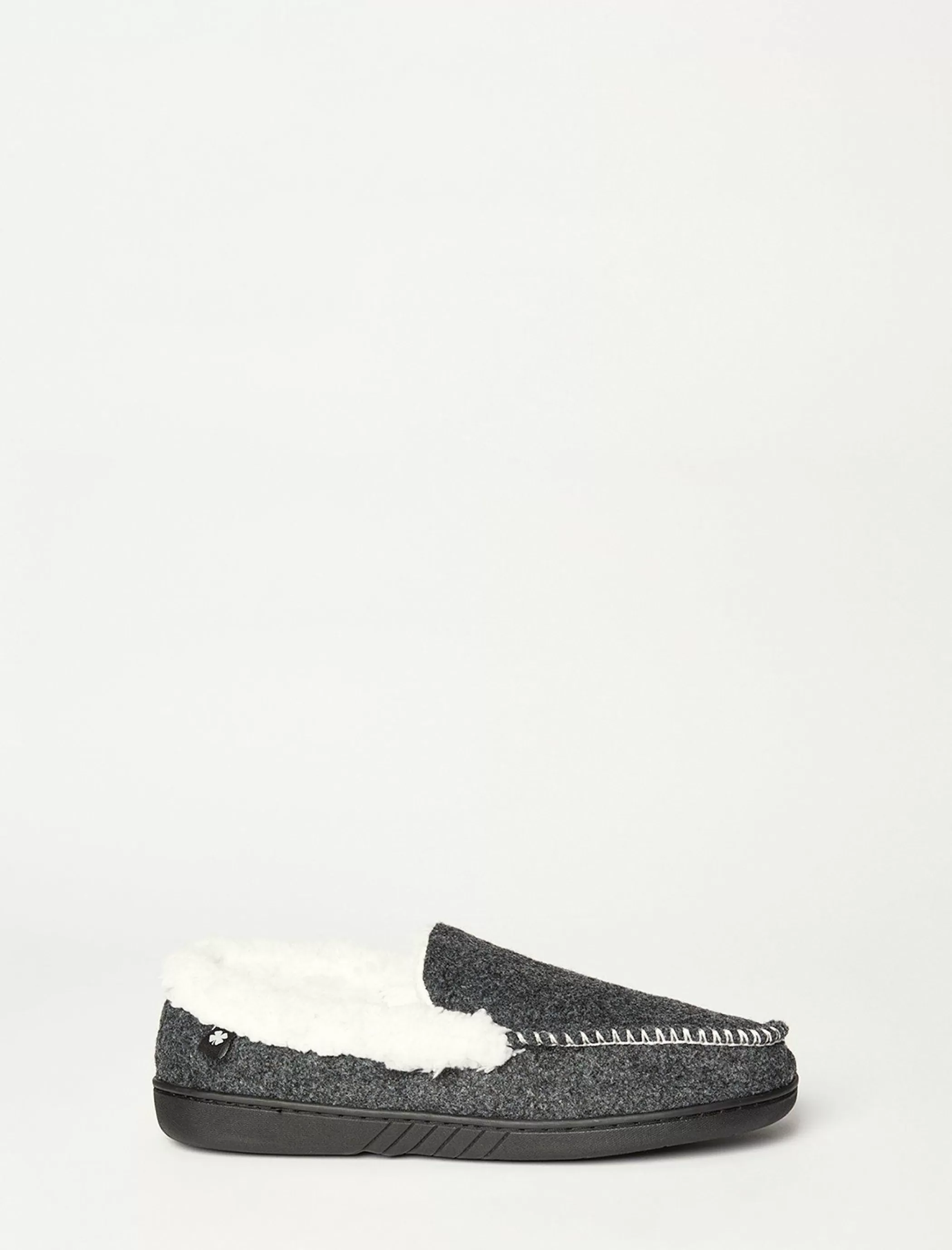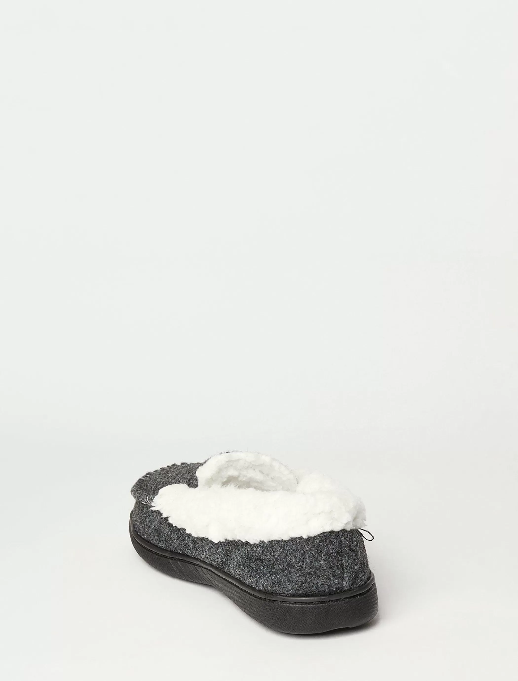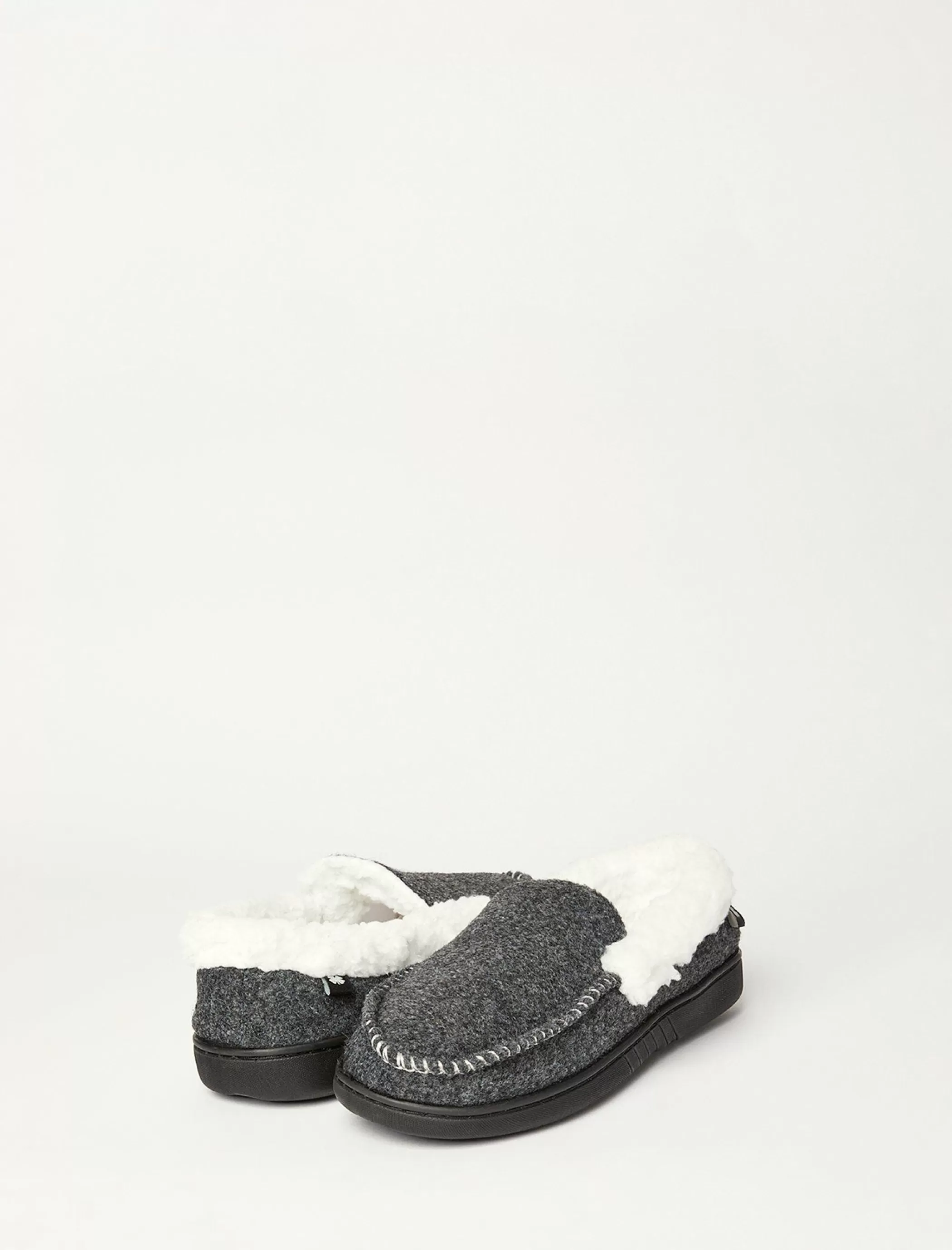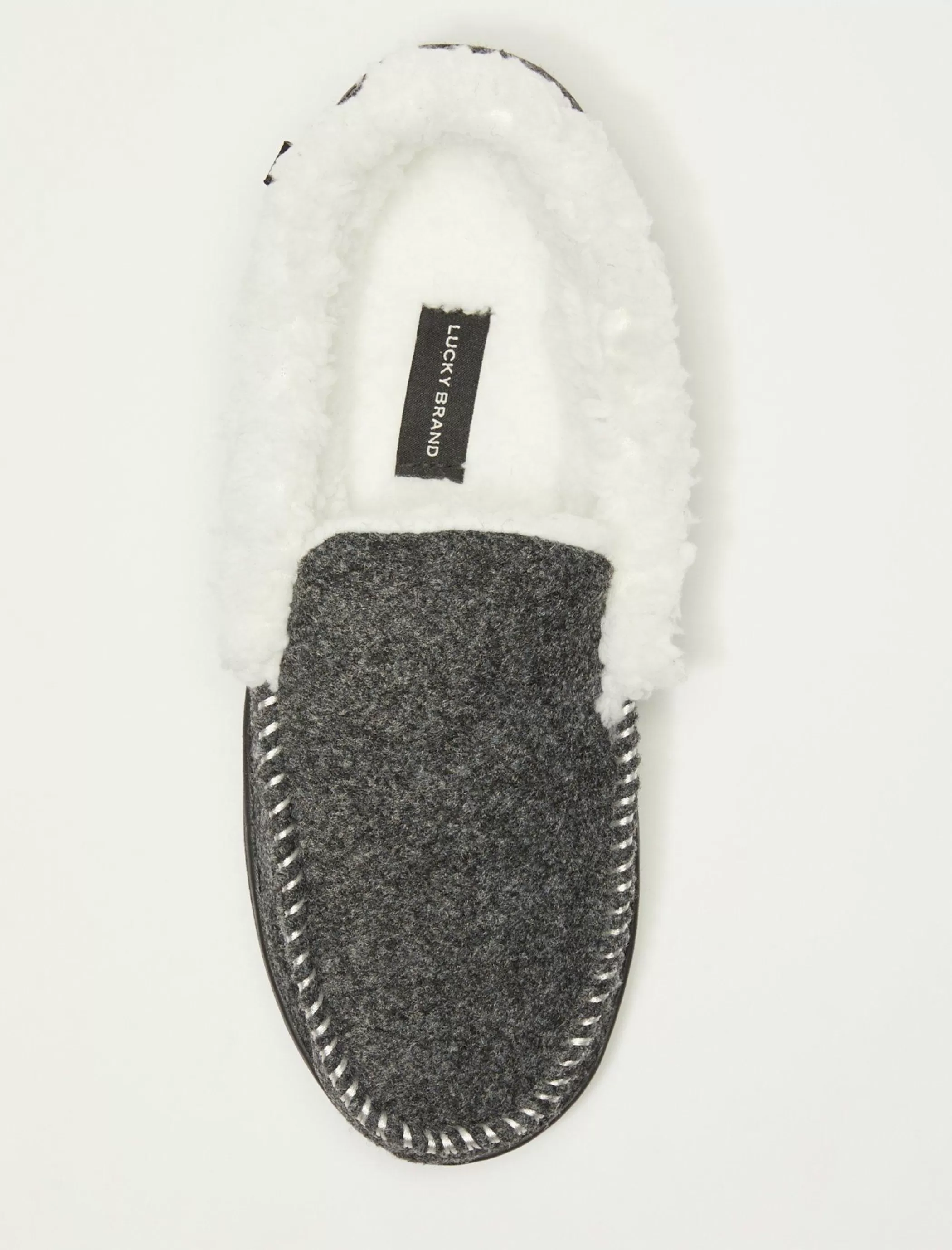 Lined with soft faux shearling, these faux wool slippers are designed to keep your feet warm throughout the season. A rubber outsole allows for indoor and outdoor use, while a cushioned footbed offers extra comfort.
