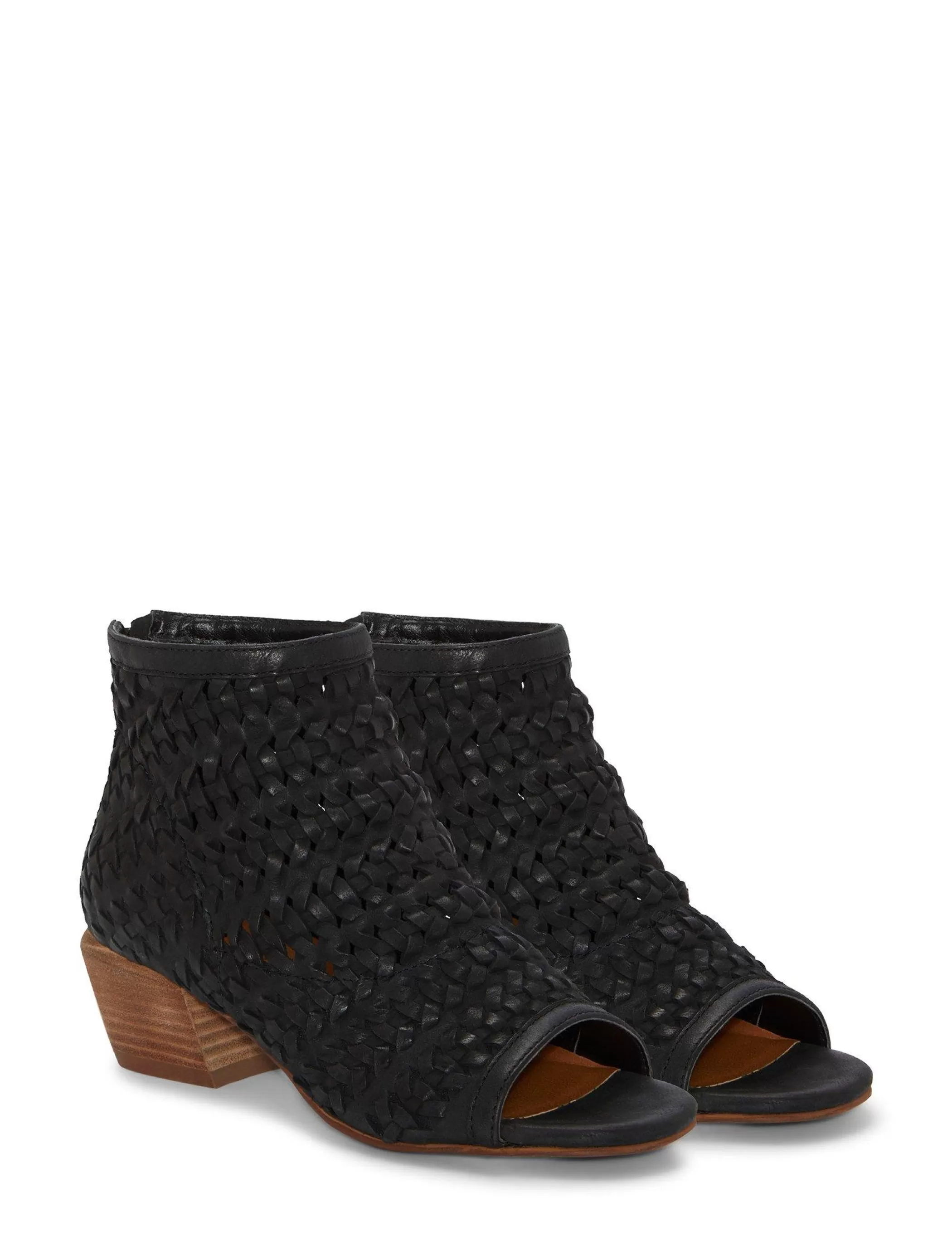 Set atop a block a heel, the Mofira sandal shows off a woven leather upper designed for statement-making style.Round ope…