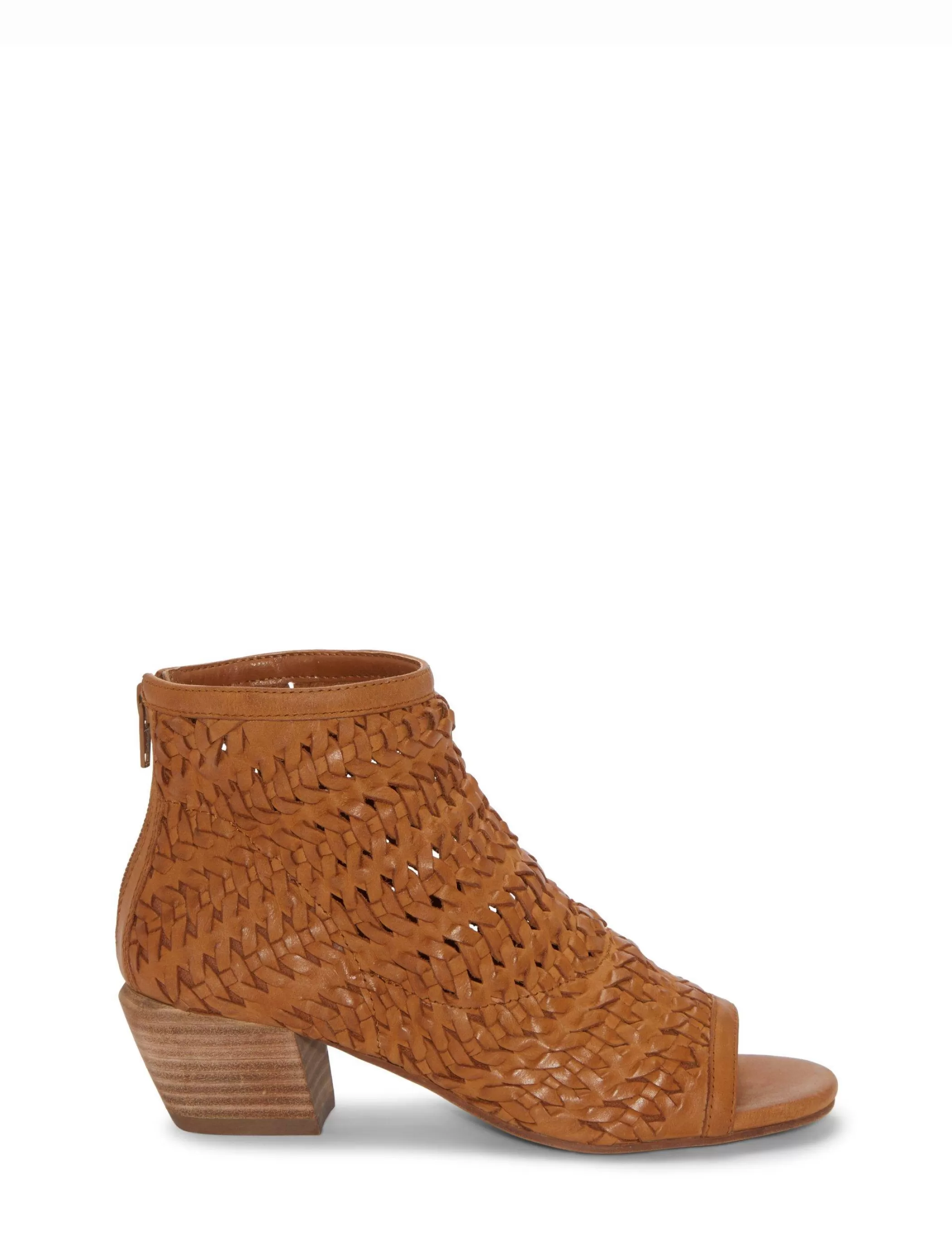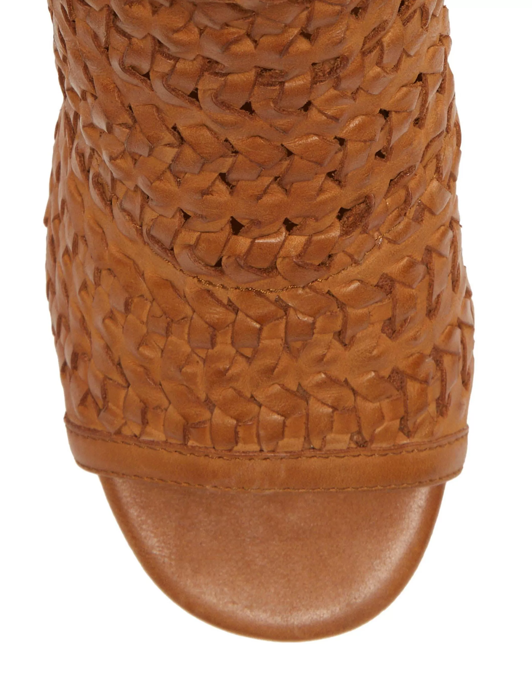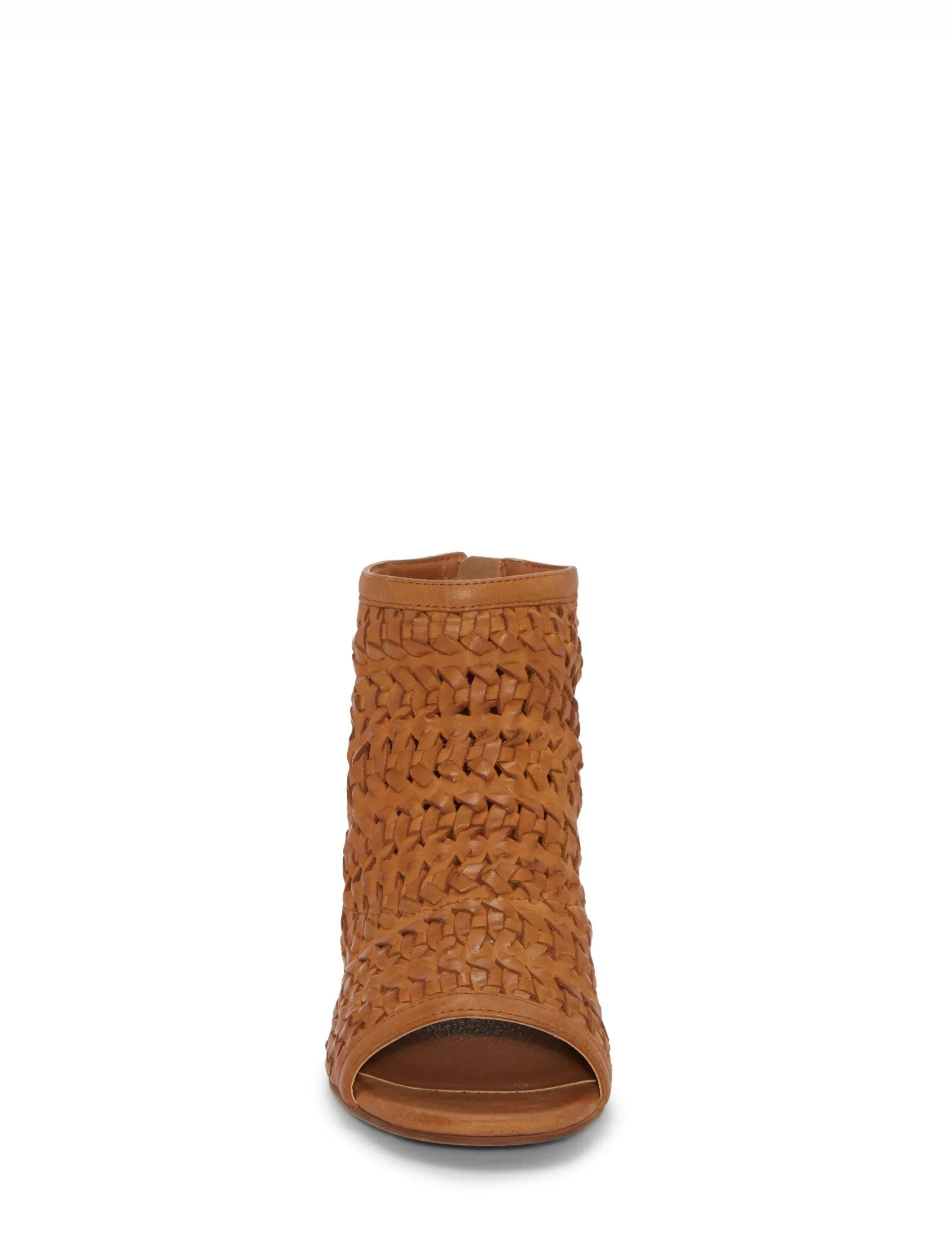 Set atop a block a heel, the Mofira sandal shows off a woven leather upper designed for statement-making style.Round ope…