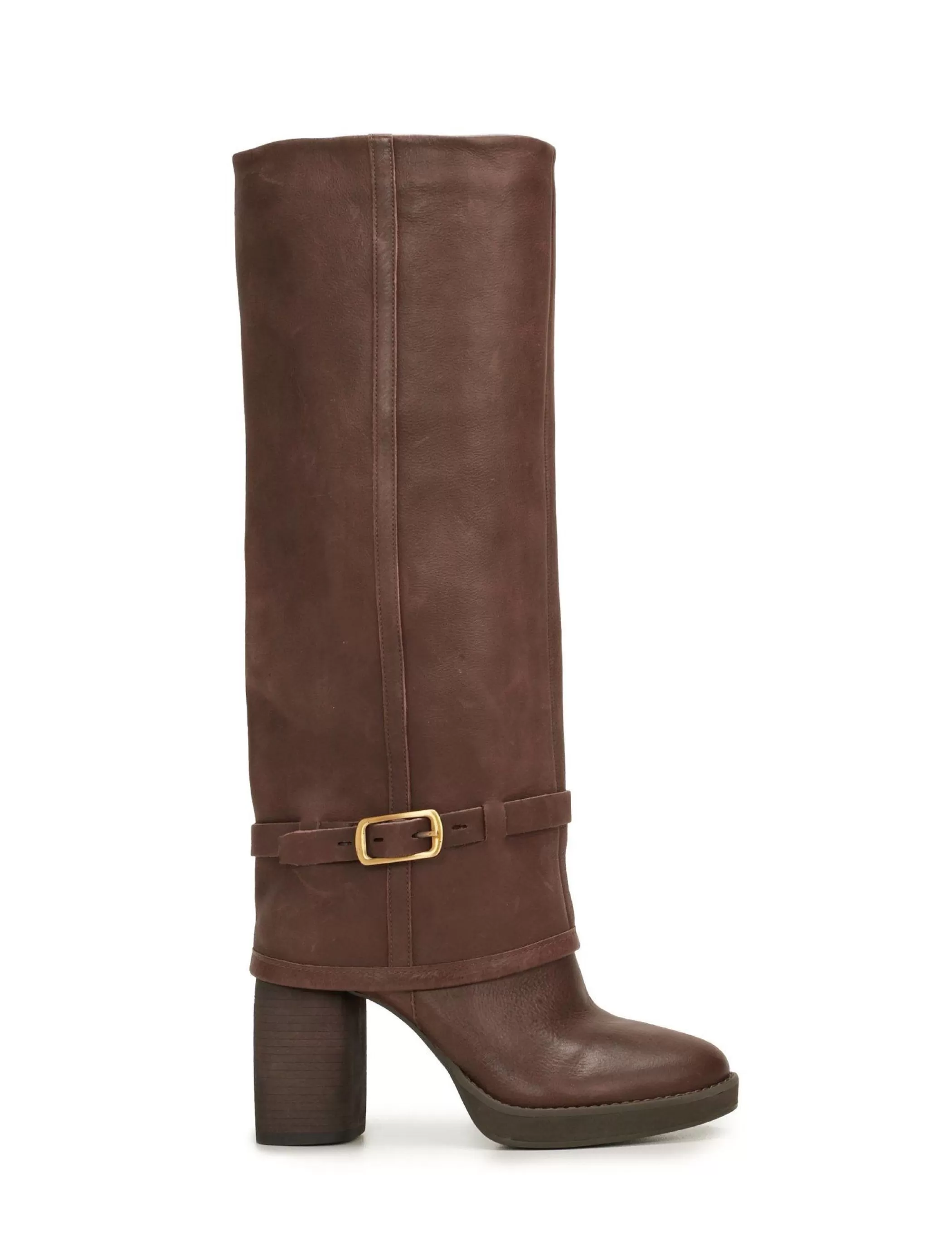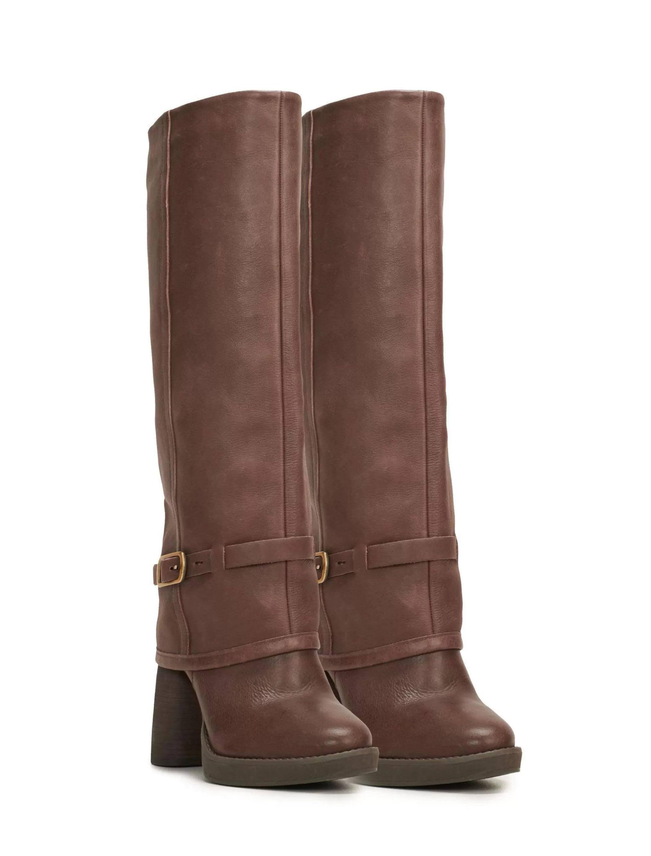 The Nathari isn’t your basic boot. Featured in sleek leather, this statement-making pair features a foldover design, an adjustable silver-tone buckle and a block heel for a just-right lift.