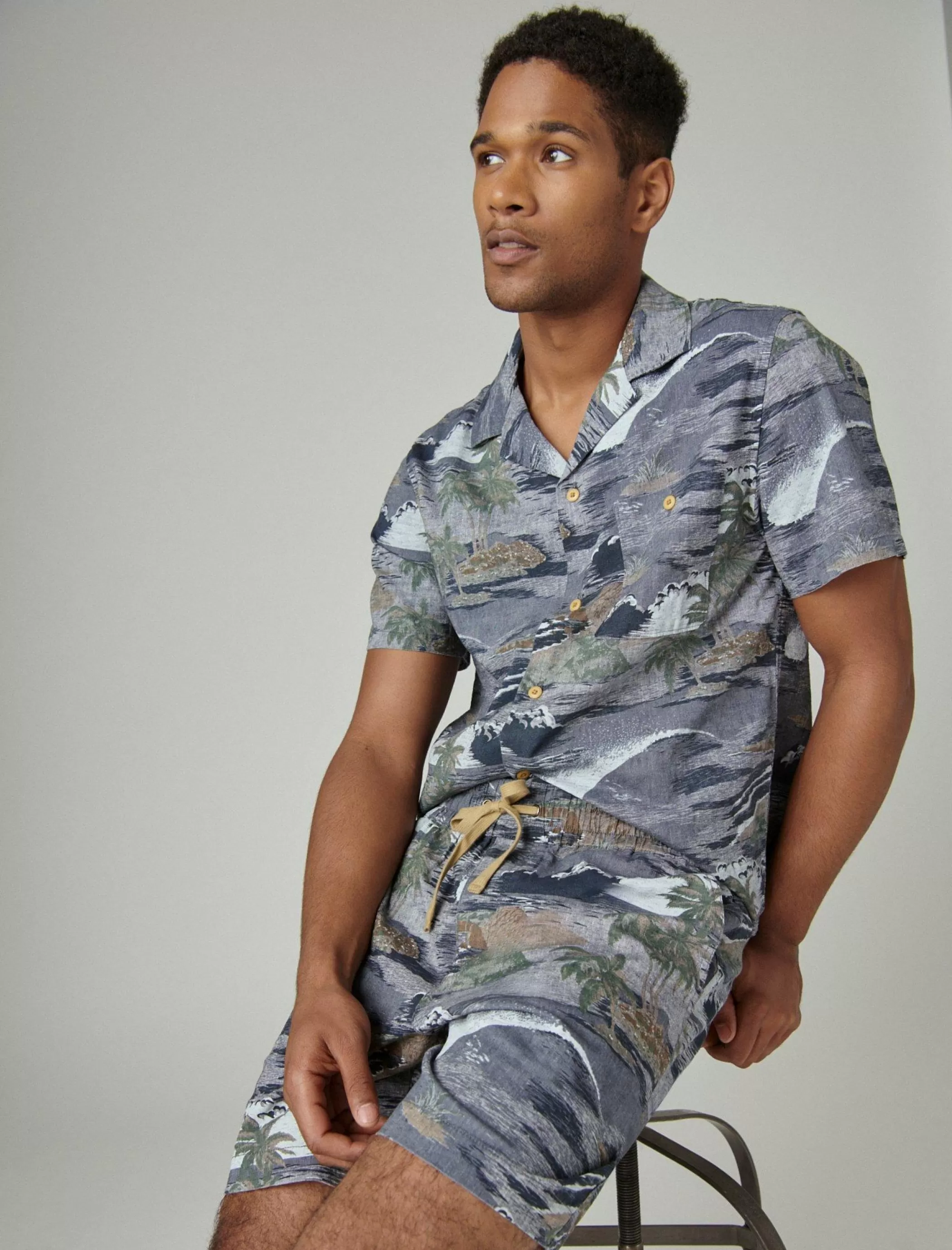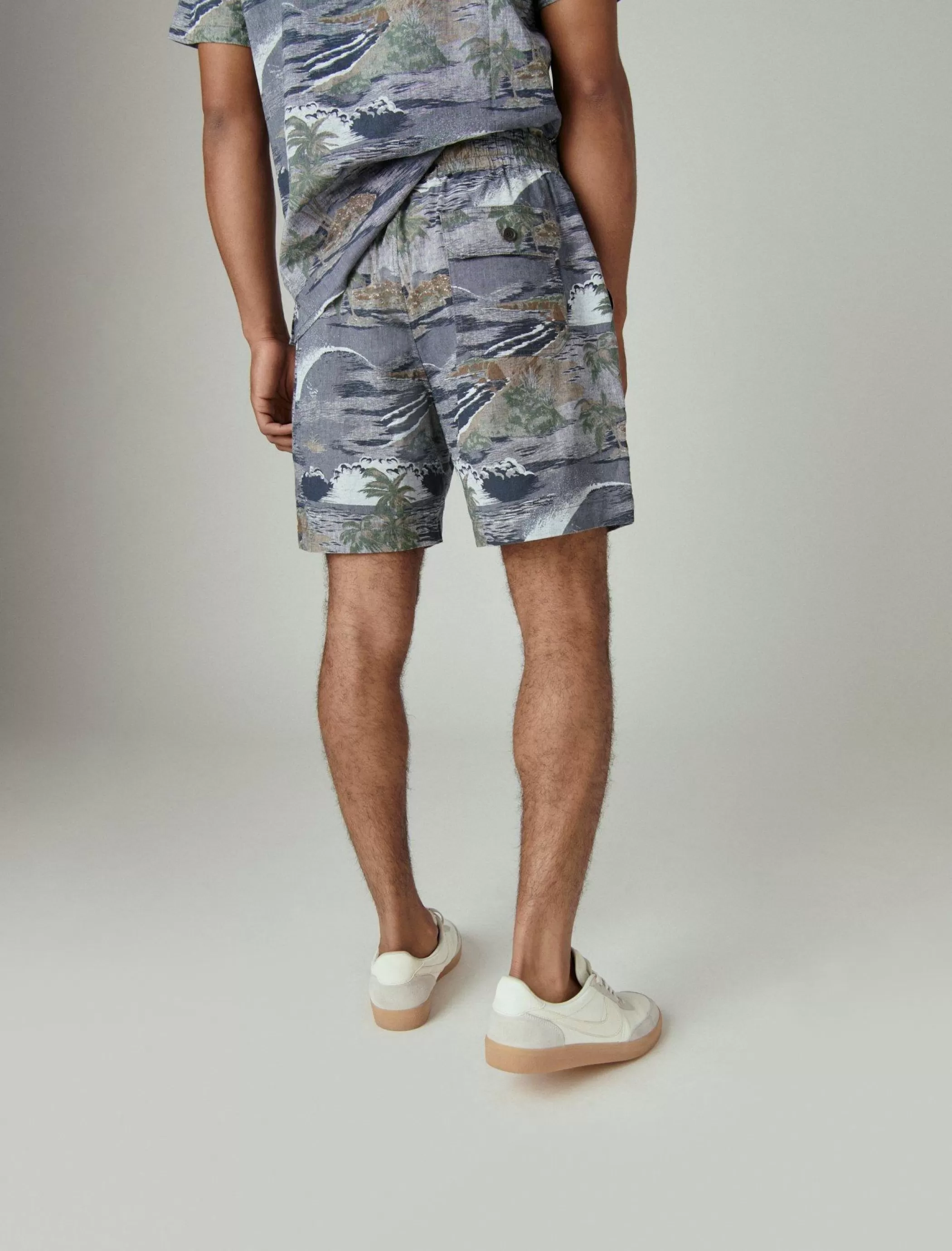 Make an easy wardrobe decision and pull on this pair of printed shorts. Made of a breathable linen stretch-cotton fabric, these shorts feature an elastic-drawstring waist and multiple pockets.
