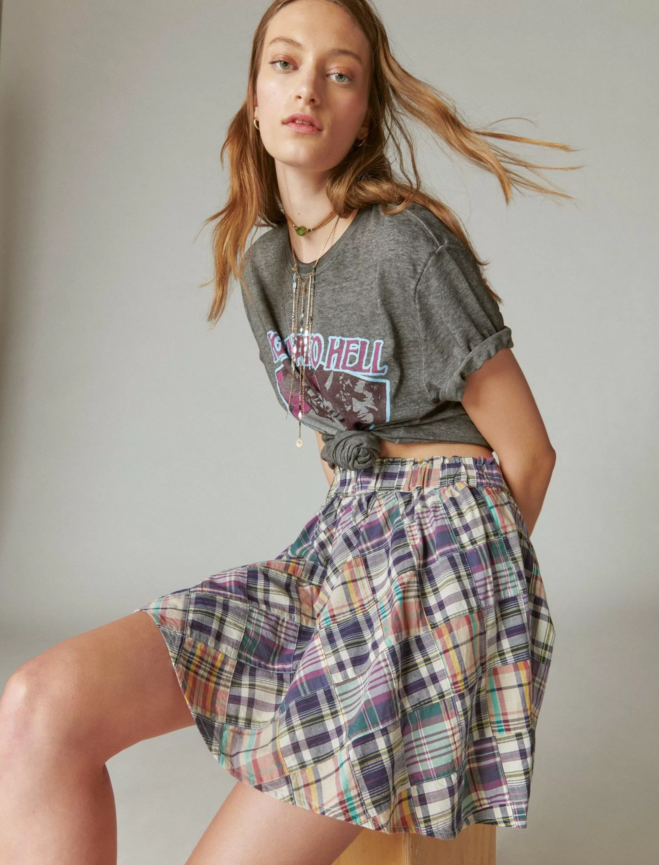 Mix up your warm weather wardrobe with this mini skirt featuring our heritage patchwork patterning and elastic waist for…
