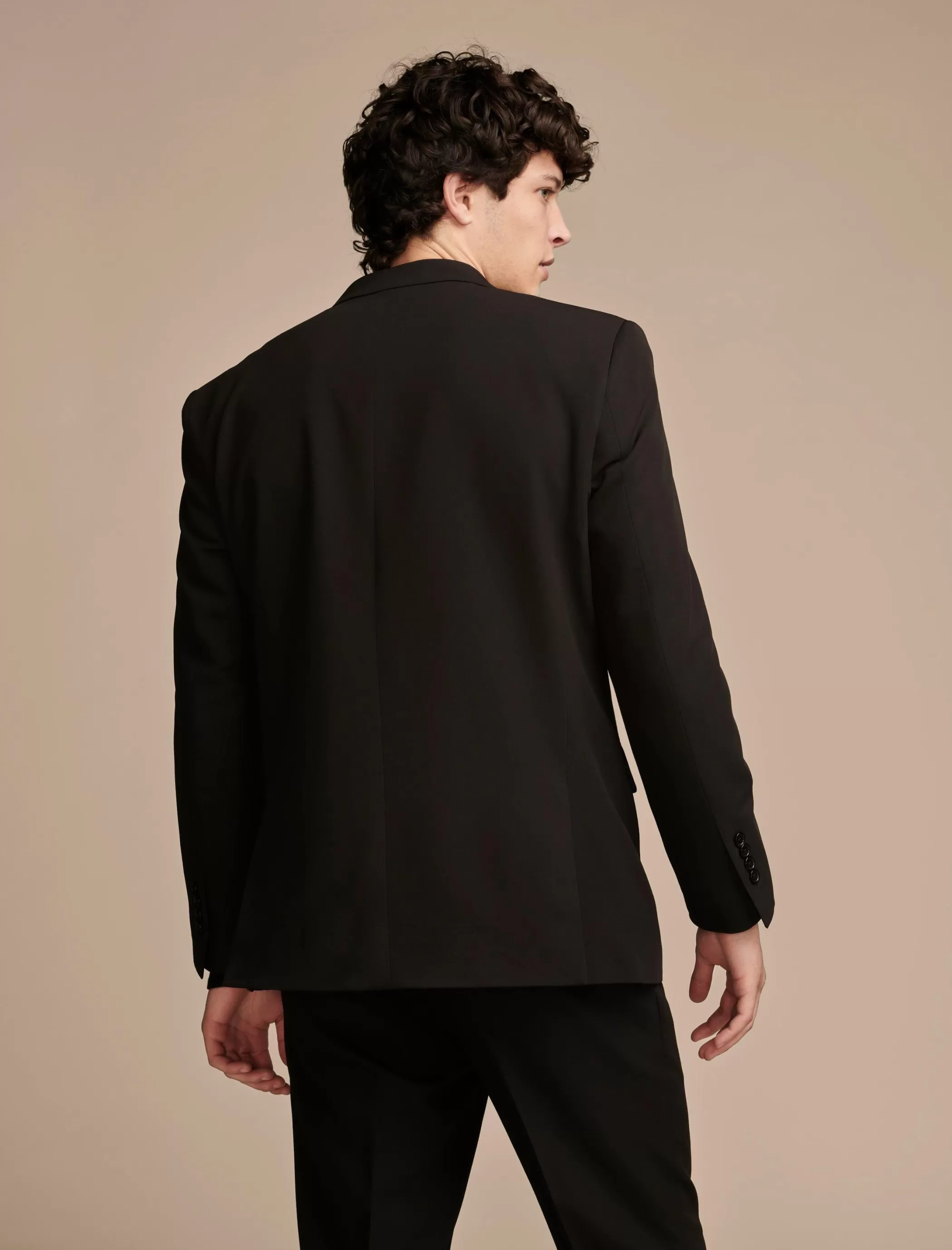 Woven of 4-way stretch fabric, this blazer instantly levels up any look thanks to a classic notch lapel, double-button front and buttoned cuffs.