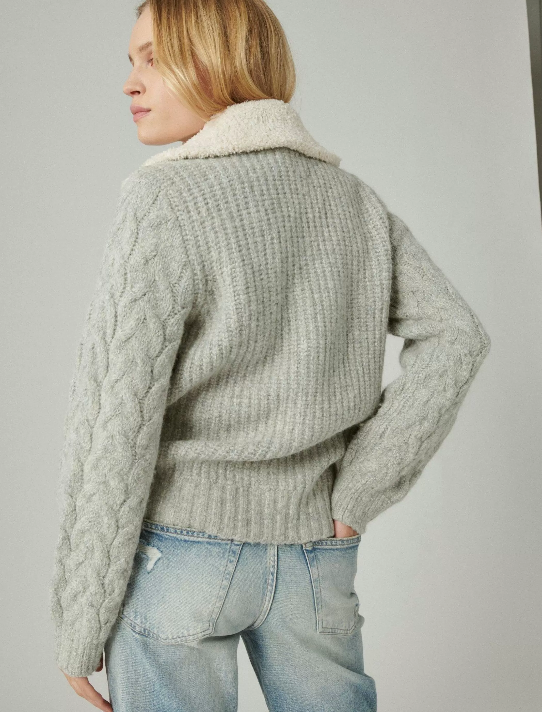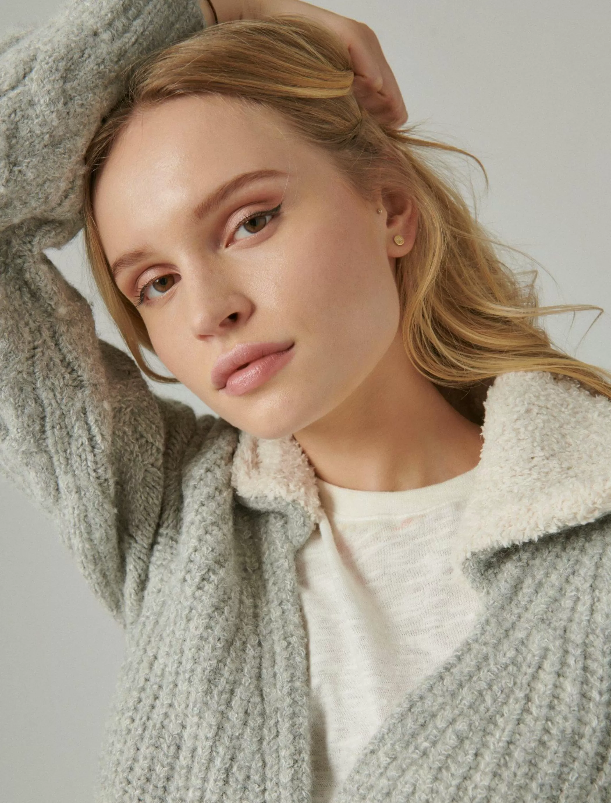 Meet your new favorite cardigan. Made from super soft cable-knit, this unique style features a faux shearling collar and…