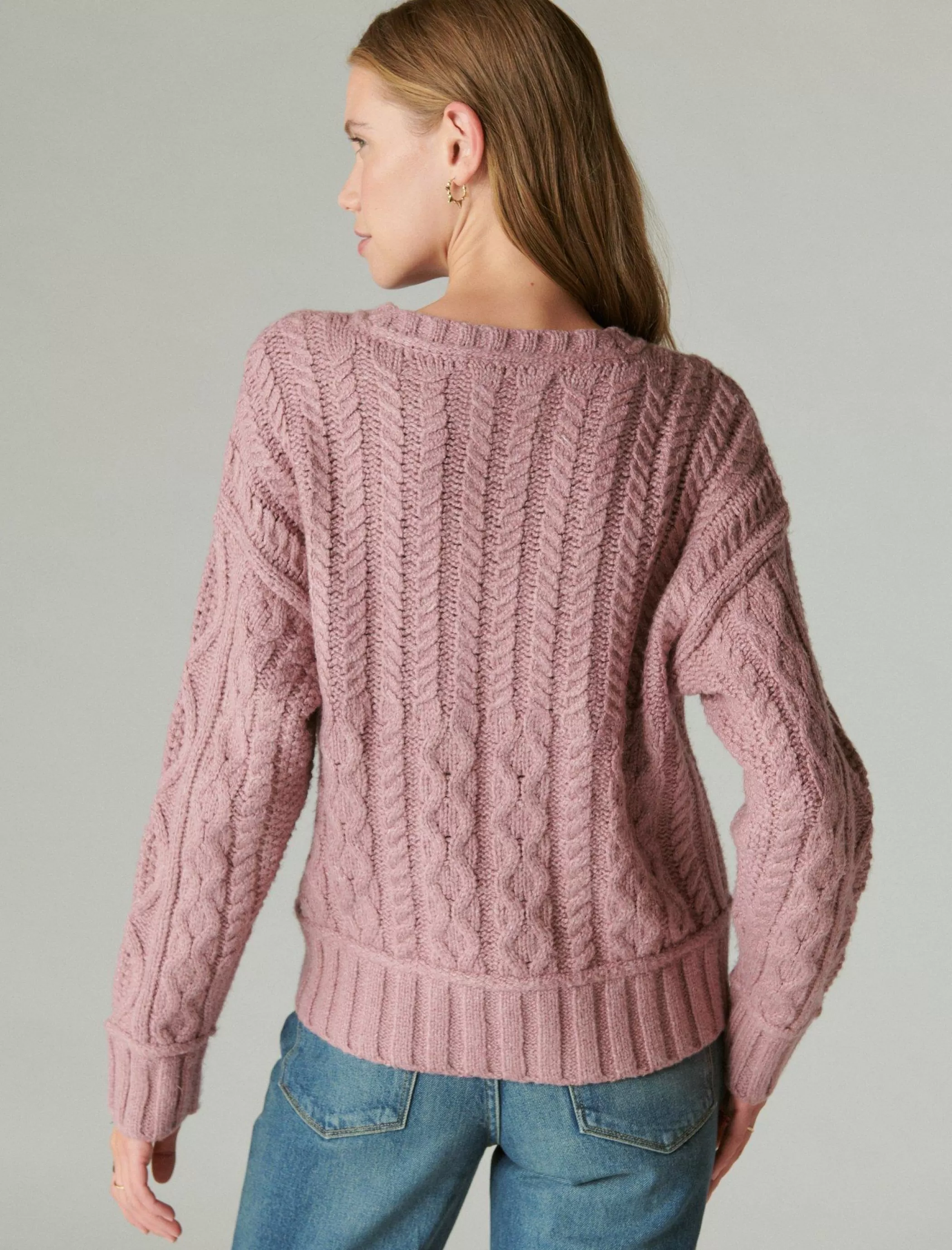 A classic go-to for chilly days ahead, this crewneck sweater keeps your look cozy and cute with a chunky cable-knit design and ribbed details.