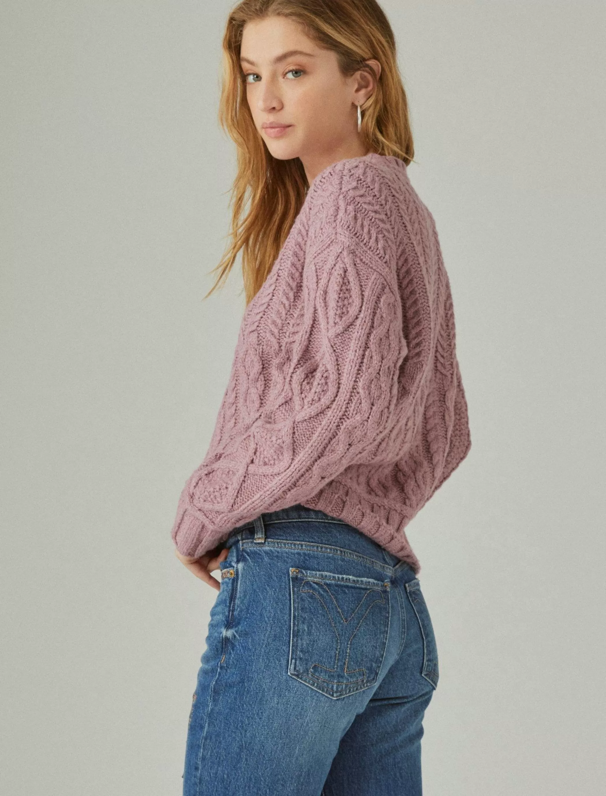 Cozy up to this soft crewneck sweater featuring a classic, chunky cable-knit design and ribbed details.