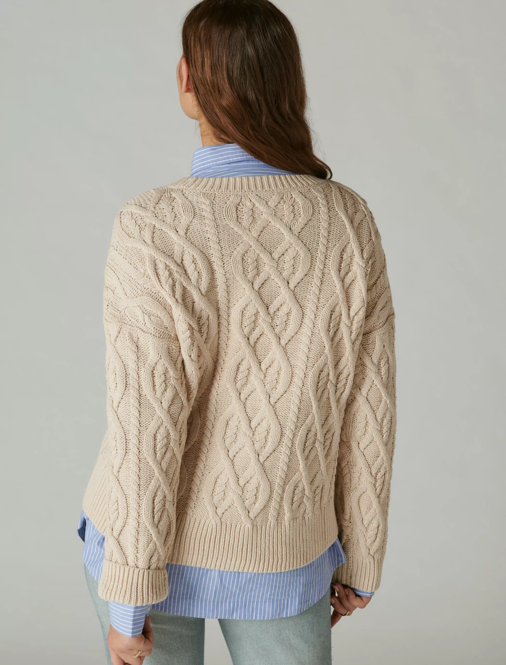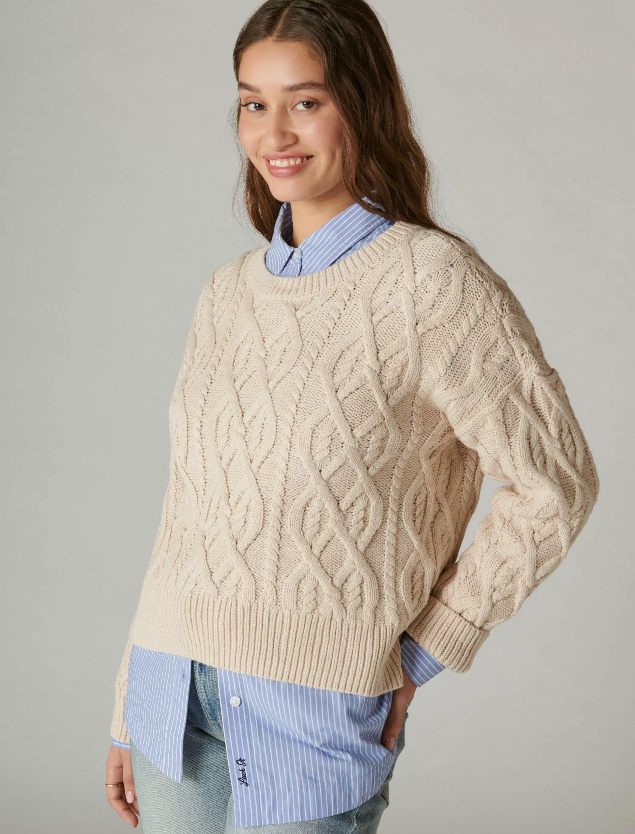 The pullover you’ll reach for again and again. Made of soft cotton-knit, this crewneck sweater shows off a classic cable stitch design and cozy ribbed details.