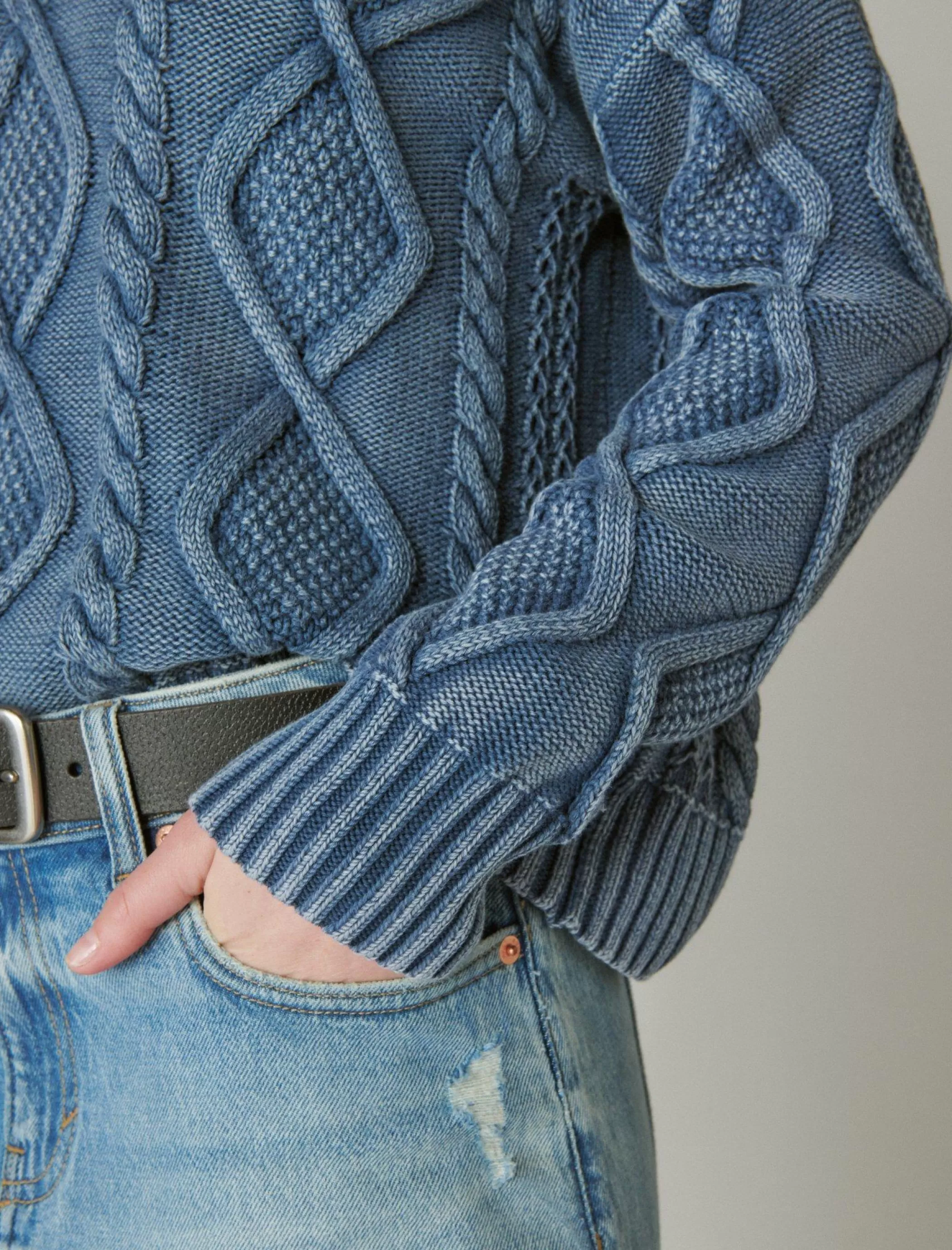 Cozy and cute, this V-neck pullover shows off chunky cable-knit and ribbed details for an ultra comfy look and feel.