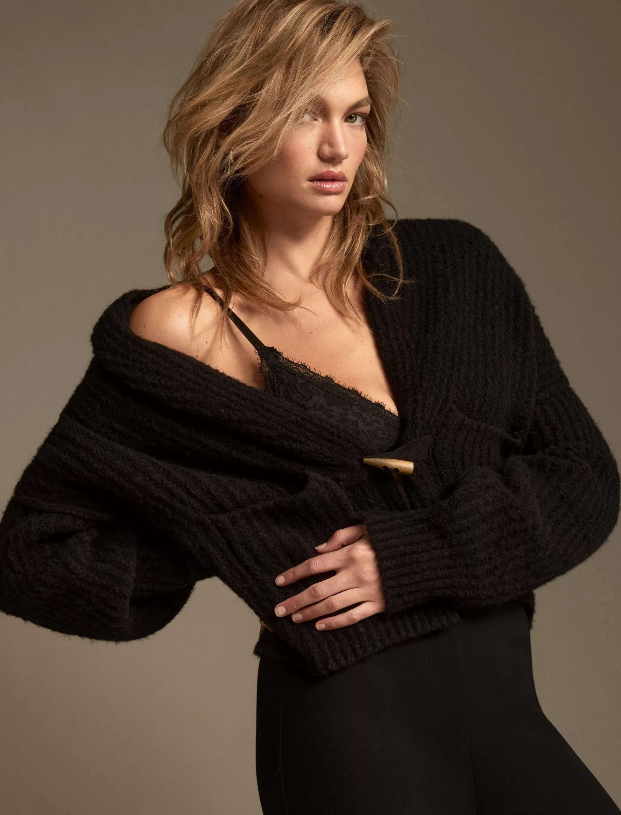 Soft and cozy, this so pretty ‘cardi features a classic shawl collar, patch pockets and a unique toggle front.Shawl co…