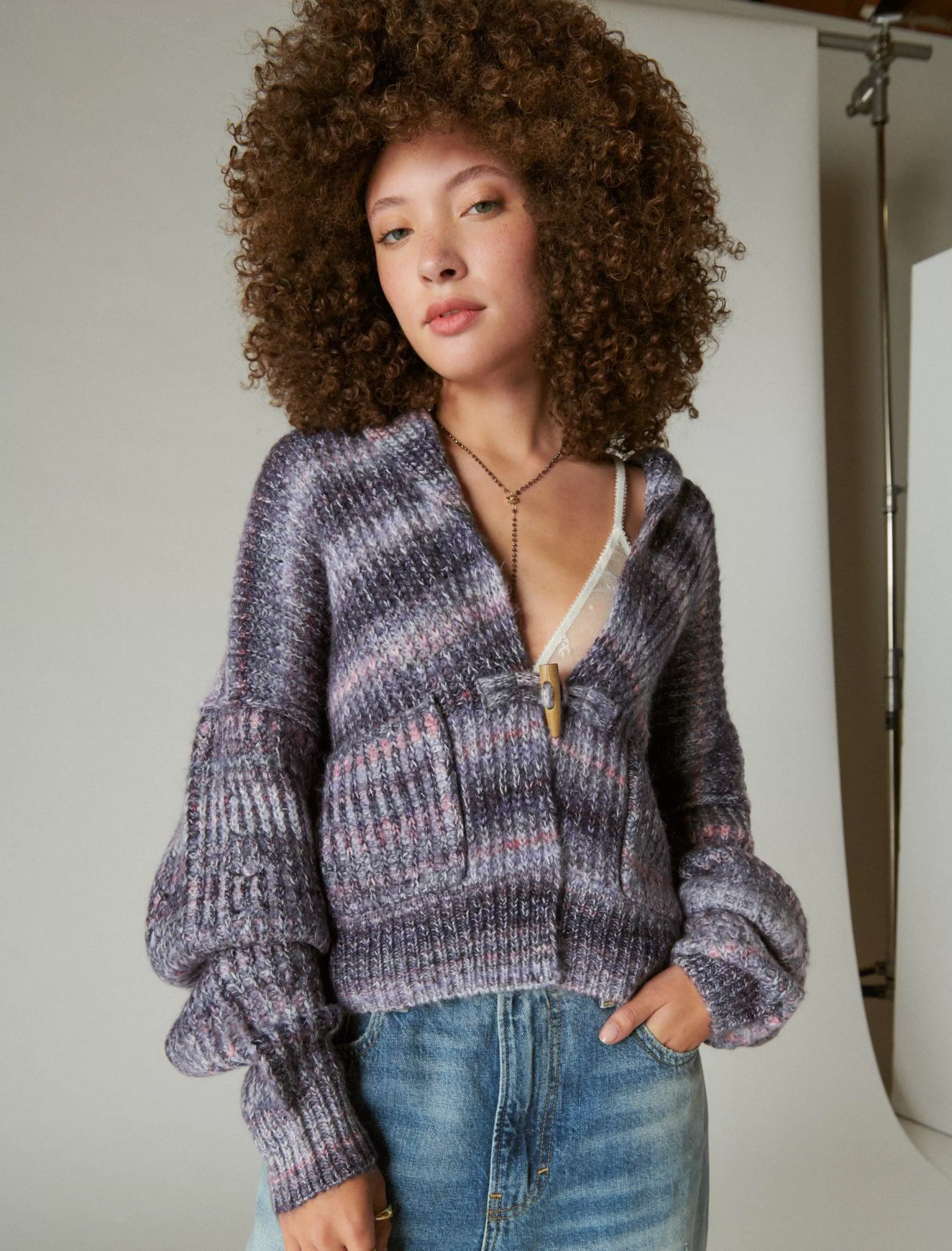 Soft and cozy, this pretty ‘cardi features a classic shawl collar, patch pockets and a unique toggle front.